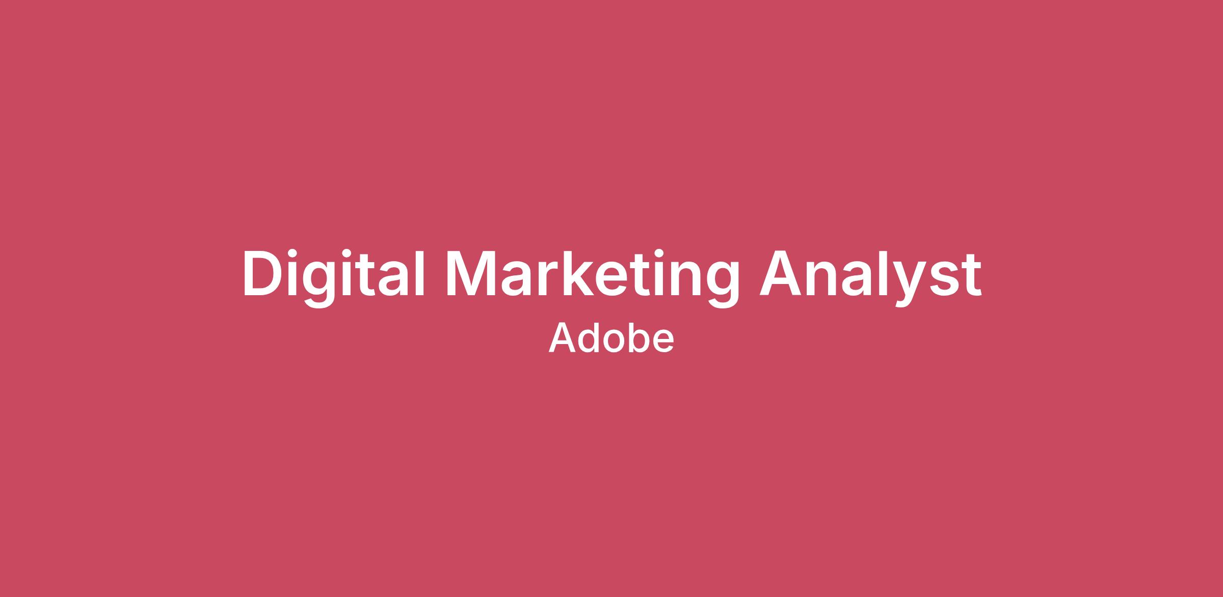Our CompanyChanging the world through digital experiences is what Adobe’s all about. We give everyone—from emerging artists to global brands—everything they need to design and deliver exceptional digital experiences! We’re passionate about empowering people to create beautiful and powerful images, videos, and apps, and transform how companies interact with customers across every screen. We’re on a mission to hire the very best and are committed to creating exceptional employee experiences where everyone is respected and has access to equal opportunity. We realize that new ideas can come from everywhere in the organization, and we know the next big idea could be yours! The Opportunity At Adobe, we're committed to helping our customers deliver unparalleled digital experiences and are looking for a passionate individual to accelerate the effectiveness of our digital marketing motion through data, insights, and innovative measurement methods! In the Enterprise Analytics team, we are tasked with optimizing the performance of the Digital Demand Generation activities through proactive analysis, enablement, and measurement innovation. We are passionate about diving deep into data, building reporting solutions and driving insights to help our partners scale efficiently. The Digital Marketing Analyst will serve as a strategic partner to the Digital Demand Generation organization. This role will drive regular inspection and proactive insights to optimize our owned channel performance and support the efficient expansion of our digital marketing motion. What You'll Do Monitor and analyze performance for owned digital channels (e.g., email, webinars) and provide actionable insights to improve engagement and conversionSupport analysis of website traffic and conversion trends to inform optimization strategiesContribute to regular performance inspection reviews, investigating strategic shifts and providing recommendationsBuild and maintain dashboards and reports to track key performance metrics for marketing campaigns and channels.Collaborate with marketing teams to understand business objectives and deliver data-driven recommendations.Support A/B testing and additional optimization experiments to improve campaign effectiveness.Stay informed on digital marketing trends and analytics best practices to continuously improve reporting and insights. What You Need to Succeed Degree in Marketing, Statistics, Business Administration or other relevant fields3+ years of experience in a digital marketing analytics role in a B2B environmentDeep understanding of digital marketing channels, funnel metrics, A/B testing and other campaign measurement frameworksFamiliarity with web analytics tools (e.g., Adobe Analytics, Google Analytics), SQL, and data visualization platforms (e.g., Tableau, Power BI).Ability to communicate insights clearly and collaborate effectively with cross-functional teamsStrong analytical and problem-solving skills with attention to detailOur compensation reflects the cost of labor across several U.S. geographic markets, and we pay differently based on those defined markets. The U.S. pay range for this position is $85,300 -- $186,200 annually. Pay within this range varies by work location and may also depend on job-related knowledge, skills, and experience. Your recruiter can share more about the specific salary range for the job location during the hiring process. At Adobe, for sales roles starting salaries are expressed as total target compensation (TTC = base + commission), and short-term incentives are in the form of sales commission plans. Non-sales roles starting salaries are expressed as base salary and short-term incentives are in the form of the Annual Incentive Plan (AIP).In addition, certain roles may be eligible for long-term incentives in the form of a new hire equity award.State-Specific Notices:California:Fair Chance OrdinancesAdobe will consider qualified applicants with arrest or conviction records for employment in accordance with state and local laws and “fair chance” ordinances.Colorado:Application Window NoticeIf this role is open to hiring in Colorado (as listed on the job posting), the application window will remain open until at least the date and time stated above in Pacific Time, in compliance with Colorado pay transparency regulations. If this role does not have Colorado listed as a hiring location, no specific application window applies, and the posting may close at any time based on hiring needs.Massachusetts:Massachusetts Legal NoticeIt is unlawful in Massachusetts to require or administer a lie detector test as a condition of employment or continued employment. An employer who violates this law shall be subject to criminal penalties and civil liability.Adobe is proud to be an Equal Employment Opportunity employer. We do not discriminate based on gender, race or color, ethnicity or national origin, age, disability, religion, sexual orientation, gender identity or expression, veteran status, or any other applicable characteristics protected by law. Learn more. Adobe aims to make Adobe.com accessible to any and all users. If you have a disability or special need that requires accommodation to navigate our website or complete the application process, email accommodations@adobe.com or call (408) 536-3015.