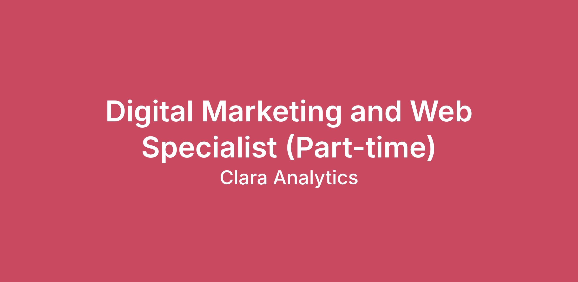 About the roleA mix of strategic, tactical, and technical, the part-time Digital Marketing & Web Specialist will play a critical role in the execution of CLARA’s Go-To-Market (“GTM”) strategy and initiatives. In addition to ownership of the company’s website and being responsible for ensuring it’s effectively and accurately delivering key GTM messaging along with any associated digital platforms, this individual will support the Chief of Staff on the ideation and implementation of multi-channel digital content in alignment with broader marketing objectives.What you'll doOngoing development and management of the CLARA Analytics website and associated digital platforms.Execution of multi-channel content strategies across social media, email, Pardot, and beyondWhat we're looking forRequiredAvailability to work 10 - 20 hours per week.Associate’s Degree, Bachelor’s Degree OR equivalent relevant work experience in lieu of a Degree.Demonstrable experience with website and content management.Proficiency with website and content management on WordPress, inclusive of creating and managing modules, contents within modules, and customizing structures and navigation.Experience in WordPress, Google Suite (sheets/docs/slides), and Adobe PDF Editor. Highly motivated and adept at working independently. A basic understanding of digital marketing principles and best practices.Strong problem solving and communication skills and the ability to listen/interface effectively with both internal and external stakeholders. Demonstrated ability to concisely present and communicate complex information to both technical and non-technical audiences. PreferredExperience with Pardot and Salesforce Coding.Previous experience in a digital marketing and/or SEO and SEM role, preferably within insurtech, is a plus.Knowledge of insurance principles, terminology, customs and practices, specifically within Auto, GL, and/or Worker’s Compensation, is a plus.What we offerThe opportunity to make a real impact on a growing company.Collaborative and supportive work environment.Fully remote and highly flexible schedule. Be a part of a team that is passionate about what we do!