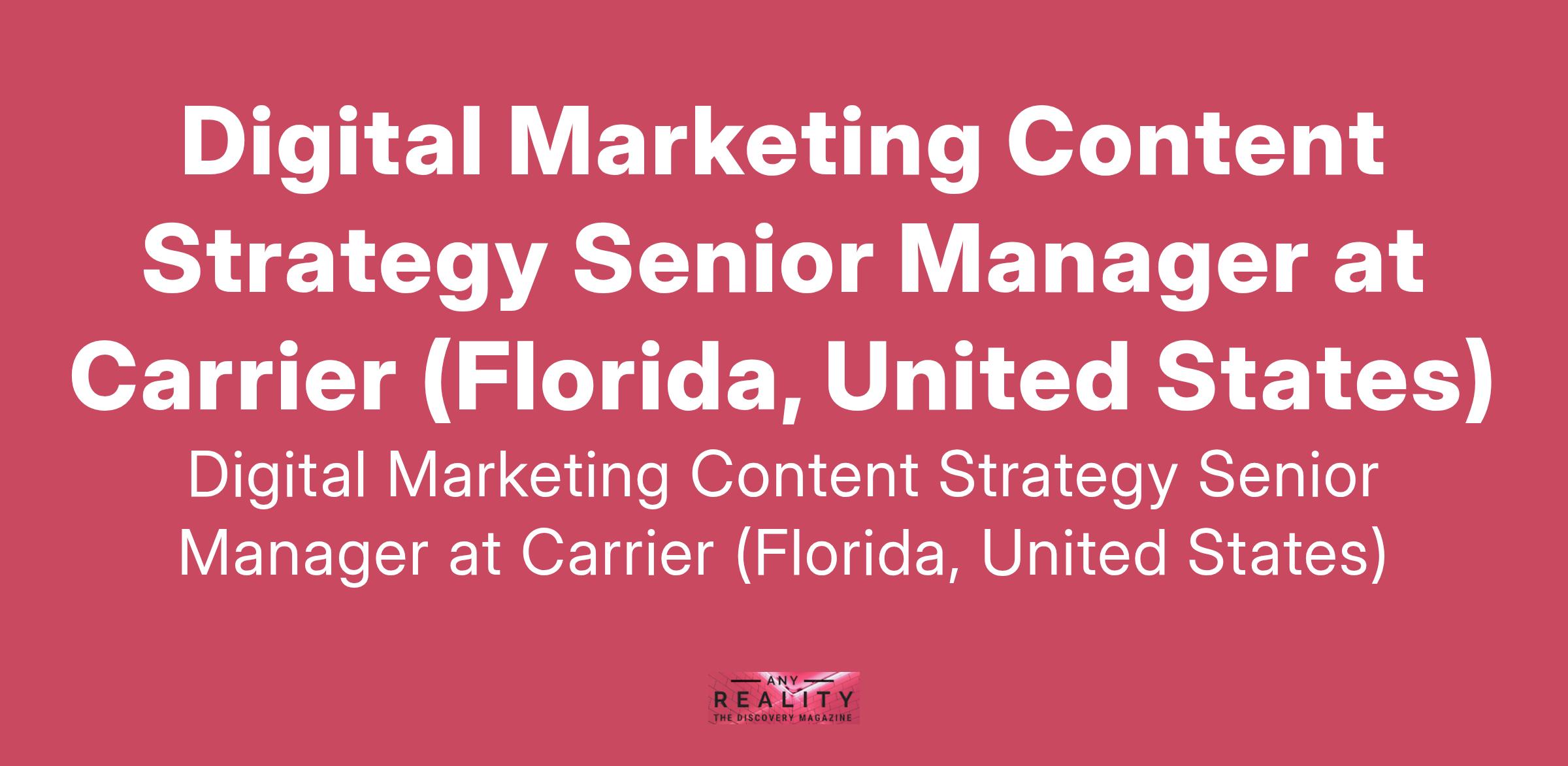 Digital Marketing Content Strategy Senior Manager at Carrier (Florida, United States)