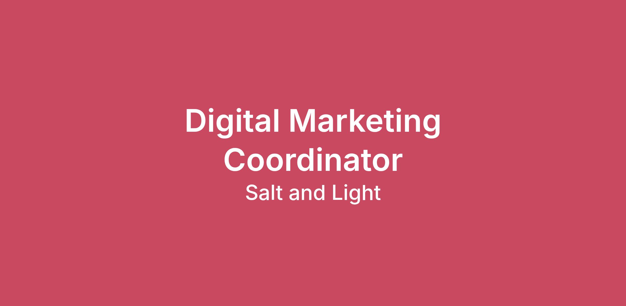 Digital Marketing Coordinator Work with a purpose as part of a team empowering people to change their lives. Join a team dedicated to helping every person—participants, volunteers, donors, and staff—realize the fullness of who it is God created us to be as we fight poverty with dignity. About Salt & Light (S&L) We are a non-denominational, Christian nonprofit not affiliated with any one church, rather, working with many different individuals, churches, businesses, and organizations in fulfilling our mission and vision. Our doors first opened January 2004 in Champaign, IL as we began handing out food and clothing to local families. Very quickly we became the largest “emergency food program” in Champaign County, and a leader in the community for providing access to basic resources. In addition to the weekly assistance provided through the food pantry and clothing closet, we partnered with area churches and businesses in large events designed to help families with school supplies in the fall, meals at Thanksgiving, and gifts at Christmas. We later added financial education classes and a computer lab, both of which represented not just the addition of new programs but signaled a desire to move away from just providing things, to offering opportunities for people to grow. After wrestling with the theologies and ideologies found in the book When Helping Hurts, we felt led to design a more developmental approach to meeting basic needs. Our new model created opportunities for individuals to acquire the resources they needed through use of the skills, gifts, and abilities God had given them. Instead of being handed a preselected bag of groceries, our participants now shopped with store credit earned through volunteering. The stores we now operate in Urbana and Champaign are open to the entire community and generate revenue to support the store credit participants earn in addition to our other programs and services. About the Position Reporting to the Director of Development (DD), the Digital Marketing Coordinator supports the organization’s mission and vision by managing social media platforms, executing email campaigns, creating engaging content, maintaining website updates, and analyzing website traffic. Also, the Digital Marketing Coordinator works closely with the Director of Community Engagement and the Director of Vocational Programs to ensure timely and accurate communication about Salt and Light programs, services, and events. We are looking for someone who is a highly motivated self-starter comfortable being part of a team. The ideal candidate would be able to think strategically across multiple priorities and initiatives, is a resourceful problem-solver, and detail oriented. Alignment with Salt & Light’s Statement of Beliefs and a pastoral reference are required for consideration. Responsibilities Planning, creating, and scheduling content for various social media platforms (Facebook, Linkedin, and Instagram). Assist in developing and implementing the company’s brand strategy. Creating and developing monthly newsletters. Ensuring company website is updated on a regular basis. Prepare marketing activity reports and metrics for program success. Position Qualifications & Skills Alignment with our “Statement of Beliefs” and commitment to our Mission & Vision. Excellent interpersonal, verbal, and written communication skills. Excellent organizational skills and attention to detail. Ability to think strategically across multiple priorities. Self-starter and solution focused. Ability to work well with a diverse group of staff and volunteers. Proficient with Microsoft Office Suite. Experience with Facebook business, Canva, and Adobe a plus. Required Education & Experience Minimum 2 years of marketing experience. Demonstrated success in designing and implementing marketing campaigns. Wages & Benefits Salary $20-$25 per hour (part-time) Pre-tax supplemental insurance options Remote Statement of Beliefs The Bible: We believe the Bible is the inspired Word of God and stands as the central authority over our lives, our faith, and the direction of our ministry. (2 Timothy 3:16; Matthew 5:18) God: We believe in one God, the Father, Creator of all things, infinitely perfect and eternally existent in three persons: God the Father, God the Son, and God the Holy Spirit. Three persons eternally share the Divine Nature. God is both self-existent and personal. (Deuteronomy 6:4; Matthew 28:19; Mark 12:29; John 14:10, 26; 15:26) Jesus Christ: Jesus Christ, the Son, is fully God and fully human. He was born of the Virgin Mary. He lived a sinless life, died for the sins of humanity, was resurrected bodily on the third day, ascended into heaven, and is coming again as King and Judge. Jesus Christ is the only provision that God has given for people to be reconciled to Him. Jesus’ life on earth also serves as the model for the Christian life. (John 14:6; Acts 4:12; I Corinthians 15:1-8; Isaiah 7:14; Romans 8:34; Acts 1:10) Holy Spirit: The Holy Spirit is God. He came forth from the Father and Son to convict the world of sin, righteousness, and judgment, and to regenerate, sanctify, and empower all who believe in Jesus Christ. He indwells us the moment we place our faith in Christ and enables us to live a life that is pleasing to God. The Holy Spirit also endows each believer with a unique spiritual ability to serve the church and the world. (John 14:16, 15:26-27, 16:9-14; Romans 8:9; 1 Corinthians 3:16; 1 Corinthians 12; Galatians 5:22-26; Ephesians 1:13-14) Salvation: Salvation is reconciliation with God through the atoning work of Jesus Christ. God offers us salvation by His grace alone and we receive it as a gift through personal faith in the finished work of Jesus Christ. This right standing before God must be received. It cannot be earned. God freely offers salvation to all people, and our salvation is secure when personally appropriated through repentance and faith in Christ. Those who hav