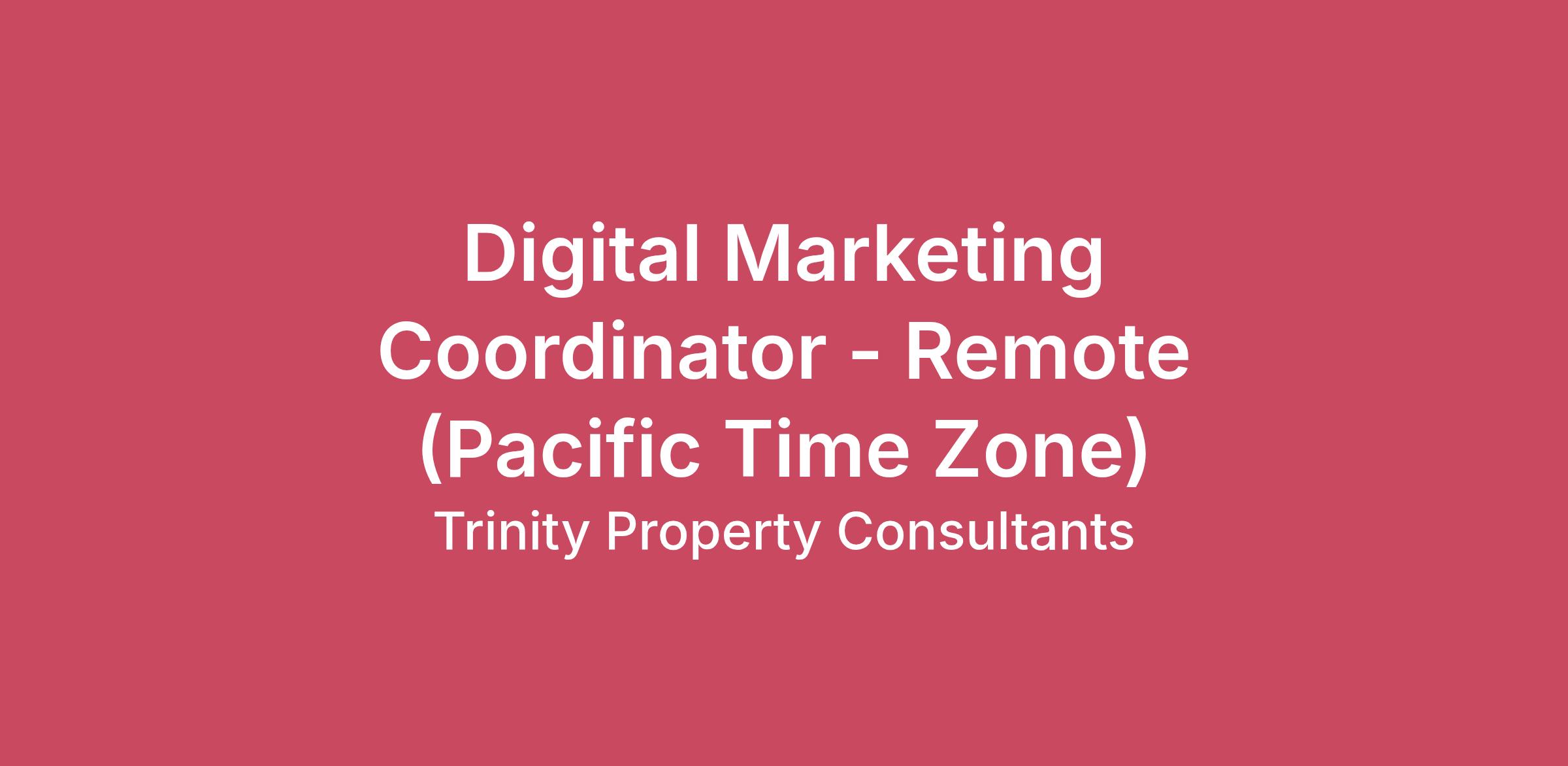About Trinity Property ConsultantsAt Trinity Property Consultants, your expertise fuels our mission. Guided by our values of innovation, teamwork, excellence, and empowerment, we’ve been a leader in the multifamily industry for over 25 years and proudly manage properties for a nationally ranked NMHC’s Apartment Owner. We are building more than great places to live – we’re creating vibrant communities and meaningful careers. The OpportunityAs a Digital Marketing Coordinator, you’ll support the execution and optimization of paid media campaigns across our portfolio of apartment communities. This role will focus on day-to-day management of digital campaigns including paid search, display advertising, and paid social media.You will work closely with the marketing team to ensure campaigns are launched correctly, budgets are maintained, creativity is refreshed, and performance is monitored. This role is ideal for someone who enjoys working with data, digital platforms, and campaign optimization while learning how marketing directly impacts leasing performance.Compensation: $70,000 - $85,000 annually, based on your experience.Schedule: Monday - Friday, 7 am to 4 pm (fully remote)Location Requirement: Must reside in the Pacific Time Zone.What You’ll OwnSupport the execution and day-to-day management of paid media campaigns across search, display, and social platforms.Update campaign budgets, bidding strategies, audience targeting, and geographic settings.Upload and manage ad creative, including images, video, and ad copy.Assist with campaign launches for new property acquisitions, lease-ups, and promotions.Monitor campaign performance and flag optimization opportunities to improve lead volume and cost efficiency.Optimize campaigns alongside the Marketing Manager on an ongoing basis to achieve performance goals such as, but not limited to, lead volume, click through rate, cost-per-lead, and conversion rates.Conduct keyword research and assist with ongoing search campaign optimizations.Coordinate creative updates and ad refreshes to maintain strong engagement and performance.Track and report on campaign performance including traffic, leads, CTR, and conversion metrics.Work with the marketing team to ensure campaigns align with property-level goals and occupancy needs.Maintain campaign documentation, naming conventions, and account organization across advertising platforms.Support A/B testing initiatives for ad creative, messaging, and targeting strategies.What You BringStrong attention to detail and the ability to manage multiple campaigns and deadlines.Analytical thinking with curiosity about what drives digital performance.Comfort working with numbers, budgets, and campaign metrics.A proactive mindset that looks for opportunities to improve campaign results.Strong organizational skills and the ability to manage recurring marketing tasks.Willingness to learn new marketing platforms and digital advertising tools.Collaborative attitude when working with designers, strategists, and property teams.Interest in digital marketing, real estate, or multifamily housing.Qualifications1–3 years of experience in digital marketing, paid media, or marketing coordinationBachelor’s degree in Marketing, Advertising, Communications, or related field is preferred.Experience managing or supporting campaigns in Google Ads including search and display campaigns, and in Meta Ads Manager.Experience reviewing campaign performance using Google Analytics or similar reporting tools.Knowledge of digital marketing concepts such as CTR, CPC, conversion rate, and audience targeting.Strong organizational and project management skills.Intermediate experience in Microsoft (Outlook, Word, PowerPoint, and Excel), Google Suite (Analytics, Ads, SearchConsole, Tag Manager, Seach Console, and Business Profile), Meta Ads Manager, and Canva.Proficient in Entrata, Adobe Suite (InDesign, Illustrator, Lightroom, and Photoshop) and video editing in a software of choice (Adobe XD, CapCut, etc.) is preferred.RequirementsAvailability & TravelThis position will require availability for nights, weekends, and holidays as needed, as well as occasional travel for company events or meetings. Active participation in team functions and regional or company activities is expected.Physical DemandsThis position necessitates regular periods of sitting, standing, walking, as well as use of hands and arms. Occasional climbing may be required. Extended use of computers or telephones is also necessary. The role may require lifting up to 25 pounds independently. The ability to respond promptly to both visual and auditory alarms is essential. Candidates must be able to work both indoors and outdoors under various weather conditions, including rain, snow, heat, hail, wind, and sleet.We Take Care of YouMedical, Dental & Vision: Highlights include company-paid individual PPO-HSA plan (with $1,200 annual employer contribution); HMO options for California residents. Dental and vision premiums are fully covered for employees; coverage for dependents is available at an additional cost.Retirement Plans (401K): The company matches 1/3 of the employee's contribution up to 2% of the salary.Life & Disability Insurance: Up to $100,000 of life insurance and AD&D coverage, plus short- and long-term disability insurance. In addition, supplemental life for the employee, spouse, and children.Time Off: 11 paid holidays, 2–4 weeks of vacation based on years of service, and sick leave provided in compliance with state and local requirements.Referral Bonuses: $1,000 for eligible employee referrals.Volunteer Time Off: Up to 16 hours annually (8 for personal volunteer activities, 8 for company-sponsored events).Perks: Professional development, tuition reimbursement, employee discounts, and more.Our Commitment to BelongingTrinity Property Consultants is proud to be an equal opportunity employer. We celebrate diversity and are committed to fostering an inclusive, respectfu