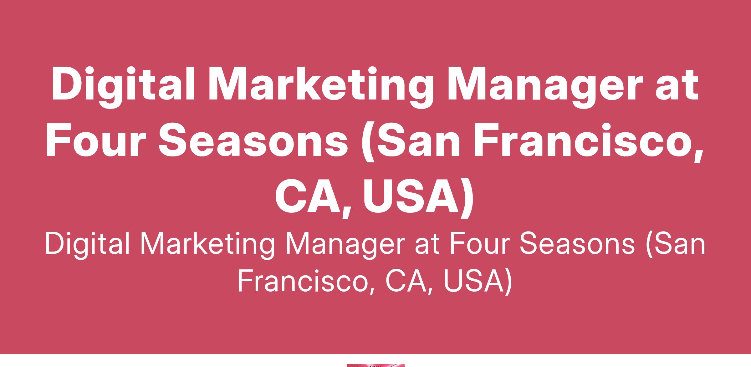 Digital Marketing Manager at Four Seasons (San Francisco, CA, USA)