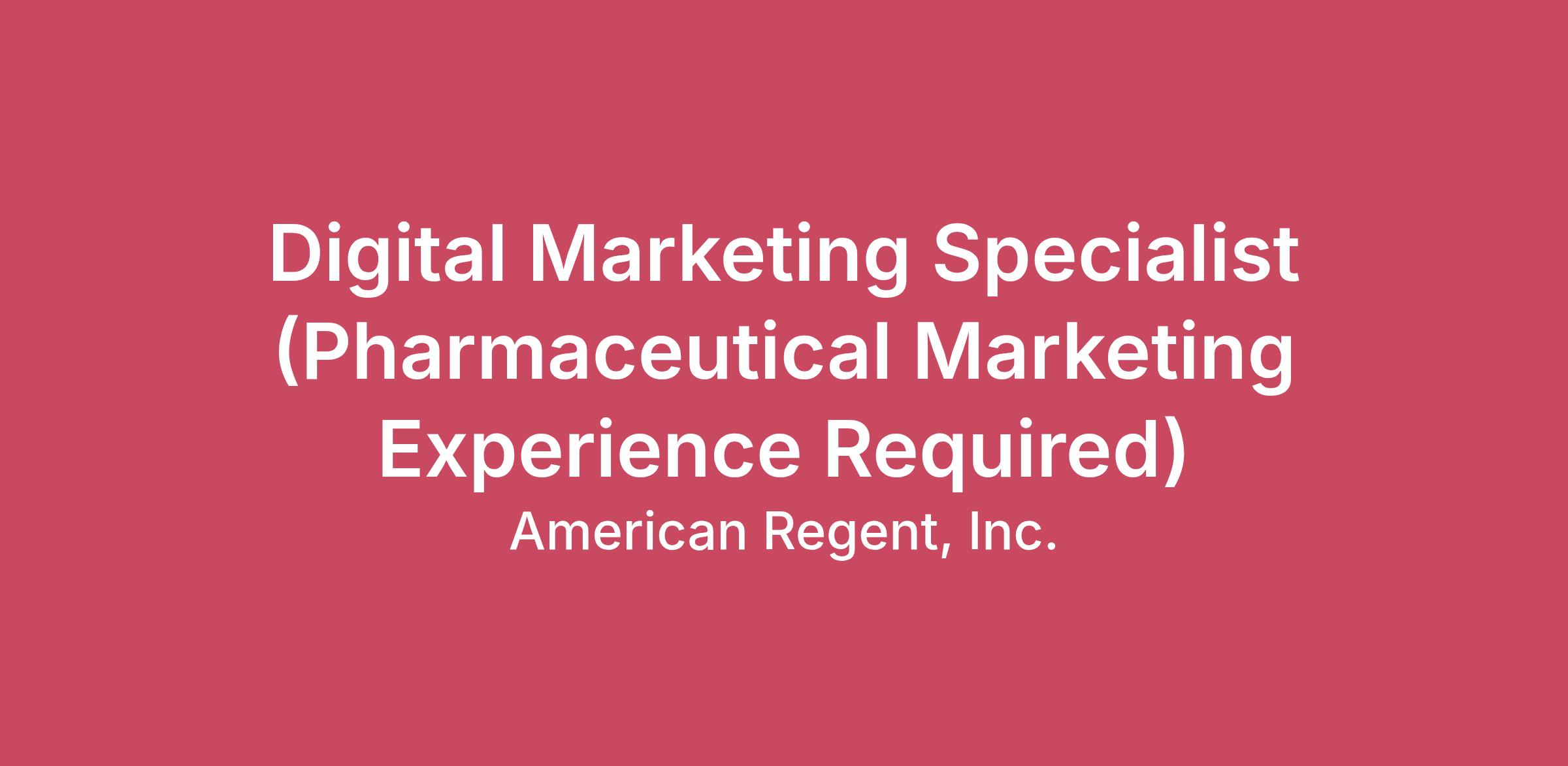 Nature and ScopeThe Digital Marketing Specialist plays a key role in supporting the Marketing Department, which initiates and executes the company’s corporate and product-focused external communications. The ideal candidate is a highly creative, detail-oriented, and organized professional who thrives in a fast-paced, evolving environment and has hands-on experience developing, executing and optimizing digital marketing initiatives. This includes advertising campaigns, digital media, product and corporate website management, social media and analytics reporting. Working within the commercial business unit, this role collaborates cross-functionally with a proactive, service-oriented mindset. Essential Duties and ResponsibilitiesAssist with the development of comprehensive digital marketing strategies that align with business objectives including website content management, online visibility, brand awareness, and increasing social media presence.Maintain a strong understanding of the digital landscape, industry trends, and competitor activity.Oversee website development, refreshes, and ongoing maintenance to ensure content, design, functionality, and user experience remain current, engaging, and aligned with brand standards.Create engaging, relevant content and ideate new digital tactics to support corporate and product marketing initiatives.Manage SEO/SEM efforts including keyword research, on-page optimization, and monitoring search rankings.Analyze and interpret data from website analytics, social media metrics, and email campaign statistics to measure performance and optimize strategies.Work with agency consultants to set up and optimizing Google Ads and other pay-per-click (PPC).Develop and grow the company’s social media presence by creating engaging content and strengthening brand recognition.Partner with cross-functional teams—including Regulatory Affairs, Medical (ARMD), Legal and Marketing—to ensure digital assets meet compliance and brand standards.Support special projects and departmental initiatives assigned. Education Requirements and QualificationsBachelor’s degree in Marketing, Communications or related field required.Minimum of 3 years of digital marketing experience in pharmaceutical marketing required; experience with injectables or generic pharmaceuticals strongly preferred.Familiarity with regulatory and compliance guidelines governing pharmaceutical and medical device promotion (e.g., PMR review processes).Technical Skills:Proficiency in SEO/SEM, email marketing platforms, social media management tools, and analytic platforms (preferably Google Analytics (GA4).Experience with content management systems (CMS), customer relationship management (CRM), and marketing automation tools.A basic understanding of HTML, CSS preferred.Mastery of Microsoft 365.Proficiency in Adobe Creative Suite.Experience in the use of Veeva Vault PromoMats for content management and approval workflows.Creative & Professional Skills: Strong copywriting and basic graphic design skills to support digital content creation.Strong analytical thinking with the ability to interpret data and translate insights into actionable recommendations.Excellent written and verbal communication skills with the ability to convey complex ideas clearly and professionally.Strong organizational, problem-solving, and decision-making skills with the ability to manage multiple projects and deadlines.Business savvy with a strong attention to detail and accuracy.Proactive, solutions-oriented approach and the ability to adapt to fast-changing digital trends.Ability to collaborate effectively across teams to ensure consistent brand messaging and integrated marketing execution.Expected Salary Range:$56,000-66,000The salary range, is the minimum and maximum annual salary range of compensation for the role that the employer in good faith believes to be accurate at the time of the posting of an advertisement for the role. Actual compensation for the role will be based on a number of different factors including but not limited to the candidate’s qualifications, education, knowledge, skills and experience.American Regent also offers a competitive total rewards package which includes healthcare, life insurance, profit sharing, paid time off, matching 401k as well as a widerange of other benefits.American Regent celebrates diversity and we are committed to creating an inclusive environment for all employees. We are an Equal Opportunity Employer and all qualified applicants will receive consideration for employment without regard to race, color, religion, sex, sexual orientation, gender identity, national origin, disability status, or protected veteran status.Applicants have rights under Federal Employment Laws. FMLA poster: https://www.dol.gov/whd/regs/compliance/posters/fmlaen.pdfKnow Your Rights: Know Your Rights: Workplace discrimination is illegal (eeoc.gov)Employee Polygraph Protection Act: https://www.dol.gov/whd/regs/compliance/posters/eppac.pdfAlert: We’re aware of individuals impersonating our staff to target job seekers. Please note:· All legitimate communication will come directly from a verified ARI recruiter either by phone or via an americanregent.com email address.· Our recruiting process includes multiple in person and/or video interviews and assessments.· If you are unsure about the legitimacy of a message, contact John Rossini at jrossini@americanregent.com before responding.· We never request payment, bank information, or personal financial details during our offer process.Your security is important to us, and we encourage you to stay vigilant when job searching.American Regent Inc. endeavors to make https://careers.americanregent.com/ accessible to any and all users. If you would like to contact us regarding the accessibility of our website or need assistance completing the application process, please email hrtalentacquisition@americanregent.com.