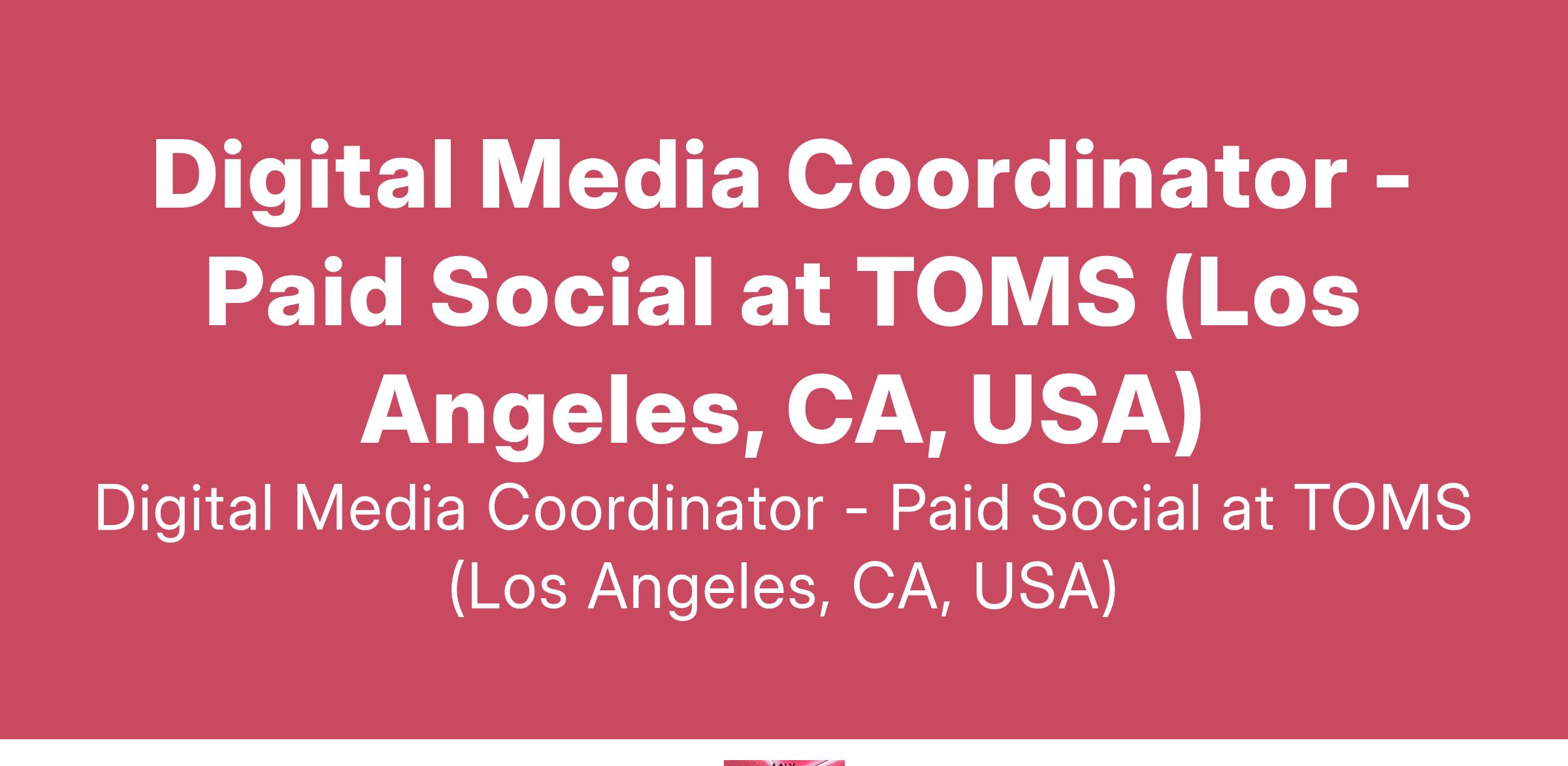Digital Media Coordinator - Paid Social at TOMS (Los Angeles, CA, USA)