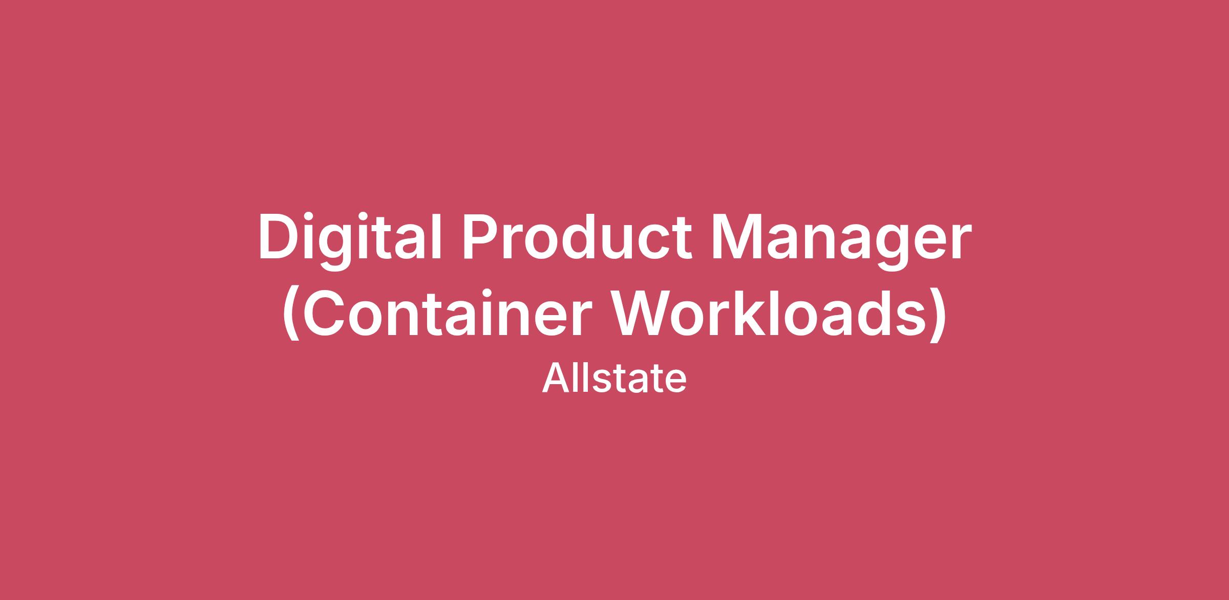 At Allstate, great things happen when our people work together to protect families and their belongings from life’s uncertainties. And for more than 90 years, our innovative drive has kept us a step ahead of our customers’ evolving needs. From advocating for seat belts, air bags and graduated driving laws, to being an industry leader in pricing sophistication, telematics, and, more recently, device and identity protection. Job DescriptionThe Digital Product Manager plays a key role in defining, delivering, and overseeing the lifecycle of multiple products within Allstate’s expanding portfolio. This position is responsible for setting the strategic vision, leading product discovery, and creating roadmaps to maximize value for both customers and the enterprise. Specifically, the Digital Product Manager for Container Workloads will guide the evolution and simplification of our microservices ecosystem across our multi-cloud Platform as a Service offering. They will take ownership of the strategy, roadmap, product health, usability, adoption, and value creation related to developing and running reference workloads that test and validate our container hosting model. This drives a simplified user experience, reliable runtime, and operational stability in all environments. The team’s mission is to deliver simplified, secure, and scalable patterns that empower engineering teams to efficiently and reliably manage modern workload ecosystems, aligning with our platform vision. Lastly, we expect Allstate Digital Product managers to be hands-on and be able to use their products. Our ideal candidate can fully engage with the user experience by developing sample code, manage configurations, and incorporating application dependencies including database and storage systems.Key ResponsibilitiesProduct Strategy & Roadmap OwnershipDevelop and articulate a long-term strategy for simplifying our microservice ecosystems across multi-cloud Platform as a Service environments.Define product vision, roadmap, priorities, and success measures.Align this strategy with enterprise modernization, cloud transformation, and container engineering initiatives.Workload Capability ManagementDrive the development of reference container workloads that exercise and validate our container based Platform as a Service hosting model ensuring experience consistency, runtime availability and operational reliability.Influence the evolution of core dependencies such as application runtimes, container platforms, service mesh, networking, autoscaling, database, storage, observability, and release governance.Identify and prioritize enhancements to support workload efficiency, resiliency, security, and scalability.Partner with engineering teams to ensure container workloads meet user build and run requirements.Outcome-Based Product DeliveryAuthor, refine, and prioritize stories and epics focused on delivering incremental value to platform consumers.Define and track KPIs such as deployment speed, usage, adoption, and experience consistency.Conduct discovery, backlog refinement, and agile ceremonies to support continuous value delivery.Cross-Functional CollaborationPartner with cloud architects, platform consultants, security leaders, infrastructure engineering, and application teams to ensure container workload capabilities align with technical and business requirements.Work with developer experience teams to enhance documentation, onboarding, and self-service workflows.Facilitate alignment across multiple stakeholders in engineering, business, and operations.Technical & Systems ThinkingUnderstand distributed systems and microservices hosting patterns to inform product decisions.Incorporate best practices in application development, cloud-native architecture, multi-hybrid cloud environments, and platform governance.Translate technical challenges and opportunities into meaningful product roadmaps.Stakeholder & Change LeadershipCommunicate product vision, roadmap progress, risks, and adoption plans to leadership and partner teams.Serve as a thought leader for hosting modernization and cloud-native engineering practices.Influence cross-team decision-making and drive alignment through strong communication and negotiation skills. Experience• 5 or more years of product management experience (Preferred)• Experience with internal developer platforms or Platform as a Service application hosting• Recent hands-on experience writing code• Fundamentals of microservices Supervisory Responsibilities• This job does not have supervisory duties.#LI-JK1SkillsApplication Hosting, Business Case Analyses, Communication, Platform as a Service (PaaS), Product Management, Product Roadmap, Product Roadmapping, Product Strategies, Product Vision, Software Coding, Systems ThinkingCompensationCompensation offered for this role is 120,000.00 - 193,725.00 annually and is based on experience and qualifications.The candidate(s) offered this position will be required to submit to a background investigation.Joining our team isn’t just a job — it’s an opportunity. One that takes your skills and pushes them to the next level. One that encourages you to challenge the status quo. One where you can shape the future of protection while supporting causes that mean the most to you. Joining our team means being part of something bigger – a winning team making a meaningful impact.Allstate generally does not sponsor individuals for employment-based visas for this position.Effective July 1, 2014, under Indiana House Enrolled Act (HEA) 1242, it is against public policy of the State of Indiana and a discriminatory practice for an employer to discriminate against a prospective employee on the basis of status as a veteran by refusing to employ an applicant on the basis that they are a veteran of the armed forces of the United States, a member of the Indiana National Guard or a member of a reserve component.For jobs in San Francisco, please click “here” for inform