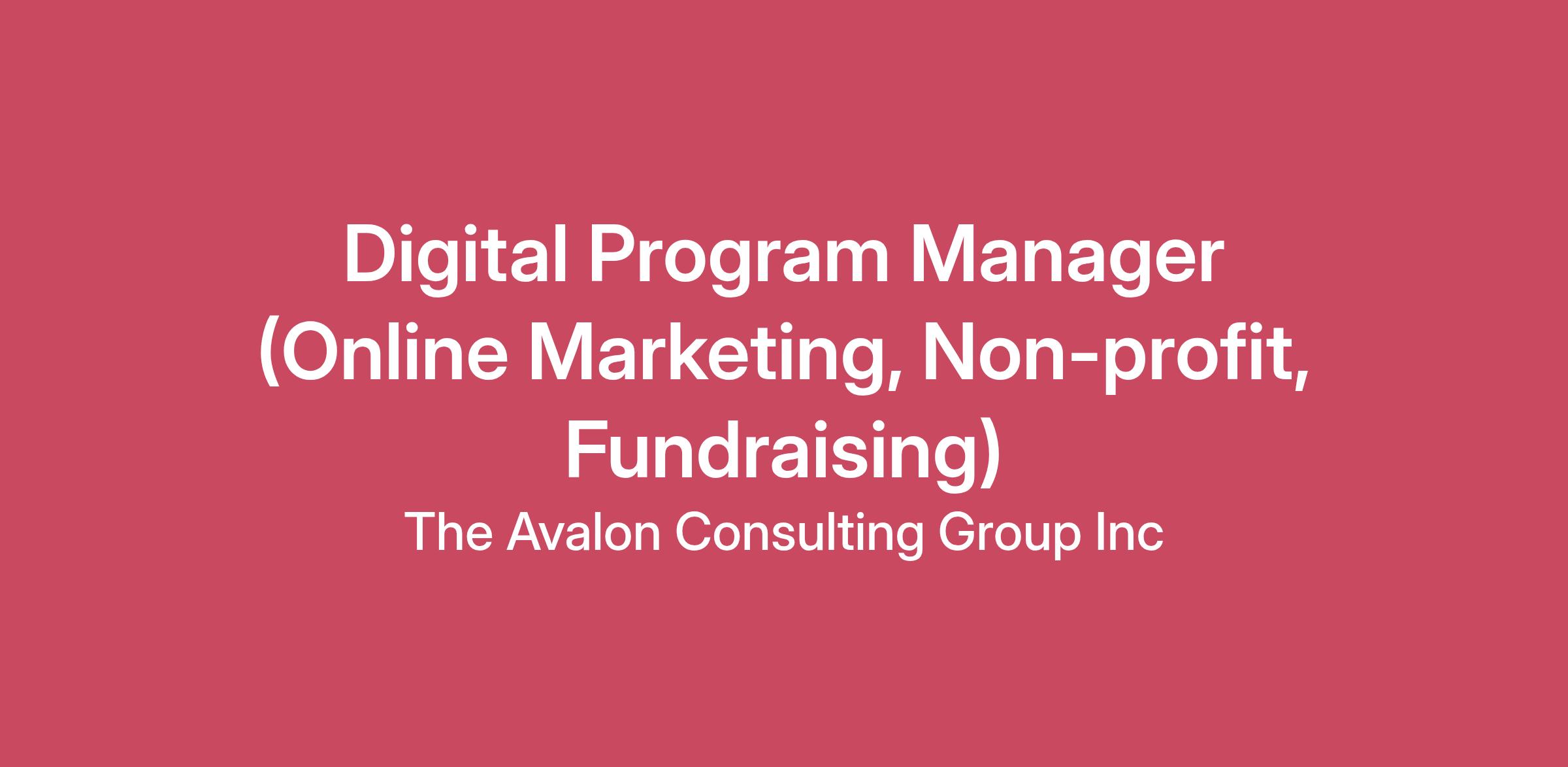 DescriptionAre you a talented digital fundraiser who is passionate about progressive causes? Do you thrive working in a fast-paced environment? Are you excited about collaborating with a team to build something greater than what can be built alone?Avalon is a full-service direct marketing fundraising consulting agency, and we are looking for a skilled digital project manager to help create and implement online fundraising campaigns to drive engagement and bring in revenue for our nonprofit clients. We are looking for someone who has a mix of experience in email marketing, digital advertising, social media, project management and/or digital fundraising, or equivalent skills.We are also pleased to offer a remote-first work environment, where every staff member is welcomed to work from the comfort and safety of their home office, with occasional travel required for client meetings, industry events/training, or company gatherings.What You'll Do with UsCollaborate with client teams and outside vendors to develop and implement effective digital fundraising and membership campaigns that drive engagement and revenue.Serve as lead project manager to ensure jobs are delivered on message, on time, and on budget.Manage all the nitty-gritty details of getting a digital campaign out the door, identify problems, provide solutions, and report up or down as needed.Schedule and participate in internal team meetings and client meetings to discuss creative strategy for direct marketing campaign.Develop creative briefs, campaign reports, and campaign budgets for all client digital campaigns.Recommend list segmentation strategy and list hygiene strategy for all email marketing campaigns.Implement email marketing campaigns, as needed.Collaborate with paid media team to implement and manage digital advertising campaigns.Manage internal Avalon review process and quality control checks.Coordinate with clients, account teams, copywriters, designers, and vendors to ensure everyone is in sync on specifications of the job including but not limited to strategy, schedule, and execution.Analyze campaign results, identify key takeaways, and draft campaign reports.Support day-to-day management of client relationship.RequirementsWhat we need from you2 years of digital fundraising experience (agency experience preferred, but not required)Ability to interpret online fundraising metrics and uncover key takeaways based on those metricsDemonstrated project management experience and ability to ensure attention to detail and meet deadlines while managing multiple projects.Strong ability to write clearly and persuasively.Experience using email platforms and CRMs.Confident presence in virtual meetings; ability to engage people remotely.Proven ability to pick up new skills on the job.Basic HTML knowledge is preferred, but not required.Why you will love AvalonSince 1997, Avalon has been committed to making the world a better place by helping our clients raise the millions of dollars needed to fulfill their inspiring missions. We’ve created a culture unlike any other agency. We are proud to be a fully remote workplace- hiring the best fundraisers in the business, no matter where they work. We also love getting together for team and client meetings when necessary. We're strategic, analytical, innovative, collaborative, compassionate, and most of all: passionate about our work. We love what we do, and it shows in our engaged teams, industry awards, and delighted clients.Avalon is proud of our supportive and collaborative team environment that encourages professional development while recognizing the importance of flexibility and work-life balance. We are committed to fostering a culture that embraces differences every day, and where each of our staff is supported and inspired to reach their full potential.Besides being a great place to work, we are pleased to offer a rich, comprehensive benefit plan, including employer-paid health, dental, and vision insurance, generous paid leave, employer-paid life and disability insurance, and a safe harbor 401(k) plan.The salary range for this position is $55,000-$65,000 annually, commensurate with experience.If this sounds like an opportunity that you’re excited to pursue, we would love to hear from you! For consideration, please apply using the provided link by submitting your resume and a cover letter.Avalon Consulting is committed to fostering a workplace focused on belonging where everyone—regardless of their background—feels valued and empowered. We are proud to be an equal opportunity employer and do not discriminate based on race, color, religion, sex, national origin, age, disability, genetic information, marital status, sexual orientation, gender identity or expression, veteran status, or any other legally protected characteristic.