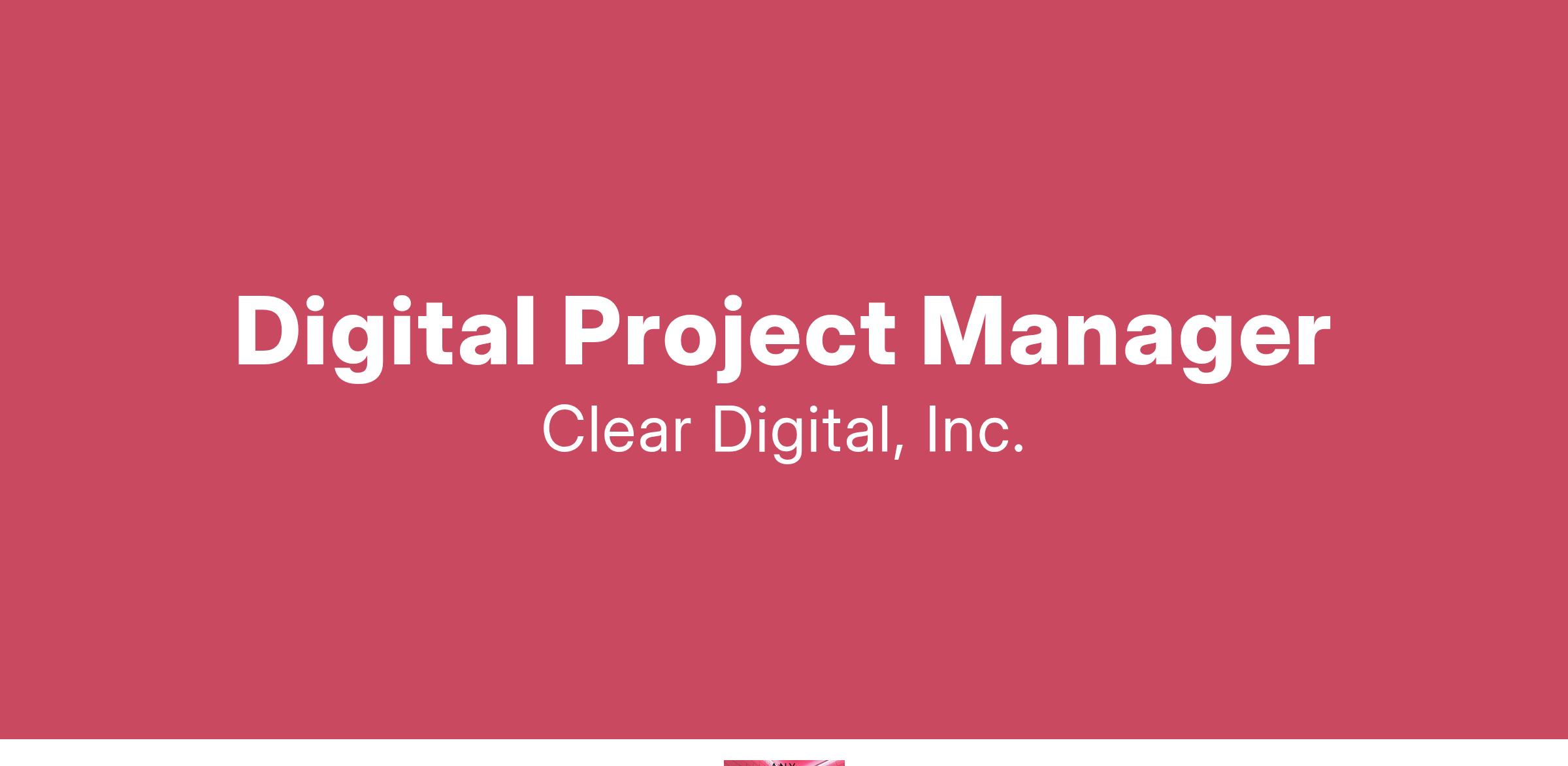 Clear Digital is an equal opportunity employer (EOE). We strongly support diversity in the workforce.