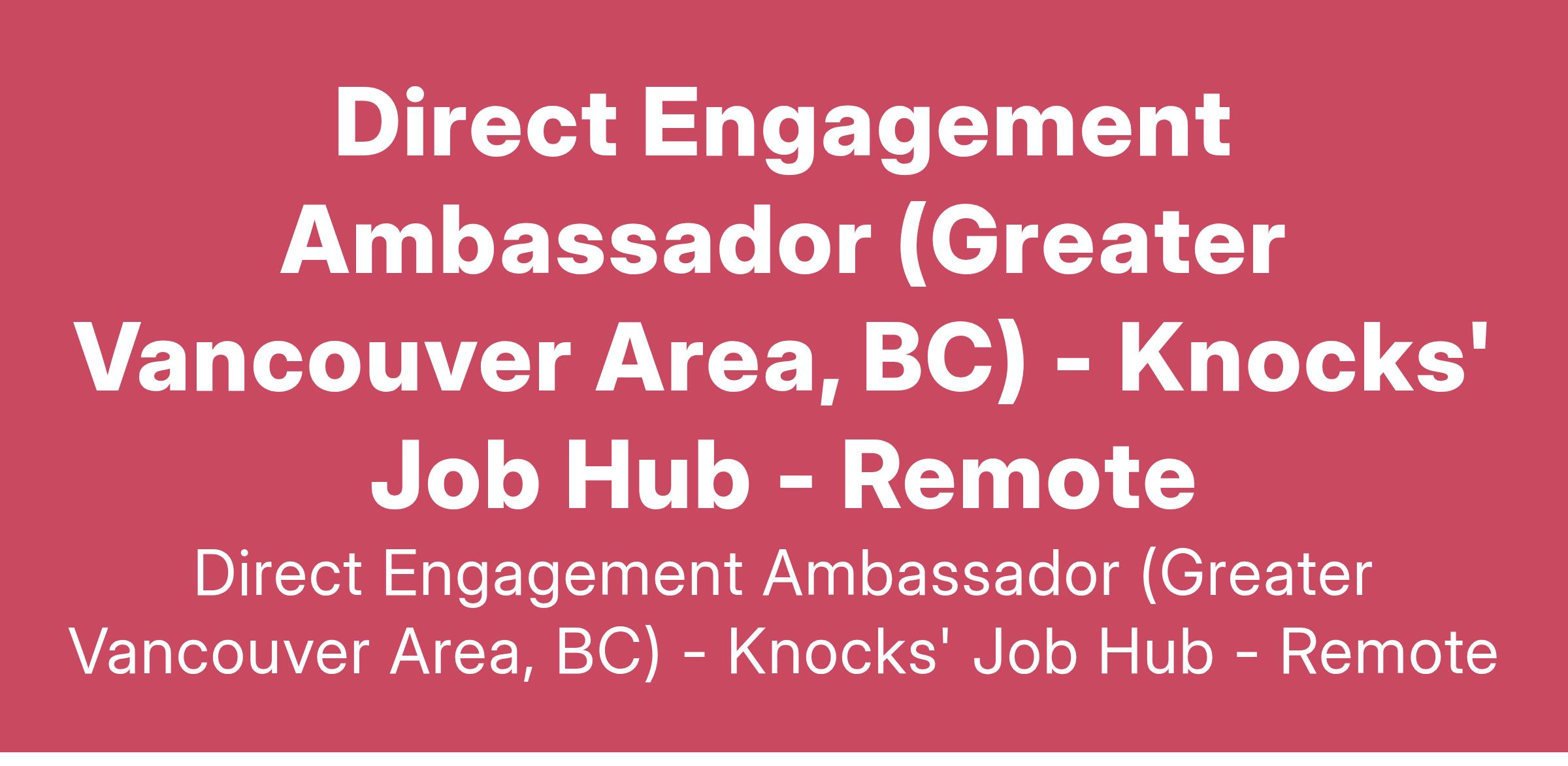 As Knockers, you are an important part of our company’s success. We are building a dynamic team in the Greater Vancouver Area, British Columbia to help our clients connect with their communities, share their message, and distribute literature door-to-door in neighbourhoods and businesses. We believe in a fun and positive environment. We work with you to grow to be able to deliver on our client’s goals. On the road you work in a team of 2-4, going door-to-door and sharing our clients' stories.