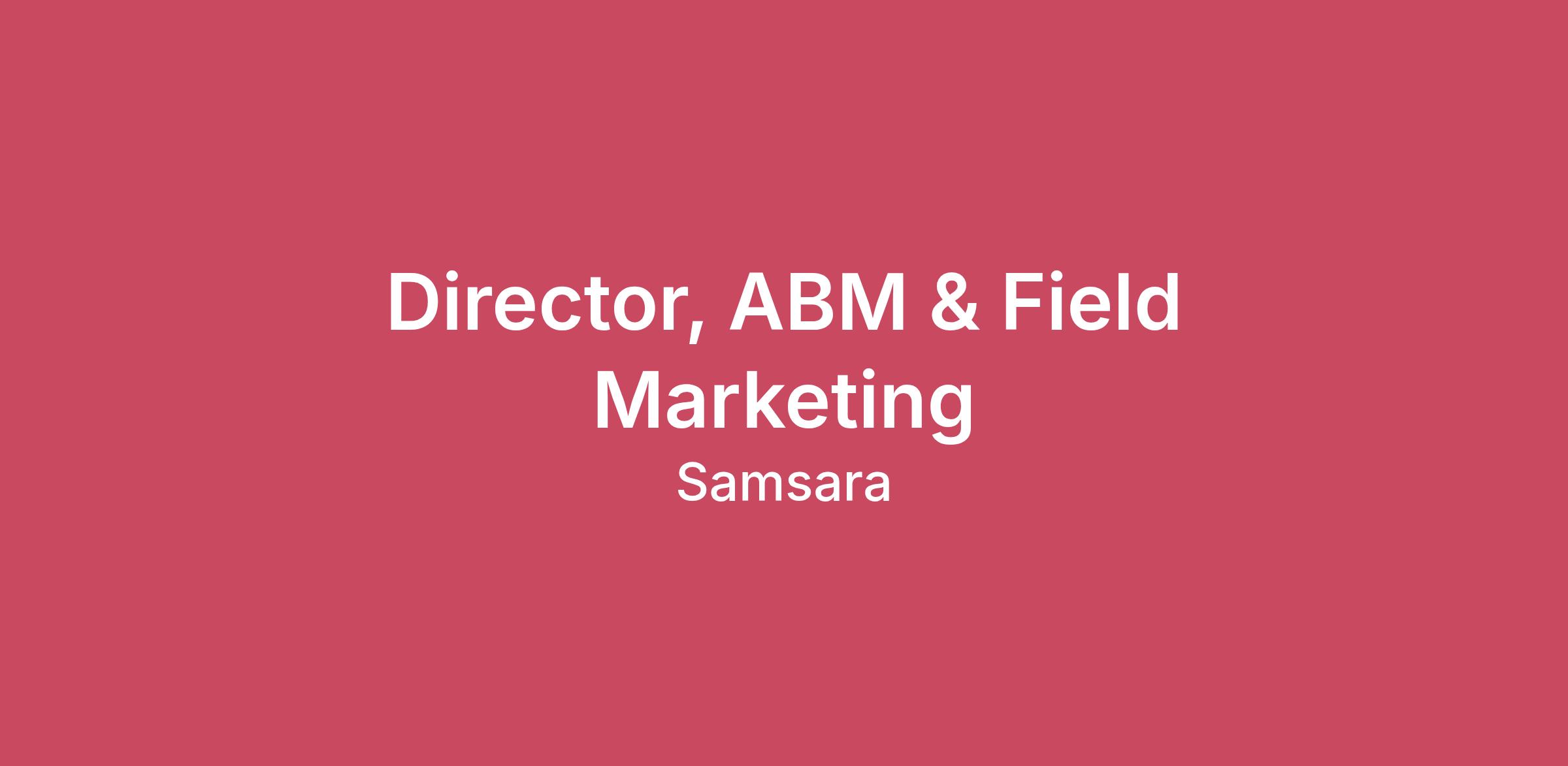 Who we are Samsara (NYSE: IOT) is the pioneer of the Connected Operations™ Cloud, which is a platform that enables organizations that depend on physical operations to harness Internet of Things (IoT) data to develop actionable insights and improve their operations. At Samsara, we are helping improve the safety, efficiency and sustainability of the physical operations that power our global economy. Representing more than 40% of global GDP, these industries are the infrastructure of our planet, including agriculture, construction, field services, transportation, and manufacturing — and we are excited to help digitally transform their operations at scale. Working at Samsara means you’ll help define the future of physical operations and be on a team that’s shaping an exciting array of product solutions, including Video-Based Safety, Vehicle Telematics, Apps and Driver Workflows, and Equipment Monitoring. As part of a recently public company, you’ll have the autonomy and support to make an impact as we build for the long term.About the Role: Samsara is seeking a Director of ABM & Field Marketing to lead one of the most strategic and high-visibility marketing functions in the company. This team serves as the primary marketing partner to Enterprise Sales, owning 1:1 account planning and high-touch executive engagement programs & events that directly influence multimillion-dollar, complex deals. This role sits at the center of our largest revenue opportunities and is responsible for breaking into net-new enterprise accounts, deepening executive relationships, and accelerating pipeline. We are looking for a strategic builder and operator who can evolve a respected, execution-focused team into a highly structured, specialized, and roadmap-driven enterprise growth engine. This leader will bring clarity, organizational design, and long-term vision while maintaining strong alignment with Enterprise Sales leadership. This is a cross-functional leadership role requiring close partnership with Sales, Sales Engineering, Product & Marketing. This is a remote position open to candidates based in the United States. You should apply if: You want to impact the industries that run our world: Your efforts will result in real-world impact – helping to keep the lights on, get food into grocery stores, reduce emissions, and most importantly, ensure workers return home safely. You are the architect of your own career: If you put in the work, this role won’t be your last at Samsara. We set up our employees for success and have built a culture that encourages rapid career development, countless opportunities to experiment and master your craft in a hyper growth environment. You’re energized by our opportunity: The vision we have to digitize large sectors of the global economy requires your full focus and best efforts to bring forth creative, ambitious ideas for our customers. You want to be with the best: At Samsara, we win together, celebrate together and support each other. You will be surrounded by a high-calibre team that will encourage you to do your best. In this role, you will: ABM Strategy & Execution Own and evolve Samsara’s 1:1 ABM strategy for top enterprise accounts. Lead biweekly ABM account strategy sessions with Enterprise Sales. Develop tailored marketing strategies that accelerate deal progression and increase win rates. Align marketing investment to enterprise pipeline priorities and forecast visibility. Drive measurable impact on net-new enterprise acquisition and expansion revenue. Field Marketing & Executive Programs Oversee planning and execution of high-touch executive programs, including EBCs, VIP hospitality events, strategic dinners, and exclusive field experiences. Ensure executive programs are strategically tied to deal advancement and account plans, not standalone events. Organizational Design & Program Evolution Define and implement a clear long-term ABM & Field Marketing roadmap. Evolve the team from generalist execution to defined specialization across ABM and Field Marketing disciplines. Establish prioritization frameworks, operational rigor, and scalable processes. Drive year-over-year program maturity, optimization, and performance improvement. Leadership & Cross-Functional Influence Act as the primary marketing liaison to Enterprise Sales leadership. Bring structure and clarity in fast-paced, high-ambiguity environments. Build credibility with senior sales leaders and operate comfortably at the executive level. Hire, develop, and lead a high-performing, accountable, and inclusive team. Metrics & Performance Accountability Own enterprise ABM and field marketing pipeline targets. Evaluate ROI of 1:1 programs and executive events. Use pipeline metrics, sales cycle insights, and forecasting data to inform investment decisions. Champion, role model, and embed Samsara’s cultural principles (Focus on Customer Success, Build for the Long Term, Adopt a Growth Mindset, Be Inclusive, Win as a Team) as we scale globally and across new offices Hire, develop and lead an inclusive, engaged, and high performing team Minimum requirements for the role: 10+ years of experience in B2B SaaS marketing, with significant experience in Enterprise ABM. 5+ years of experience leading and scaling high-performing teams. Demonstrated experience building or leading a true 1:1 ABM program (not solely scaled digital ABM) Strong partnership experience with Enterprise Sales organizations. Proven ability to evolve a team from execution-oriented to strategically driven with clear specialization and structure. Deep fluency in enterprise pipeline metrics, forecasting, and complex sales cycles Strong executive communication skills and cross-functional influence. Experience in high-growth B2B SaaS environments owning both strategic vision and execution in a scaling organization. The range of annual base salary for full-time employees for this position is below. Please note that base pay offered may var