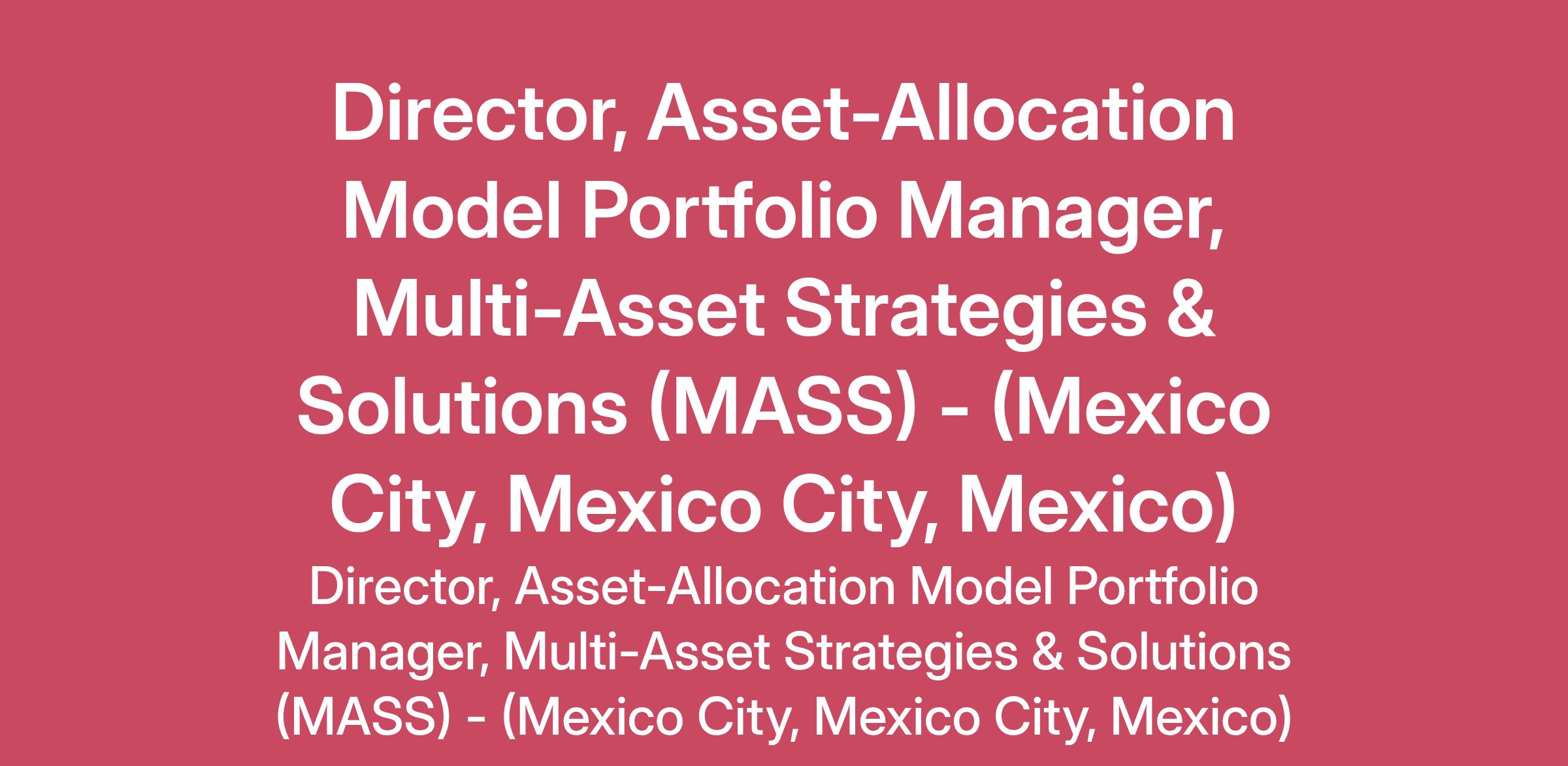 BlackRock is seeking an experienced multi-asset portfolio manager (“PM”) to join our MASS investment team in Mexico City, where they will be responsible for managing the Latin America models book. This book consists of multi-asset model portfolios customized and localized for institutional and wealth clients across Latin America, bringing together investment input from multiple global investment teams.