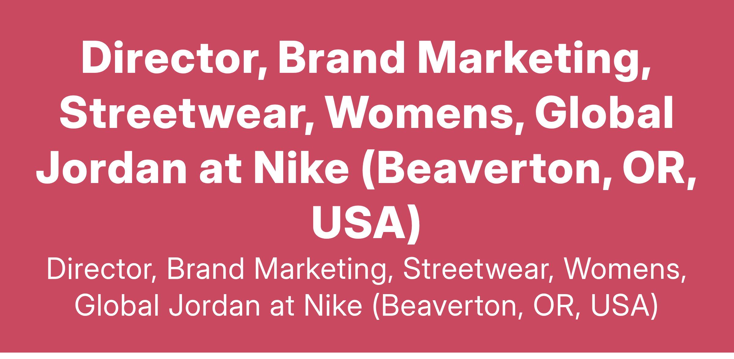 Director, Brand Marketing, Streetwear, Womens, Global Jordan at Nike (Beaverton, OR, USA)