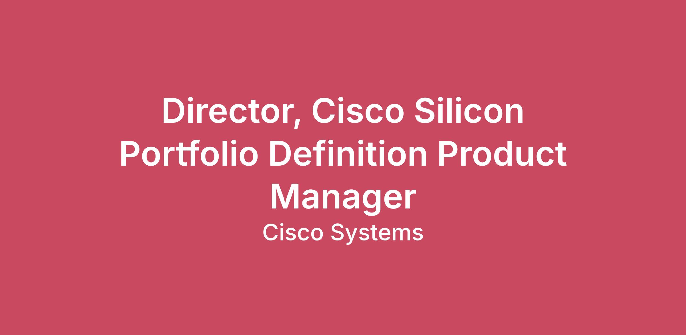 The application window is expected to close on: 04/04/2026Job posting may be removed earlier if the position is filled or if a sufficient number of applications are received.Meet the TeamYou will join the Silicon Strategy & Portfolio Management team—the technical and strategic "engine room" behind Cisco’s hardware innovation. We are a high-impact group of "Marchitects" who bridge the gap between long-term market disruption and immediate silicon architecture. Our team is responsible for the strategic roadmap of Cisco Silicon One and our broader SoC portfolio, ensuring we power everything from the world’s largest service providers to the next generation of AI-driven data centers. We thrive on solving complex trade-offs, fostering cross-functional collaboration, and building the most efficient silicon ecosystem on the planet.Your ImpactYou will lead systematic market-driven silicon portfolio analysis of Cisco’s silicon and define requirements that drive portfolio-level differentiations, increase product reuse, and expand addressable markets.Lead portfolio optimization initiatives to increase cross-product reuse and simplicity.Drive cross-product differentiation initiatives with PLMs, system architecture, and software at a total network level.Define building block requirements that maximize development efficiency and analyze TAM coverage for smart segmentation.Own competitive portfolio analysis and synthesize mega-trends into portfolio-level requirements.Establish portfolio governance, trade-off forums, and decision logs while publishing periodic roadmap packages.Deliver measurable improvements in building‑block reuse and cross‑product differentiation, enabling scalability and efficiency across complex product lines.Team player leader who leads through collaboration and influence.Minimum Qualifications:Bachelor’s degree in Engineering, Computer Science, or related field.12+ years in product/portfolio management within the networking or silicon industry.Experience translating market needs into architecture‑level requirements, driving roadmap decisions across switching/routing layers, product portfolios, network processors, traffic management, and emerging networking software trends.Preferred Qualifications:Experience managing silicon portfolios spanning from entry access routers to hyperscaler AI switching SoCs.Prior experience influencing and aligning cross‑functional stakeholders to drive successful roadmap planning cycles, ensuring on‑time delivery and operational rigor.Experience translating disruption signals into defensible competitive advantages.Why Cisco? At Cisco, we’re revolutionizing how data and infrastructure connect and protect organizations in the AI era – and beyond. We’ve been innovating fearlessly for 40 years to create solutions that power how humans and technology work together across the physical and digital worlds. These solutions provide customers with unparalleled security, visibility, and insights across the entire digital footprint.Fueled by the depth and breadth of our technology, we experiment and create meaningful solutions. Add to that our worldwide network of doers and experts, and you’ll see that the opportunities to grow and build are limitless. We work as a team, collaborating with empathy to make really big things happen on a global scale. Because our solutions are everywhere, our impact is everywhere. We are Cisco, and our power starts with you. Message to applicants applying to work in the U.S. and/or Canada:The starting salary range posted for this position is $230,100.00 to $325,300.00 and reflects the projected salary range for new hires in this position in U.S. and/or Canada locations, not including incentive compensation*, equity, or benefits.Individual pay is determined by the candidate's hiring location, market conditions, job-related skillset, experience, qualifications, education, certifications, and/or training. The full salary range for certain locations is listed below. For locations not listed below, the recruiter can share more details about compensation for the role in your location during the hiring process.U.S. employees are offered benefits, subject to Cisco’s plan eligibility rules, which include medical, dental and vision insurance, a 401(k) plan with a Cisco matching contribution, paid parental leave, short and long-term disability coverage, and basic life insurance. Please see the Cisco careers site to discover more benefits and perks. Employees may be eligible to receive grants of Cisco restricted stock units, which vest following continued employment with Cisco for defined periods of time.U.S. employees are eligible for paid time away as described below, subject to Cisco’s policies:10 paid holidays per full calendar year, plus 1 floating holiday for non-exempt employees1 paid day off for employee’s birthday, paid year-end holiday shutdown, and 4 paid days off for personal wellness determined by CiscoNon-exempt employees** receive 16 days of paid vacation time per full calendar year, accrued at rate of 4.92 hours per pay period for full-time employeesExempt employees participate in Cisco’s flexible vacation time off program, which has no defined limit on how much vacation time eligible employees may use (subject to availability and some business limitations)80 hours of sick time off provided on hire date and each January 1st thereafter, and up to 80 hours of unused sick time carried forward from one calendar year to the nextAdditional paid time away may be requested to deal with critical or emergency issues for family membersOptional 10 paid days per full calendar year to volunteerFor non-sales roles, employees are also eligible to earn annual bonuses subject to Cisco’s policies.Employees on sales plans earn performance-based incentive pay on top of their base salary, which is split between quota and non-quota components, subject to the applicable Cisco plan. For quota-based incentive pay, Cisco 
