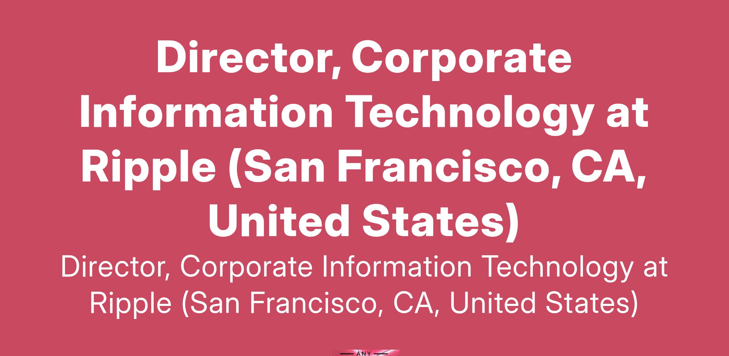 Director, Corporate Information Technology at Ripple (San Francisco, CA, United States)