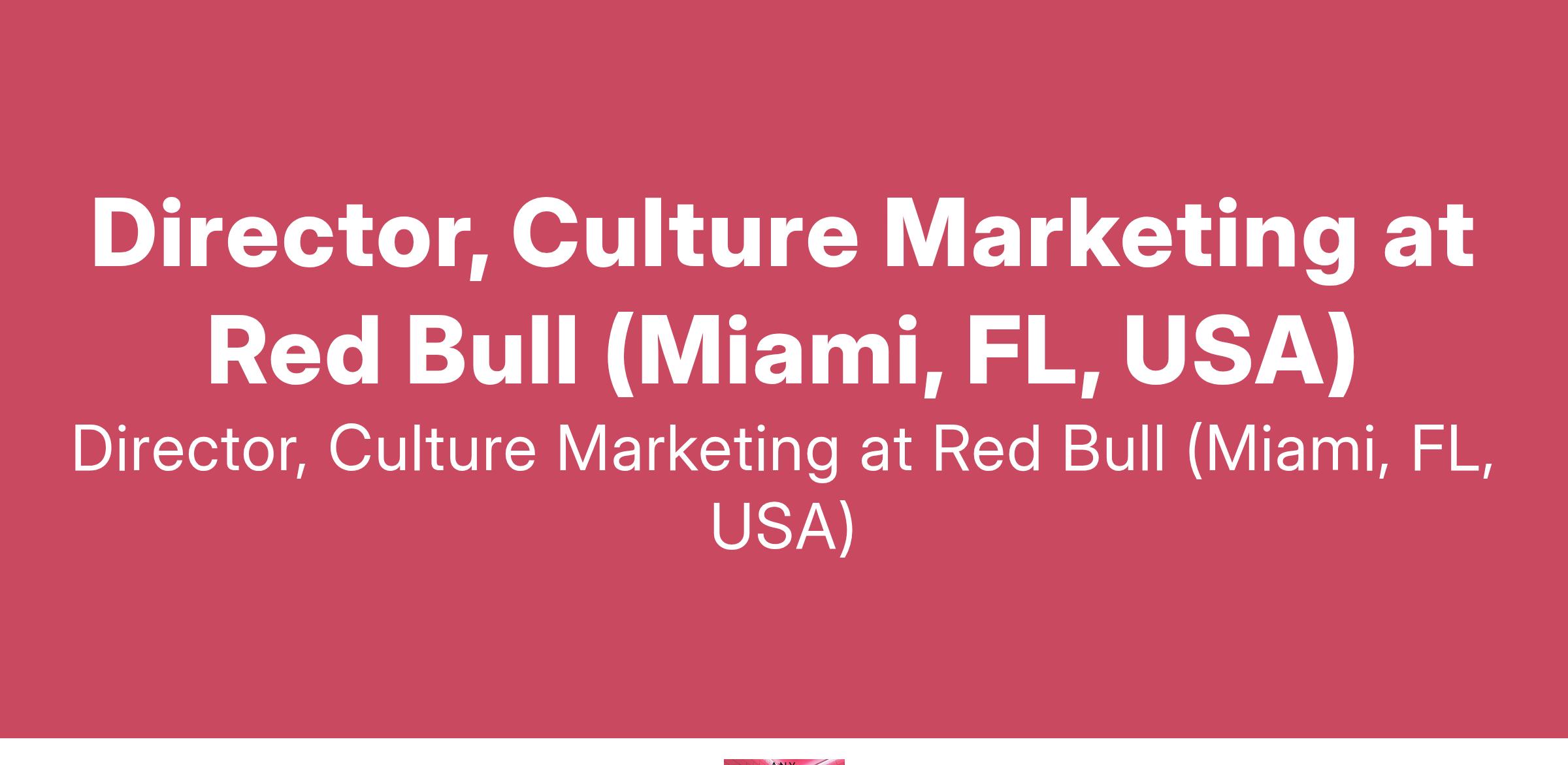 Director, Culture Marketing at Red Bull (Miami, FL, USA)
