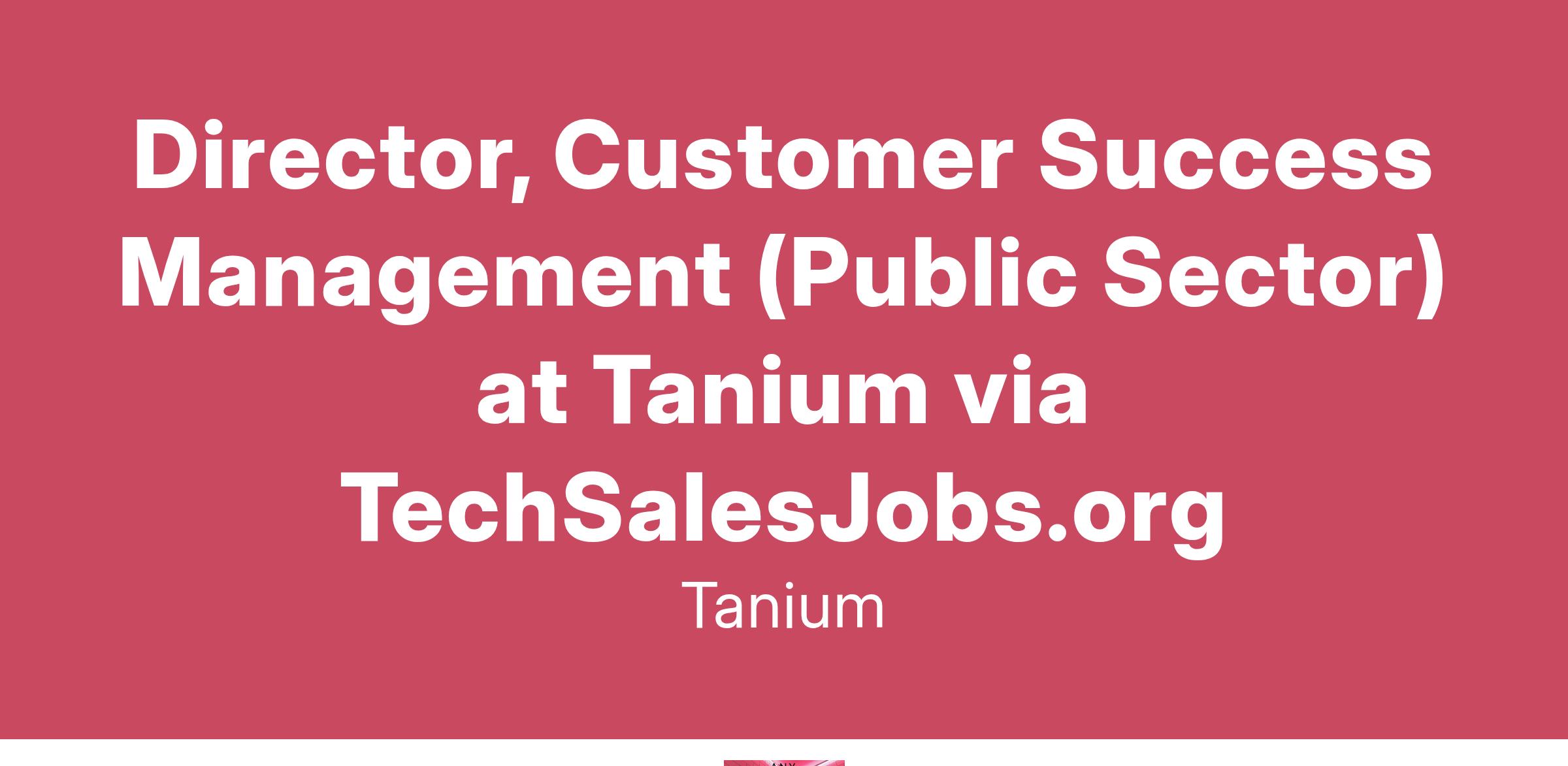 The Director, Customer Success Management role is critical to helping customers receive value from their investment in Tanium and to ensure Tanium maintains its enviable base of high value, loyal customers that rely on Tanium to manage all their endpoints. This customer facing role will be responsible for customers each having thousands of endpoints running the Tanium platform and solutions. The successful candidate will be able to manage a significant set of customers and use data and qualitative feedback to decide how best to engage resources to drive desired results.