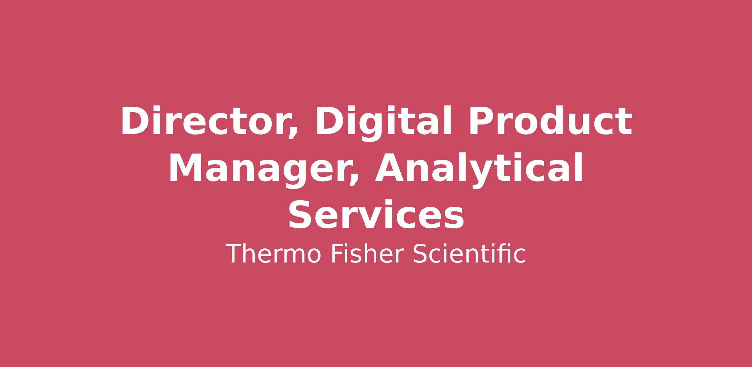 Work ScheduleStandard (Mon-Fri)Environmental ConditionsOfficeJob DescriptionAt Thermo Fisher’s PPD clinical research business, we’re using digital innovation, data science, and AI to reimagine how life-changing therapies reach patients. Our teams combine deep scientific expertise with advanced analytics, automation, and digital platforms to make research smarter, faster, and more connected.At PPD we know that innovation happens when diverse minds meet. Our Digital Science, Data, and AI professionals collaborate closely with scientists, clinicians, and operational experts to solve real-world challenges in clinical research. Alongside our partnership with Open AI, you can be part of the collaboration that will help to improve the speed and success of drug development, enabling customers to get medicines to patients faster and more cost effectively.You’ll join a culture that values experimentation, learning, and collaboration — where your ideas can help shape how we deliver life-saving solutions and improve global health outcomes. Whether you’re a data engineer, product manager, software developer, or AI scientist, you’ll find opportunities here to apply your skills to work that truly matters — improving global health outcomes. POSITION SUMMARY:The Director, Digital Product Manager – Analytical Services (ASD) will lead the strategy, vision, and execution of flagship digital capabilities supporting the Analytical Services Division within the Clinical Research Group. This role is responsible for defining and delivering scalable, user-centric digital solutions that enable laboratory operations, scientific data management, and customer engagement across internal and external stakeholders.You will align product roadmaps with business objectives, customer needs, and regulatory requirements, while partnering closely with the CRG Digital organization as a primary development partner. This role requires deep expertise in digital product management within regulated environments, strong knowledge of laboratory systems and data, and demonstrated success leading cross-functional teams in complex, matrixed organizations.Key Responsibilities: Product Roadmap and Vision: Develop and communicate a compelling product vision and multi-year roadmap aligned with ASD strategic objectives and CRG digital priorities.Conduct market analysis, voice-of-customer research, and competitive intelligence to identify opportunities for innovation in laboratory digital capabilities.Align product investments with measurable business value, operational efficiency, and customer impact.Provide transparency and executive-level reporting on product pipeline, milestones, risks, and outcomes.Detailed Product Definition and Execution: Translate complex laboratory, operational, and business requirements into detailed product specifications, features, and user stories.Partner closely with engineering, UX/UI, lab operations, quality, and scientific stakeholders to ensure precise execution.Lead agile product development cycles, ensuring clarity of requirements, rapid iteration, and high-quality delivery.Oversee and coordinate internal and external development partners to ensure timely, scalable delivery of digital capabilities.Represent ASD product needs within the broader CRG Digital organization and ensure alignment across shared platforms. Laboratory Domain Expertise & Digital Enablement: Apply deep understanding of laboratory operations, laboratory data flows, and systems such as LIMS, ELNs, and related digital platforms.Drive integration strategies across internal systems, external platforms, and customer-facing capabilities.Ensure product design accounts for data integrity, auditability, regulatory standards, and quality system requirements within clinical research environments.Identify opportunities to modernize and digitize analytical workflows to improve efficiency, traceability, and customer experience.Advanced Analytics and AI Enablement:Collaborate effectively with data scientists and ML engineers; demonstrate fluency in AI/ML concepts (e.g., regression, classification, NLP, predictive modeling) and their application in laboratory and clinical contexts.Leverage advanced analytics and AI to enhance data interpretation, operational insights, forecasting, and customer value delivery.Ensure responsible, compliant deployment of AI-driven capabilities within regulated environments.User-Centric Product Development: Champion intuitive, high-impact user experiences across scientific, operational, and customer-facing workflows.Validate product concepts through structured user research, feedback loops, and analytics-driven insights.Continuously refine solutions to maximize adoption, usability, and measurable business outcomes. Stakeholder Leadership and Communication: Collaborate across business leaders, lab operations, quality, regulatory, digital engineering teams, and external partners.Clearly articulate product vision, tradeoffs, and progress to senior leadership and external stakeholders.Influence investment decisions through data-driven analysis and compelling strategic narratives.Manage and strengthen relationships with external development partners and key technology stakeholders. Leadership and Team Development: Lead and mentor product managers and product owners, emphasizing execution excellence, data-driven decision-making, and customer focus.Foster a culture of innovation, accountability, and cross-functional collaboration.Demonstrate strong people leadership experience managing global and matrixed teams.Education and Experience:Bachelor’s degree; advanced degree in healthcare, life sciences, computer science, business, or related field preferred. Previous product management experience delivering complex digital software solutions, with significant experience in clinical research, laboratory services, life sciences, or other regulated industries that provides the knowledge, skills, and abilities to perform 