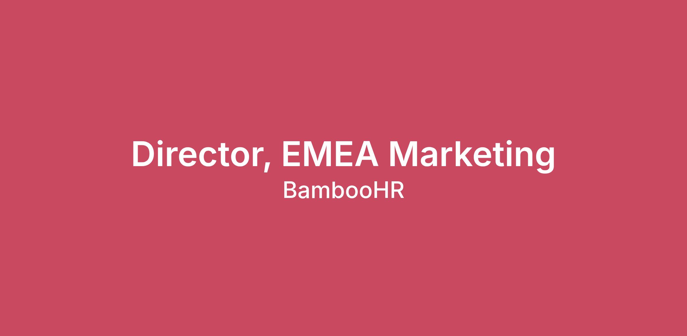Please Note: This is a remote position available in London, England. Additionally, employment with BambooHR is contingent on passing both a background and credit check. Essential Job Duties BambooHR is hiring a Director, EMEA Marketing to establish, lead, and scale our marketing presence across the UK and, over time, the broader EMEA region. This is a foundational role for BambooHR’s growth story as this individual will serve as a key leader in the company’s global expansion efforts. This role is ideal for a true builder – someone with an entrepreneurial mindset who thrives in ambiguity, enjoys creating from first principles, and is energised by the opportunity to shape a market within the context of a well-resourced, high-growth global organisation. The Director, EMEA Marketing will define BambooHR’s regional marketing strategy, localise and contextualise our story for the UK market, and drive meaningful revenue impact. This role will build on significant existing scale in the UK market, with a large UK customer base, established sales motion, and substantial existing investment in digital marketing. Your mandate is to bring focus, leadership, and strategic coherence to unlock the next phase of growth. Over time, this role has the opportunity to expand in scope by building a regional team and taking on broader international responsibilities as BambooHR continues to grow globally. You will: Regional Marketing Strategy & Leadership Own and define the UK marketing strategy aligned to company growth objectives. Operate as a key member of the global marketing leadership team, and serve as a core member of the UK go-to-market leadership. Establish BambooHR’s local presence by building relationships with key UK and EMEA HR industry associations, communities, and influencer networks—positioning BambooHR as a credible, engaged, and long-term partner in the regional HR ecosystem. Demand Generation, Field Marketing & GTM Alignment Drive a meaningful share of UK revenue through marketing-sourced and marketing-influenced pipeline. Own top-of-funnel performance, balancing near-term demand capture with mid- and top-of-funnel investment to improve efficiency and long-term growth. Build and lead a field marketing strategy—including events, community partnerships, and sales-aligned programs—to support regional GTM efforts and target account engagement. Partner closely with UK Sales to establish shared planning, pipeline goals, execution cadence, and feedback loops, ensuring marketing directly supports regional revenue priorities. Brand, Awareness & Localisation Identify, define, and localise the BambooHR narrative for the UK market, addressing local buyer needs, cultural context, and competitive dynamics. Increase brand awareness and consideration among target UK audiences. Actively address and correct perceptions of BambooHR as a US-centric platform through localised messaging, proof points, and customer stories. Establish a core local industry presence through field marketing, industry partnerships and events to complement a significant top-of-funnel digital marketing investments. Channels, Agencies & Execution Identify, onboard, and manage regional agency partners across key disciplines (demand generation, PR, content, media). Partner closely with global and international marketing teams to leverage shared capabilities across digital marketing, marketing automation, web, PR, and channel spend. Drive growth in organic and direct traffic and leads over time, reducing over-reliance on bottom-of-funnel paid acquisition. Team & Future Scale Operate initially as a hands-on leader, leveraging global teams and agency partners. Define the future EMEA marketing org structure and build a case for additional headcount as the business scales. Contribute to broader international expansion strategy and help shape BambooHR’s global marketing operating model. Success Factors Pipeline & Revenue Impact: Sustained growth in marketing-sourced and marketing-influenced pipeline and revenue in the UK, with improving conversion from lead to sales-accepted opportunity (SAO). Funnel Health & Efficiency: Increased top-of-funnel lead volume and quality, spurred by increased organic/direct web traffic. Improved CAC efficiency through a healthier balance of demand capture and demand creation. Brand Strength & Presence: Measurable increases in UK brand awareness, consideration, and share of voice within the HR market, supported by stronger local visibility and relevance. Channel Mix Improvement: Growth in organic and direct traffic and lead contribution, reducing over-reliance on paid search and strengthening long-term demand durability. What You Need to Get the Job Done: Experience & Background 8–12+ years of B2B SaaS marketing experience, with significant UK market expertise. Proven experience leading regional or market-level marketing with direct revenue accountability. Deep experience marketing C-level executives, with specific HCM / HRIS experience preferred. Strong background in demand generation, performance marketing, and revenue-aligned marketing. Experience localising global brands for regional markets. Skills & Capabilities Builder mentality with demonstrated success creating strategy, programs, and operating models from the ground up. Entrepreneurial mindset with comfort operating in ambiguity and making tradeoffs. Strong analytical and strategic thinking, with the ability to balance data-driven execution and narrative-driven brand building. Experience managing agencies and external partners with clear accountability and outcomes. Leadership & Collaboration Experience leading localized marketing strategy within a global organization, and a comfort level leading with certain levels of ambiguity. Track record of deep partnership with Sales in a high-growth go-to-market environment. Strong communication and storytelling skills, both internally and externally. Culture & Mindset Fit This role is for someon