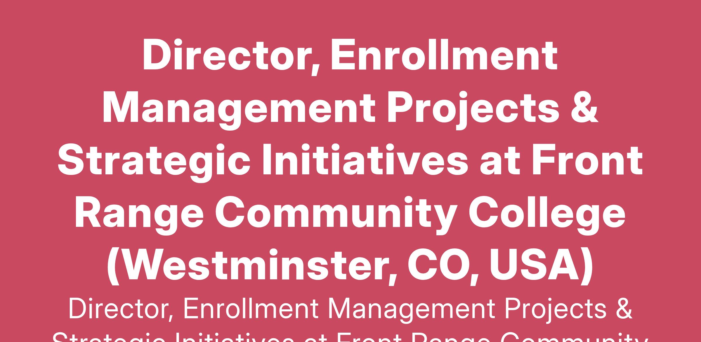 Director, Enrollment Management Projects & Strategic Initiatives at Front Range Community College (Westminster, CO, USA)