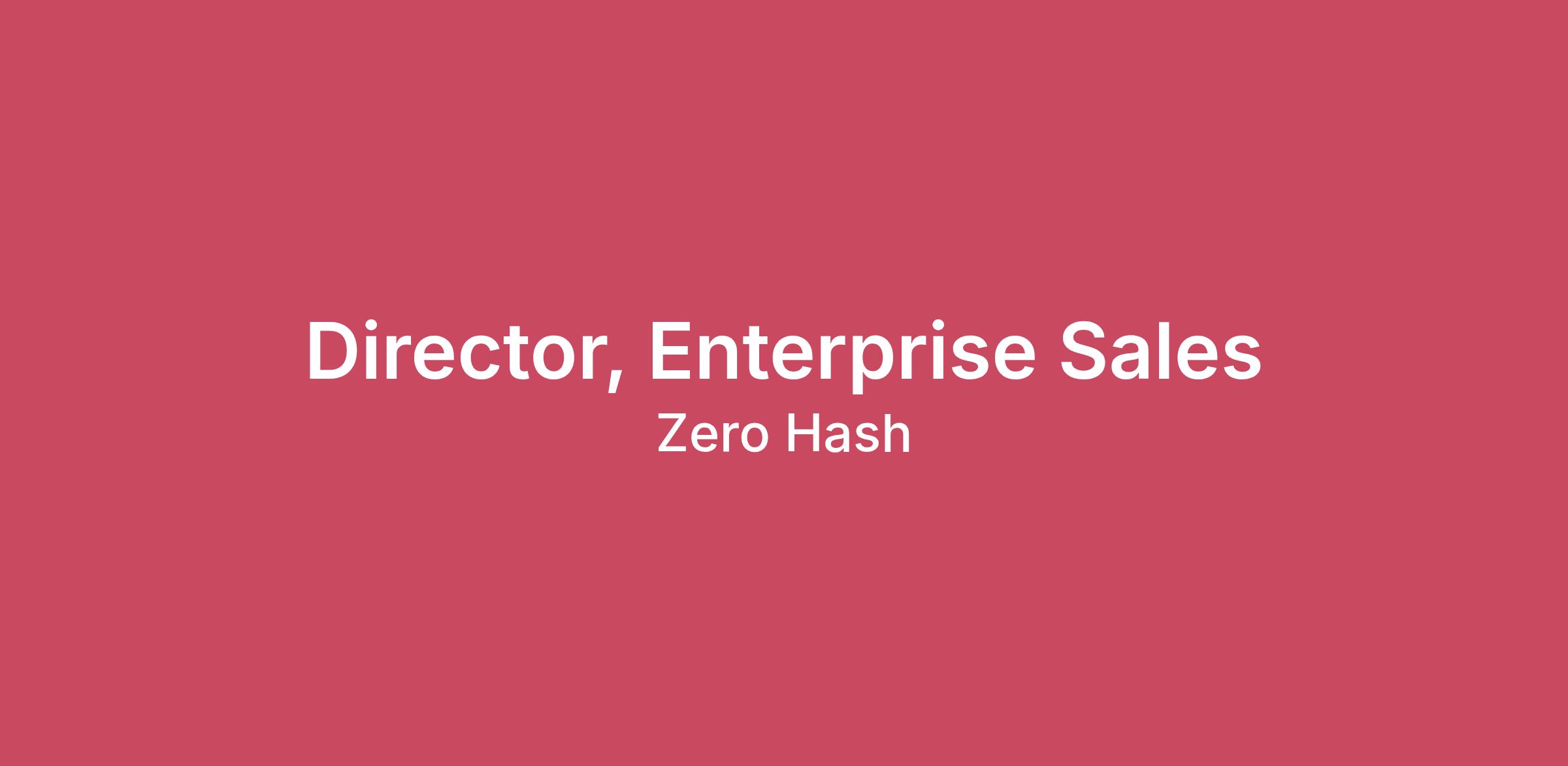 As a Director of Enterprise Sales, you’ll be joining the Revenue team at Zero Hash to support our continued expansion in the US and globally.