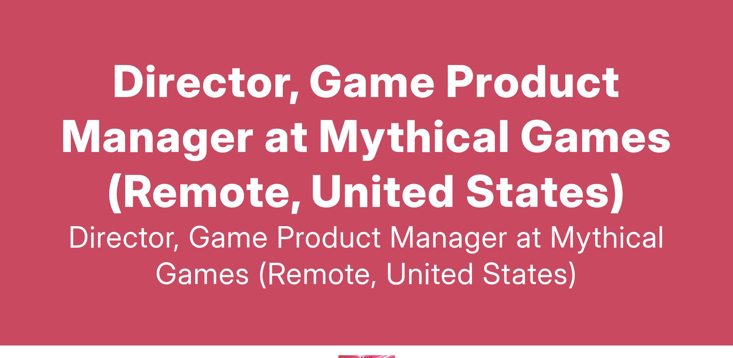 Director, Game Product Manager at Mythical Games (Remote, United States)