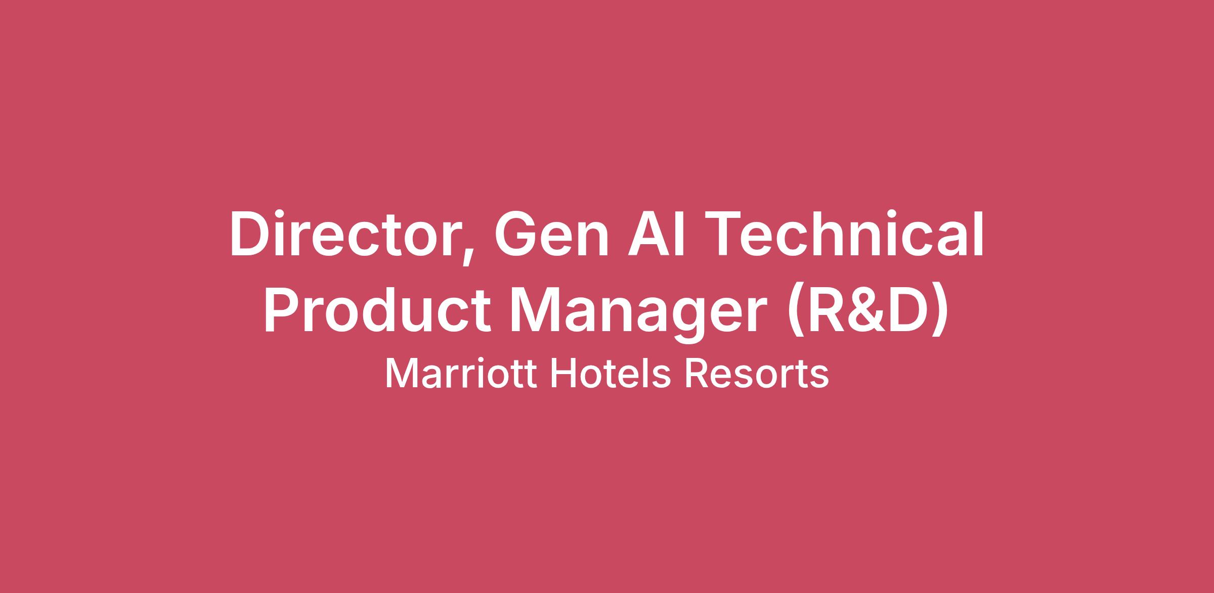 DescriptionPosition Overview The Director, Technical Product Manager – Generative AI (R&D) is a forward-thinking leader responsible for driving rapid prototyping and experimentation to accelerate Marriott’s AI innovation pipeline. This role focuses on transforming emerging ideas into tangible proofs of concept that validate business value and technical feasibility. By leveraging cutting-edge generative AI technologies, the Director ensures prototypes evolve into scalable solutions that enhance operational efficiency, elevate guest experiences, and create competitive advantage. This position requires a unique blend of technical depth, product vision, and creative problem-solving. The Director partners closely with data scientists, engineers, and designers to ideate, build, and iterate prototypes in an agile environment. Acting as a trusted advisor to stakeholders, this leader communicates complex concepts clearly, champions responsible AI practices, and fosters a culture of experimentation and continuous learning.Key Responsibilities • Prototype Development & Innovation o Lead the design and delivery of AI prototypes that explore new use cases and validate strategic opportunities. o Apply rapid experimentation and iterative development methodologies to accelerate time-to-value. • Technical Leadership o Collaborate with engineering and data science teams to ensure prototypes are technically sound and aligned with enterprise architecture. o Evaluate emerging technologies and frameworks to inform prototype design and scalability. • Strategic Alignment o Partner with product leadership to prioritize R&D initiatives based on business impact and feasibility. o Translate prototype outcomes into actionable insights for enterprise adoption. • Cross-Functional Collaboration o Engage stakeholders across business units to identify high-value problems and co-create innovative solutions. o Serve as a technical liaison, ensuring clarity and alignment between technical teams and business leaders. • Responsible AI & Governance o Embed ethical AI principles and governance frameworks into all prototype development processes. o Ensure compliance with security, privacy, and regulatory standards.Required Qualifications • 8+ years of experience in product management or technical leadership roles, with at least 3–5 years in AI/ML or generative AI. • Proven track record of delivering prototypes or proofs of concept that informed enterprise-scale solutions. • Strong technical acumen in AI/ML architectures, cloud platforms, and modern development practices. • Expertise in agile methodologies and rapid experimentation frameworks. • Ability to communicate complex technical concepts to non-technical stakeholders. Preferred Qualifications • Master’s degree in Computer Science, Data Science, or related field. • Experience in R&D environments or innovation labs. • Familiarity with hospitality or consumer services industries. At Marriott International, we are dedicated to being an equal opportunity employer, welcoming all and providing access to opportunity. We actively foster an environment where the unique backgrounds of our associates are valued and celebrated. Our greatest strength lies in the rich blend of culture, talent, and experiences of our associates. We are committed to non-discrimination on any protected basis, including disability, veteran status, or other basis protected by applicable law.