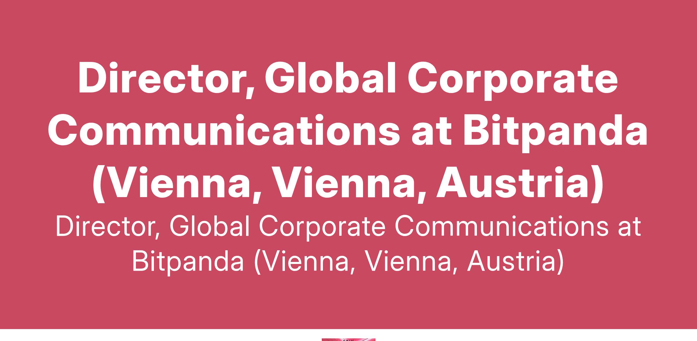 Director, Global Corporate Communications at Bitpanda (Vienna, Vienna, Austria)