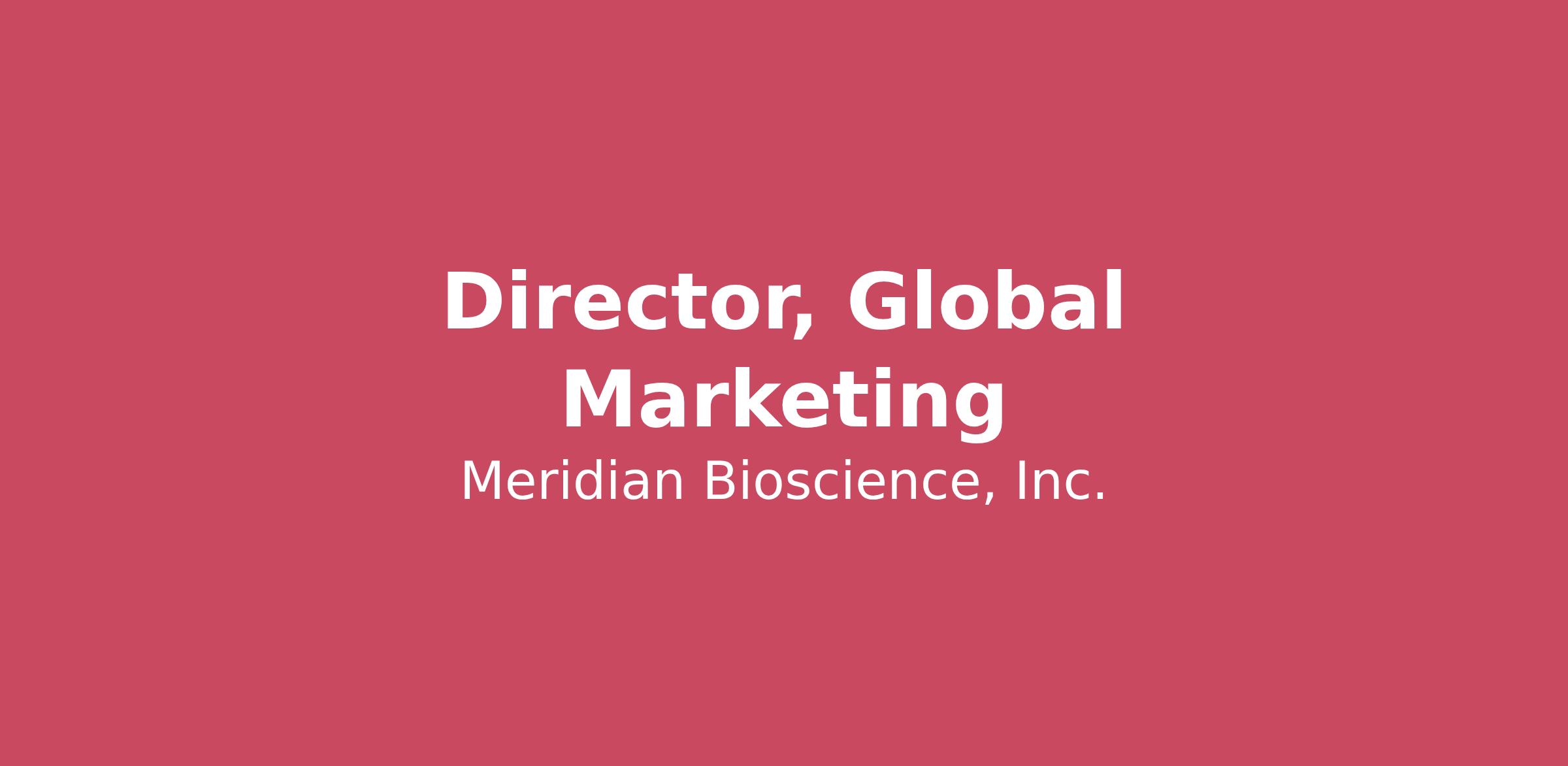 About Meridian Meridian Bioscience is a fully integrated life science company that develops, manufactures, markets and distributes a broad range of innovative diagnostic products. We are dedicated to developing and delivering better solutions that give answers with speed, accuracy and simplicity that are redefining the possibilities of life from discovery to diagnosis. We are looking for talented and passionate individuals that help drive our vision. Our innovative culture will allow interested candidates to discover and create, through collaboration, cutting edge solutions to tough problems. Job Summary The Global Director of Marketing is a senior leadership role responsible for translating portfolio strategy into impactful global marketing execution across Meridian Bioscience’s Diagnostics business. This role leads downstream and upstream marketing activities, ensuring strong go-to-market execution, lifecycle management, and commercial readiness across regions.Reporting to the Vice President, Diagnostics Global Commercial Marketing, the Global Director serves as a key connector between global strategy and regional execution, partnering closely with Sales, R&D, Clinical, Regulatory, and Operations to drive growth, adoption, and customer value across priority diagnostic markets. Key Duties Global Marketing Strategy & ExecutionLead global downstream marketing strategy for assigned product lines and platforms within the Diagnostics portfolio.Translate global portfolio strategy into clear positioning, value propositions, messaging, and commercial plans.Ensure consistent global brand and product messaging while enabling appropriate regional flexibility. Product Lifecycle ManagementOwn end-to-end lifecycle management for assigned products, from launch through growth, maturity, and end-of-life.Partner with cross-functional teams, like Sales, R&D, Regulatory, Operations, and Clinical Affairs to incorporate customer insights, unmet needs, and commercial requirements into development and enhancement plans.Drive post-launch optimization, line extensions, and differentiation strategies. Go-to-Market & Launch Excellence•Lead global go-to-market planning, including launch strategy, pricing inputs, promotional planning, and commercialization readiness.Lead the development and delivery of sales enablement tools, training materials, and launch communications in partnership with Sales and Commercial Operations.Ensure disciplined launch execution with clear milestones, metrics, and accountability. Market Insights & Competitive IntelligenceLeverage market research, voice-of-customer, and competitive intelligence to inform strategy and execution.Monitor industry trends, customer workflows, and competitive dynamics across global diagnostics markets.Translate insights into actionable recommendations for portfolio, messaging, and commercial priorities. Cross-Functional Leadership & CollaborationServe as a key marketing partner to global and regional Sales leaders.Collaborate closely with R&D, Clinical Affairs, Regulatory, Quality, Supply Chain, and Finance to ensure aligned commercialization.Support strategic partnerships and distributor relationships as required, including coordination with external partners. Team Leadership & DevelopmentLead, coach, and develop a high-performing global marketing team (Marketing managers and/or regional marketing leads).Establish clear objectives, performance expectations, and development plans.Foster a culture of accountability, collaboration, and continuous improvement. Governance & ComplianceEnsure all marketing activities, claims, and materials comply with regulatory, clinical, and quality requirements.Uphold Meridian policies, ethical standards, and best practices across global markets. Qualifications Bachelor’s degree in marketing, business, life sciences, or related field required. MBA or advanced degree preferred. 10–15 years of marketing experience within medical devices, IVD, or diagnostics. Demonstrated success in global product marketing, commercialization, and launch leadership. Experience leading and influencing cross‑functional, global teams. Strong understanding of regulated healthcare markets and global commercialization models.Strategic and execution‑oriented marketing leadership Deep understanding of diagnostics customers, workflows, and value drivers Strong analytical and market‑insight capabilities Excellent communication, influence, and stakeholder‑management skills Proven ability to balance global consistency with regional market needs Travel: 25%-35% *All qualified applicants will receive consideration for employment without regard to race, color, sex, sexual orientation, gender identity, religion, national origin, disability, veteran status, or other legally protected status. (USA Only)*