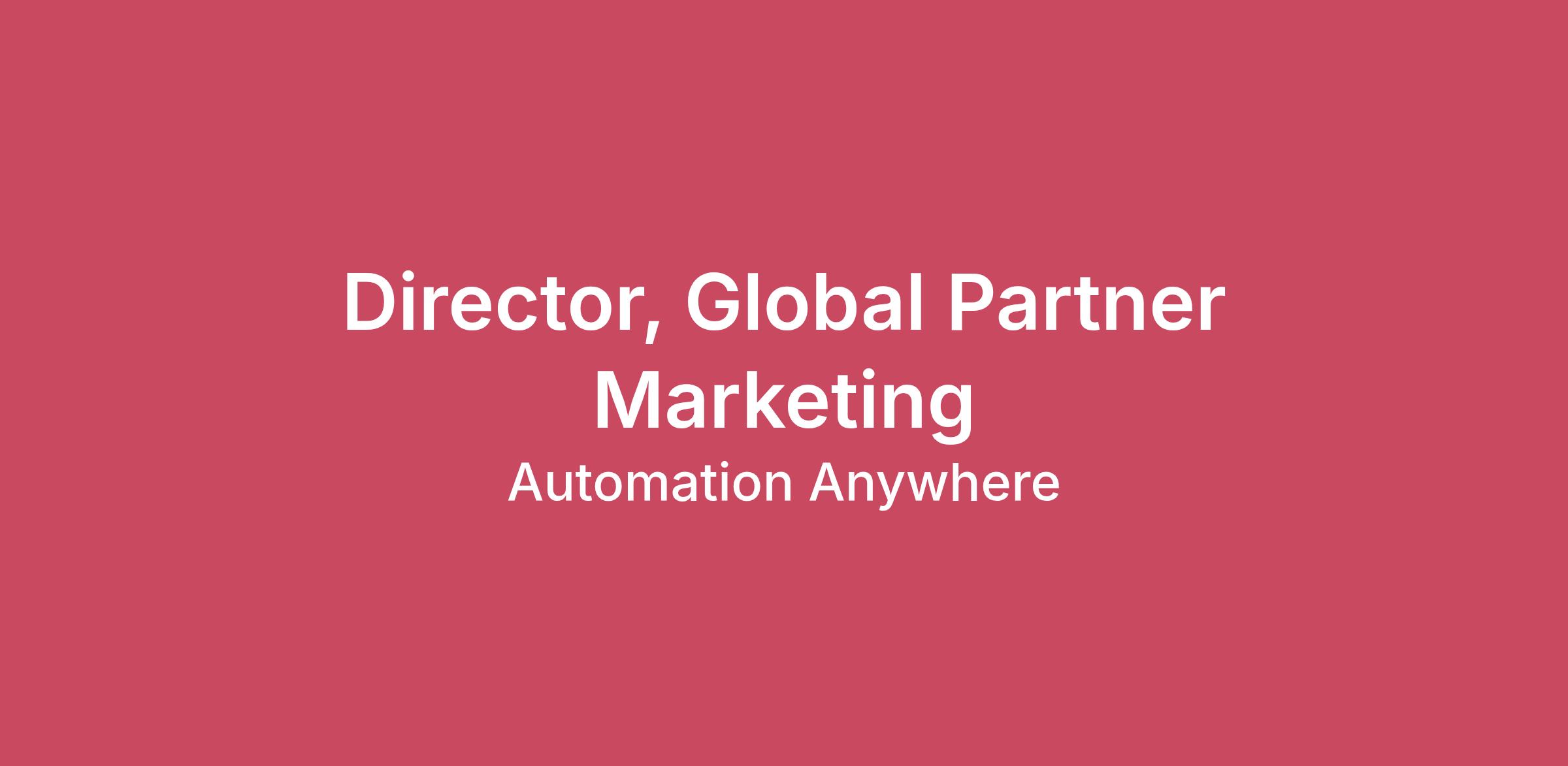 About Us:Automation Anywhere is the leader in Agentic Process Automation (APA), transforming how work gets done with AI-powered automation. Its APA system, built on the industry’s first Process Reasoning Engine (PRE) and specialized AI agents, combines process discovery, RPA, end-to-end orchestration, document processing, and analytics—all delivered with enterprise-grade security and governance. Guided by its vision to fuel the future of work, Automation Anywhere helps organizations worldwide boost productivity, accelerate growth, and unleash human potential.Our opportunity:Automation Anywhere, the leader in Agentic Process Automation (APA), is seeking a strategic and experienced Director, Global Partner Marketing to shape and scale high-impact, partner-driven marketing initiatives across our global ecosystem. This role is instrumental in amplifying joint value with strategic partners, accelerating pipeline creation, and driving meaningful go-to-market outcomes at scale.In this role, you will design and operationalize repeatable global partner marketing programs, lead co-marketing and co-sell motions with hyperscalers, GSIs, and regional alliances, and work cross-functionally with Sales, Channel, Product Marketing, Alliances, and Global Campaigns to deliver cohesive, market-leading execution.The ideal candidate brings a deep understanding of partner business models and global GTM dynamics, along with a proven ability to craft compelling joint value propositions that resonate across partner types, industries, and regions. You will play a critical role in helping Automation Anywhere and our partners tell a unified story—demonstrating how agentic automation transforms enterprise operations and delivers measurable business impact.Location: Remote role - ability to work within any U.S time zoneYou will make an impact by being responsible for:Defining and executing a global partner marketing strategy aligned to priority partner segments, including hyperscalers, GSIs, and RSIsDesigning and scaling partner marketing programs—co-brand, co-sell, and co-deliver motions—that drive joint pipeline generation across key marketsDeveloping integrated partner campaigns in collaboration with Global Campaigns, tailoring content, offers, and solution plays for partner ecosystemsCreating compelling joint value propositions, messaging, and enablement assets to support partner-led demand generationOwning strategic partner marketing plans, including quarterly business reviews, shared KPIs, and performance measurementPartnering with regional marketing teams to ensure global partner programs scale locally with relevance, consistency, and effective integration into regional plansCollaborating closely with Partner Sales, Alliances, Product Marketing, Enablement, and Revenue Operations to align priorities and deliver cohesive GTM executionIntegrating partners into account-based marketing strategies for priority and named accountsEstablishing measurement frameworks and dashboards that clearly demonstrate partner marketing influence on pipeline and revenueLeading end-to-end execution of large-scale, sponsored partner eventsManage the global partner marketing budget, ensuring efficient investment allocation and strong ROIEnsuring all partner marketing campaigns, assets, and communications align with global brand standards while enabling appropriate regional nuanceYou will be a great fit if you have:Bachelor’s degree in Marketing, Business, or a related field; advanced degree preferred10+ years of B2B marketing experience, including partner, channel, or alliance marketing3+ years of people management experience leading and developing high-performing teamsExperience working with enterprise technology partners, including GSIs, cloud hyperscalers, and ISVsStrong understanding of partner business models, including co-sell, co-market, and co-deliver motions, as well as channel economicsProven track record of building and scaling global partner programs and successfully adapting them for regional marketsDemonstrated ability to build trusted partner relationships and collaborate effectively across cross-functional and geographically distributed teamsYou excel in these key competencies: Strong understanding of enterprise sales motions and buying cycles, with the ability to align marketing initiatives to sales objectivesProven program management capabilities, including the development and execution of co-marketing programs and joint value propositionsDemonstrated excellence in orchestrating integrated campaigns and large-scale eventsExperience owning budgets and performance measurement, with a disciplined, ROI-focused approachHighly effective cross-functional collaborator with the ability to operate across global teams and culturesGlobal mindset with strong cultural awareness and adaptabilityProficiency with marketing automation and CRM platforms; Salesforce experience preferredStrong analytical skills with a data-driven approach to measuring and optimizing impactExceptional communication, presentation, and stakeholder management skillsThe base salary range for this position is $200,000 to $225,000 a year. The base salary ultimately offered is determined through a review of education, industry experience, training, knowledge, skills, abilities of the applicant in alignment with market data and other factors. This position is also eligible for discretionary bonus payments, equity and a full range of medical and other benefits.Ready to Revolutionize Work? Join Us.This is an opportunity to work with a global, passionate team pioneering technology that’s redefining the way people work, everywhere. Join us and discover the many ways that you can have an impact, achieve your potential, and go be great.Job Segment OR Key Words: SaaS, Field Marketing, Partner Marketing, Alliance, GSI, Hyperscaler, Leadership, B2B Software Solutions, Agentic Process Automation, APA, Cloud, ISV#LI-JS1#LI-REMOTEBenefits and perks you’ll appr