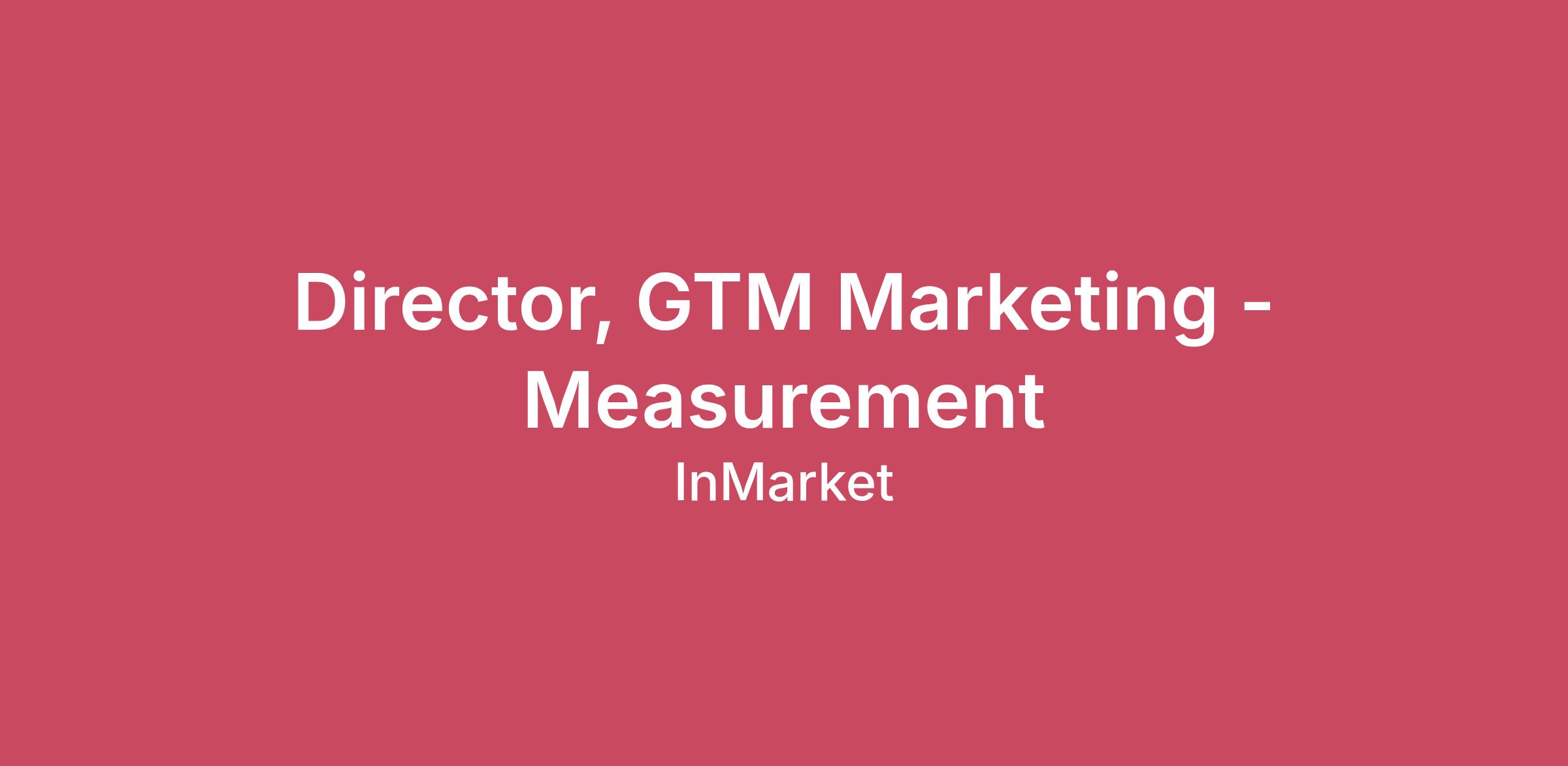 Job Title: Director, GTM Marketing - Measurement Location: Remote - US Only About InMarket Since 2010, InMarket has been the leader in 360-degree consumer intelligence and real-time activation for thousands of today’s top brands. Through InMarket's data-driven marketing platform, brands can build targeted audiences, activate media in real time, and measure success in driving return on ad spend. InMarket's proprietary Moments offering outperforms traditional mobile advertising by 6x.* Our LCI attribution platform, which won the MarTech Breakthrough Award for Best Advertising Measurement Platform, was validated by Forrester to drive an average of $40 ROAS for our clients. *Source: Wordstream US Google Display Benchmarks for Mobile Media About the Role We are seeking a Director, GTM Marketing to lead and own the end-to-end go-to-market strategy and execution for our Measurement business. This is a business-critical leadership role with full accountability for marketing’s contribution to Measurement revenue growth. The Director, GTM Marketing will partner directly with the GM of Measurement and Sales leadership to drive positioning, commercialization, pipeline generation, enablement, and narrative leadership. This leader is responsible for ensuring marketing is not reactive support, but a growth engine aligned to business outcomes. What You Will Do Own the End-to-End GTM Marketing Strategy for Measurement Develop and lead the comprehensive GTM strategy aligned to Measurement revenue goals Translate business objectives into clear quarterly marketing priorities and execution plans Own positioning, packaging, differentiation, and commercialization strategy Drive disciplined launch execution across pre-launch, launch, and in-market phases Ensure all marketing investments ladder directly to business impact Partner Deeply with the GM and Sales Leadership Serve as strategic marketing partner to the GM of Measurement Align on growth targets, market priorities, and competitive strategy Collaborate with Sales leadership to align marketing support to pipeline needs Identify gaps in seller readiness, positioning, or proof and proactively address them Participate in key business reviews and revenue discussions Lead Product Marketing and Commercialization Oversee Product Marketing for Measurement and ensure clarity of narrative and value proposition Ensure every launch includes defined readiness checkpoints, training, and adoption plans Drive message consistency across sales materials, content, PR, and demand programs Strengthen competitive positioning and objection handling across the field Orchestrate Cross-Functional Marketing Execution Align and prioritize shared marketing resources in support of Measurement growth, including: Brand & Communications Content & Partner Marketing Sales Marketing Demand Generation Digital Marketing Sales Enablement Marketing Operations Ensure Measurement priorities are clearly translated into actionable programs Drive alignment across hub-and-spoke teams in a matrix organization Drive Pipeline and Performance Accountability Own marketing pipeline contribution targets for Measurement Define and track KPIs tied to awareness, engagement, pipeline, and revenue influence Review performance regularly with the GM and Sales leadership Adjust strategy and allocation based on performance insights Elevate Market Position and Thought Leadership Define the strategic narrative for Measurement in partnership with Brand & Communications Shape research, insights, and content priorities to support key story pillars Ensure PR and thought leadership efforts reinforce business differentiation Identify opportunities to influence category conversations What Success Looks Like (First 12 Months) Clear and differentiated positioning in-market Structured, consistent launch execution across initiatives Measurable pipeline growth tied to priority offerings Strong alignment and trust with the GM and Sales leadership Increased share of voice on priority Measurement narratives Marketing viewed as a direct growth partner for the business Your Experience and Expertise: 12+ years of experience in GTM leadership, Product Marketing, or business-line marketing Proven track record owning marketing for a revenue-generating business or division Experience partnering directly with GMs and Sales leaders Strong background in measurement, ad tech, martech, SaaS, or data-driven B2B environments Demonstrated success driving pipeline growth and commercialization impact Experience operating in a matrixed organization Strong executive presence and cross-functional leadership skills Core Competencies Business-first mindset with marketing expertise Highly accountable and outcome-oriented Decisive and comfortable operating with speed Strong collaborator who can align diverse stakeholders Data-driven with a bias toward action Benefits Summary Competitive salary, stock options, flexible vacation Medical, dental and Flexible Spending Account (FSA) Company Matched 401(k) Unlimited PTO (within reason) Talented co-workers and management Agile Development Program (For continued learning/professional development) Paid Parental Leave For candidates in California, Colorado, and New York City, Illinois, Minnesota, New Jersey, Vermont, Washington and Massachusetts, the Targeted Base Salary Range for this role is $145,000 -$160,000. Actual salaries will vary depending on factors including but not limited to work experience, specialized skills and training, performance in role, business needs, and job requirements. Base salary is subject to change and may be modified in the future. Base salary is just one component of InMarket’s total rewards package that also may include bonus, equity, and benefits. Ask your recruiter for more information! At InMarket, diversity is not just a value, it’s the very essence of who we are. It’s about recognizing and celebrating the unique perspectives each of us brings, from our colleagues to the 