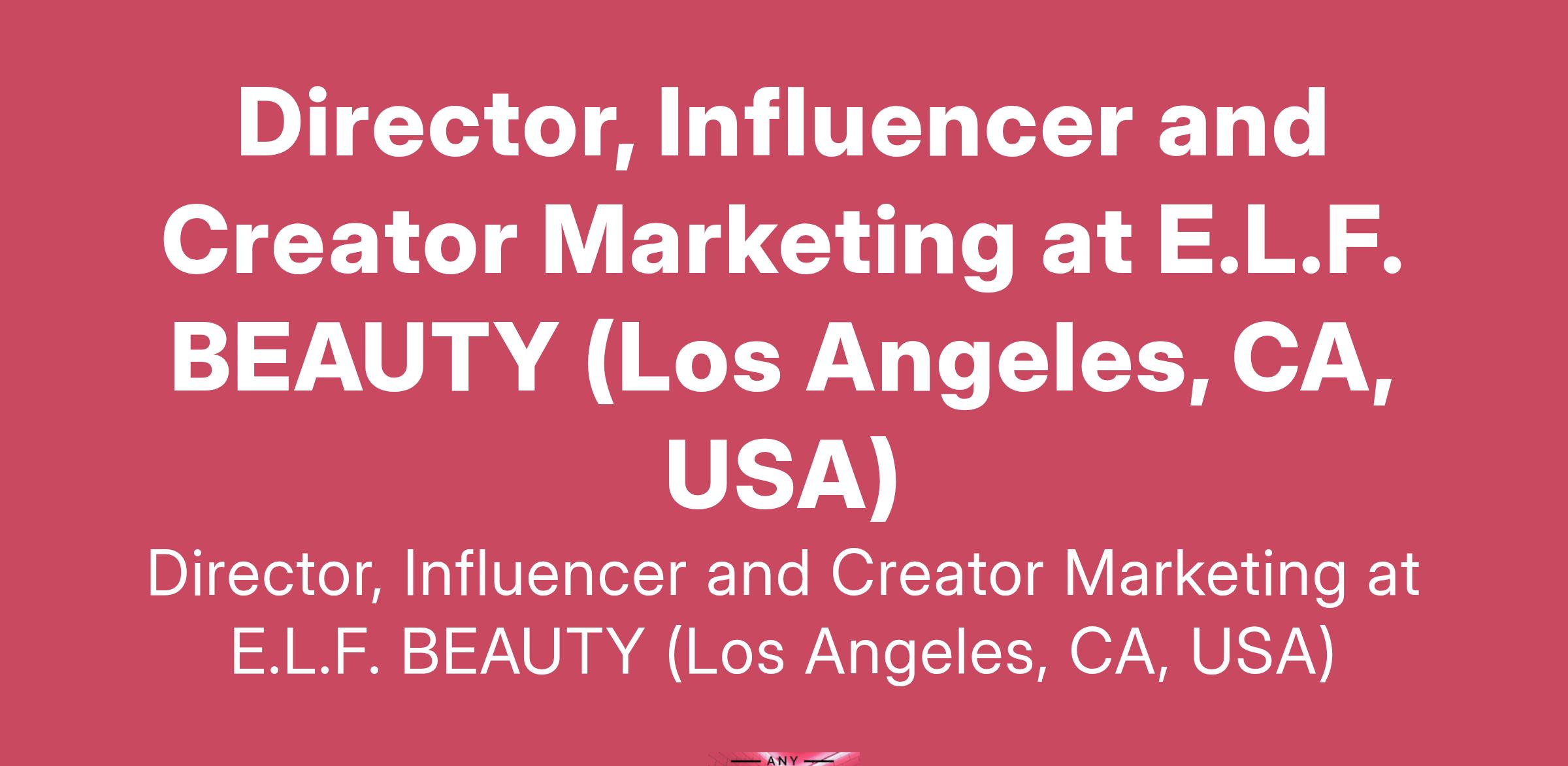 Director, Influencer and Creator Marketing at E.L.F. BEAUTY (Los Angeles, CA, USA)