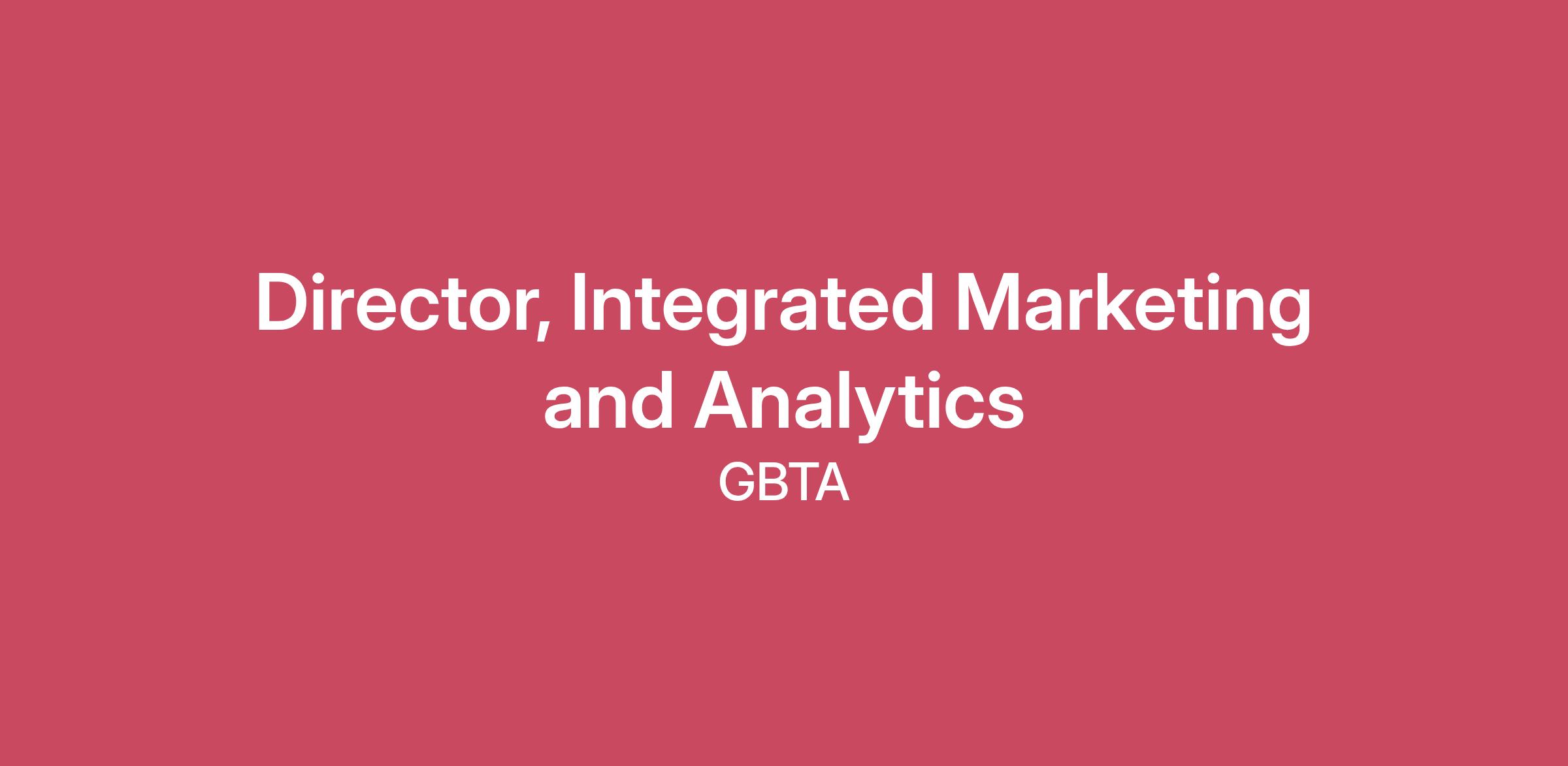 Director, Integrated Marketing and Analytics - REMOTE POSITION JOB SUMMARY The Director of Integrated Marketing and Analytics is a strategic and operational leader who ensures GBTA’s global marketing is cohesive, measurable, and revenue focused. This role integrates marketing campaign planning and analytics to drive performance and inform decisions. This role thrives on cross-team collaboration, operational efficiency, and delivering executive-ready reporting. The Director of Integrated Marketing and Analytics should be able to successfully execute and manage the following: Integrated campaigns are efficient, aligned, and globally visible. Members notice that our outbound communications to them are concise, easier to notice/action, and no longer overwhelming their inboxes. Marketing KPIs and OKRs are tracked and clearly reported to leadership. Executive-ready reporting and collaboration drive informed decisions and measurable growth. At GBTA, we put people first – we value collaboration, innovation, and adaptability along with global diversity, respect and empathy. As a member of our team, you’ll have the opportunity to grow your skills and career in an entrepreneurial environment and make a meaningful impact on the industry and professionals we serve. RESPONSIBILITIES Integrated Marketing Planning Own GBTA’s global product and event marketing calendar to align campaigns across regions and products. Manage marketing operations tools and processes to streamline marketing campaign planning and execution. Standardize campaign playbooks and align campaigns to audience segments and lifecycle stages. Support localization of campaigns to ensure global relevance. Strategic Reporting & Analytics Lead departmental OKR tracking and global campaign/revenue reporting. Own marketing analytics tools and deliver executive-ready reports and presentations showing marketing performance and business impact. Analyze marketing data to identify trends, growth opportunities, and inform strategic decisions. Other duties as assigned. REQUIREMENTS Bachelor’s degree in Marketing, Business, or related field; Masters degree preferred. 7+ years in integrated marketing, operations, or analytics, including leadership experience. Strong data analysis and reporting skills with experience presenting to executives. Highly collaborative leader with cross-functional and agency management experience. Background in trade associations, B2B, or event-driven organizations preferred. Excellent interpersonal, (oral and written) communication, time management, and organizational skills. Must have the ability to manage and track deadlines and action items, and professionally secure answers from internal and external staff on deadline items. Ability to multitask various projects while remaining focused and dedicated to high-quality output. Strong technical skills, including cloud-based systems. Must have a high level of skills in MS Office Suite – Excel, PowerPoint, and Word. PREFERRED EXPERIENCE AND SKILLS Background in trade associations, membership organizations, and/or large-scale event marketing. Knowledge of travel industry. PHYSICAL REQUIREMENTS/WORK ENVIRONMENT Remote work environment. Prolonged periods sitting/remaining stationary at a desk and working on a computer. Must be able to remain stationary and move for long periods of time, during events. Must be able to work a variety of hours in order to accommodate various meetings and events. GBTA welcomes all candidates and supports inclusivity and diversity in the workplace. TRAVEL REQUIRED Up to 10%; travel to Annual Convention and other GBTA events/meetings as needed. Applicants must be authorized to work in the US. The Global Business Travel Association (GBTA) is the world’s premier business travel and meetings trade organization headquartered in the Washington, D.C. area serving stakeholders across six continents. GBTA and its 9,000+ members represent and advocate for the $1.57 trillion global business travel and meetings industry. GBTA and the GBTA Foundation deliver world-class education, events, research, advocacy, and media to a growing global network of more than 28,000 travel professionals and 125,000 active contacts. For more information, visit www.gbta.org and www.gbtafoundation.org and follow us on LinkedIn, YouTube, Twitter and Facebook. GBTA Team Values and Culture Statement: We recognize our people are our most valued asset, and treat ourselves and each other with kindness, authenticity, and empathy. We are curious, innovative and adaptable to a changing world. We embrace our global diversity and are committed to a culture where everyone feels welcomed and respected. We deliver results by working collaboratively and believe in the power of teamwork to drive long-term change and mutual success. We are driven to create a more sustainable future for both the planet and its people, and a balanced environment where work and life can coexist and thrive. GBTA is an equal opportunity employer and all qualified applicants will receive consideration for employment without regard to race, color, religion, age, sex, national origin, disability status, genetics, protected veteran status, sexual orientation, gender identity or expression, or any other characteristic protected by federal, state or local laws.