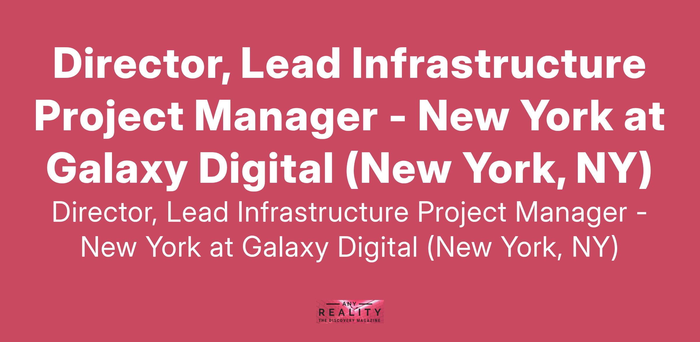 Director, Lead Infrastructure Project Manager - New York at Galaxy Digital (New York, NY)