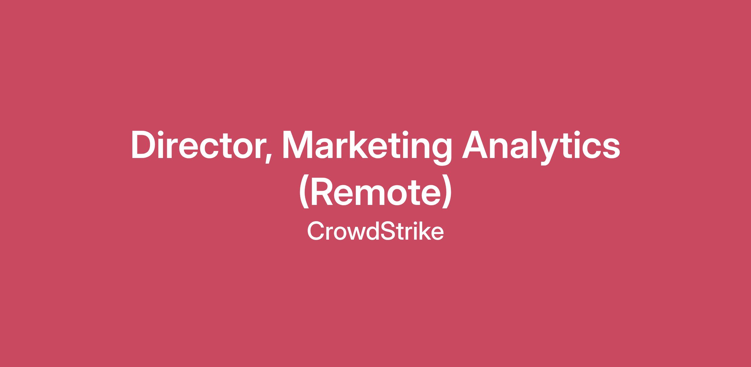 As a global leader in cybersecurity, CrowdStrike protects the people, processes and technologies that drive modern organizations. Since 2011, our mission hasn’t changed — we’re here to stop breaches, and we’ve redefined modern security with the world’s most advanced AI-native platform. Our customers span all industries, and they count on CrowdStrike to keep their businesses running, their communities safe and their lives moving forward. We’re also a mission-driven company. We cultivate a culture that gives every CrowdStriker both the flexibility and autonomy to own their careers. We’re always looking to add talented CrowdStrikers to the team who have limitless passion, a relentless focus on innovation and a fanatical commitment to our customers, our community and each other. Ready to join a mission that matters? The future of cybersecurity starts with you.About the Role:The Director of Marketing Analytics will play a key role in achieving our mission by turning CrowdStrike’s rich data into insights that accelerate pipeline, revenue, and platform adoption. You will build and manage a small marketing analytics team that partners closely with Demand Generation, Digital Marketing, Field & Partner Marketing, Product Marketing, as well as cross-functionally across GTM analytics teams to: Define how we measure success across the full go-to-market funnelProvide clear, actionable insight into where to invest and how to optimizeConnect marketing activity directly to key funnel and revenue metrics including pipeline, ARR, CAC and retention.You are comfortable going deep into the data and presenting the insights and recommendations in a clear, concise and actionable manager to all key stakeholders and senior executives.What You'll Do: Strategy & LeadershipHelp define the global marketing measurement framework from top of funnel to customer acquisition and expansion, including core KPIs, definitions, and governance. Develop and drive a multi-year analytics roadmap that supports CrowdStrike’s growth strategy, including AI-driven insights and experimentation approaches.Build, lead, and mentor a marketing analytics team; set goals, establish processes, and foster a culture of curiosity, accountability, and continuous improvement. Work collaboratively across GTM analytics teams to ensure a common set of data, definitions and measurements across the funnel. Serve as a key advisor to the CMO and marketing leadership, translating complex data into clear recommendations and trade-offs.Performance Measurement & InsightsDesign and operationalize dashboards and reporting that provide real-time visibility into marketing performance across channels, segments, regions, and products..Lead analysis of full-funnel performance (awareness, engagement, MQL, SQL, pipeline, bookings, module adoption, ARR) to identify growth opportunities and performance gaps. Develop and maintain a GTM and marketing attribution model to measure program ROI and inform budget allocation and channel mix decisions.Partner with the Demand Generation and Digital teams to run structured experiments (A/B tests, incrementality tests) and provide statistically rigorous recommendations.Revenue & ForecastingCollaborate with Sales, RevOps, Alliances and Finance on pipeline diagnostics, forecasting, and scenario modeling for marketing-sourced and influenced pipeline and ARR. Build models that link marketing inputs (spend, campaigns, programs) to outputs (pipeline, ARR, retention/expansion) at segment and product levels.Provide executive-ready insights for QBRs, board materials, and planning cycles, highlighting what’s working, what’s not, and where to invest next.Storytelling & Change ManagementTurn data into compelling narratives that influence senior stakeholders and drive action. Educate and enable the broader marketing organization on metrics, dashboards, and how to use data in planning and execution.Advocate for a data-informed culture while balancing quantitative insight with market context and customer understanding.What You'll Need: 15+ years in marketing analytics, business intelligence, data science, or related roles, with a strong focus on B2B and/or B2B SaaS businesses.Experience leading analytics teams, including hiring, coaching, and career development. Proven track record partnering across Marketing and Sales leaders to drive measurable improvements in pipeline, conversion, and ROI.Experience with a modern marketing and analytics tech stack, including Salesforce, Tableau, Marketo, Google Analytics, Adobe Analytics, Snowflake as well as the next-generation of AI-powered technologies.Strong statistical and analytical skills, including comfort with experimentation design, regression, pipeline modeling and forecasting techniques (hands-on or via close partnership with data science).Excellent communication and presentation skills; demonstrated ability to create C-level narratives and influence decisions. Bachelor’s degree in a quantitative or related field (e.g., Statistics, Mathematics, Economics, Engineering, Computer Science, Business Analytics); Advanced degree is a plus. Preferred Qualifications:Experience in cybersecurity, infrastructure software, or enterprise SaaS.Direct experience supporting complex, multi-stakeholder enterprise sales cycles and performance marketing velocity related metrics.Familiarity with AI/ML-driven marketing use cases (propensity models, next-best-action, churn/upsell modeling).Experience working in a high-growth, global organization with distributed teams.Key Competencies:Strategic thinker, operator, and builder – can set the vision and then roll up sleeves to execute. Business-first mindset and intellectual curiosity– obsessed with understanding how marketing drives revenue, not just generating reports.Cross-functional collaboration – skilled at aligning cross-functional stakeholders around shared metrics and insights.Partial to action – comfortable in a fast-paced environment 