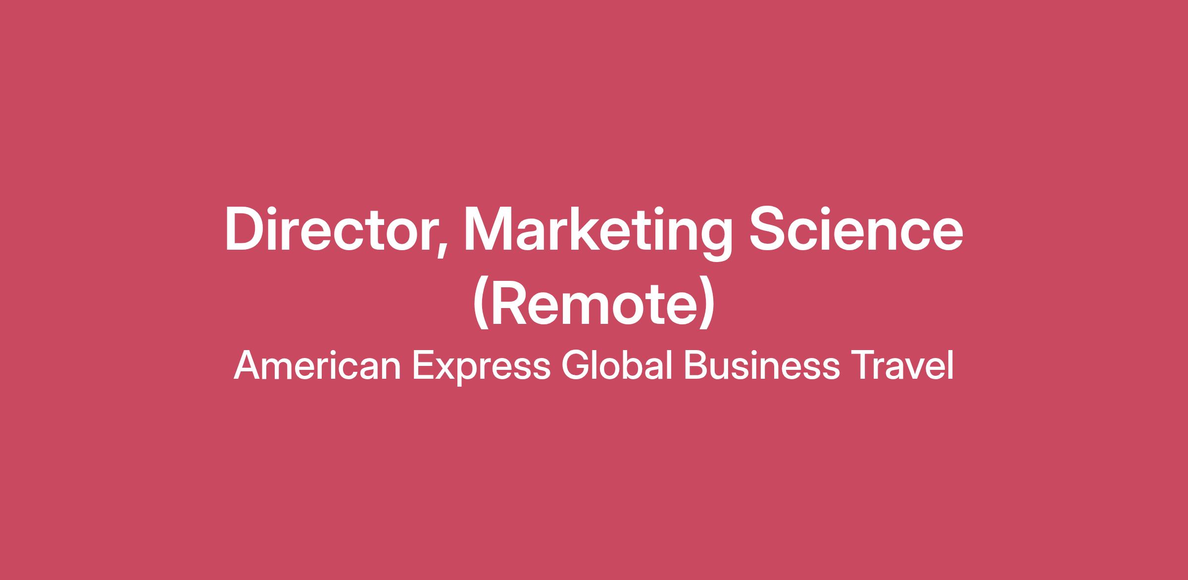 Amex GBT is a place where colleagues find inspiration in travel as a force for good and – through their work – can make an impact on our industry. We’re here to help our colleagues achieve success and offer an inclusive and collaborative culture where your voice is valued.The Director of GTM Analytics is a strategic, high-visibility leader responsible for driving data-informed decision-making across Amex GBT’s global growth engine. This role oversees insights, performance analytics, forecasting, and optimization across Marketing, Sales, and Client Management motions. You will partner closely with leaders in Commercial, Marketing, Revenue Management, Product, Decision Analytics, and Finance to build an integrated view of GTM effectiveness and accelerate revenue growth.This role requires a blend of commercial acuity, marketing science expertise, and deep analytical leadership. It is ideal for someone who can zoom out to set strategy and zoom in to challenge assumptions, interrogate data, and operationalize insights.What You'll Do:1. GTM Performance Management & InsightsOwn the end-to-end measurement framework for Amex GBT’s GTM engine, spanning demand generation, pipeline progression, sales productivity, client adoption, and retentionPartner with Marketing, Sales, and Client Management teams to assess program impact and optimize channel mix, targeting, segmentation, and investment decisionsLead monthly and quarterly business reviews with actionable insights, trend analysis, and executive-ready narratives2. Forecasting, Planning & Target SettingBuild and continuously refine revenue-adjacent forecasting models aligned to marketing contribution, sales motions, and customer expansionPartner with Finance and Revenue Management on budget planning, scenario modeling, and goal settingIdentify GTM-specific drivers of performance variance and provide recommendations to close gaps3. Analytics Strategy & RoadmapDevelop a cohesive analytics roadmap covering attribution, experimentation, segmentation, predictive scoring, funnel intelligence, and customer value modelingDefine data requirements and partner with Data Engineering and Decision Analytics to improve data accessibility, quality, and structureChampion a culture of measurable impact, experimentation, and evidence-based decision-making4. Audience Strategy, Targeting & Market InsightsDefine and continuously refine audience strategy, including addressable opportunity sizing, ICP development, and high-value segment identification.Partner with stakeholders across Marketing, Commercial and Decision Analytics to translate segmentation and behavioral insights into actionable targeting strategies across the full bowtie funnel.Identify growth opportunities by analyzing engagement patterns, buying committees, account behaviors, and customer lifecycle signals to inform channel allocation, campaign design and sales motions.Build an integrated view of prospect intent and customer value indicators to ensure consistent, data-drive activation, personalization, and prioritization across GTM teams.5. Cross-Functional Leadership & CollaborationServe as the analytical “center of gravity” for GTM decisions across CommercialTranslate complex analytics into clear guidance for executives and ops teamsPartner with MarTech, Digital, and Data Science to operationalize analytical outputs into automated workflows (e.g., scoring models, dashboards, triggers)6. Team Leadership & DevelopmentLead and grow a team of analysts and data stewards across performance analytics, forecasting, and insightsSet analytical standards, including methodologies, governance, and storytelling best practicesFoster a high-performance, collaborative, and inclusive team cultureWhat We're Looking For:10+ years in analytics roles spanning Marketing, Sales Ops, Revenue Operations, or Business IntelligenceStrong understanding of GTM concepts: attribution, funnel performance, ROI modeling, segmentation, lifecycle analytics, pipeline and forecastingExperience in travel, SaaS, or subscription-based business models highly preferredPeople leadership within a global environment requiredProven ability to translate analytics into executive-level strategic recommendationsExperience leading analytics functions in a complex global B2B environmentHigh comfort working with large datasets, BI tools (Tableau, Power BI, Looker), and CRM/Marketing Ops systems (Salesforce, Marketo, HubSpot or similar)Exceptional communication, storytelling, and stakeholder management skillsFamiliarity with predictive modeling, machine learning concepts, and experimentation designBackground in consulting or a senior analytics role supporting C-suite stakeholders LocationUnited States The US national base salary range for this position is from $110,600.00 - $205,400.00The national range provided includes the base salary that GBT expects to pay for the role. Actual base salary will be based on factors including the scope and complexity of the role and the successful candidate’s relevant experience, skills, knowledge, and work location.In addition to base salary, the anticipated range of which is posted above, this role is eligible for a discretionary annual bonus, which rewards participants based on company and individual performance and is also eligible for awards under our Equity Incentive Plan.For information about our comprehensive US benefits programs and eligibility, please review our Benefits-at-a-Glance document.Benefits at a glanceThe #TeamGBT ExperienceWork and life: Find your happy medium at Amex GBT.Flexible benefits are tailored to each country and start the day you do. These include health and welfare insurance plans, retirement programs, parental leave, adoption assistance, and wellbeing resources to support you and your immediate family.Travel perks: get a choice of deals each week from major travel providers on everything from flights to hotels to cruises and car rentals.Develop the skills you want when the tim