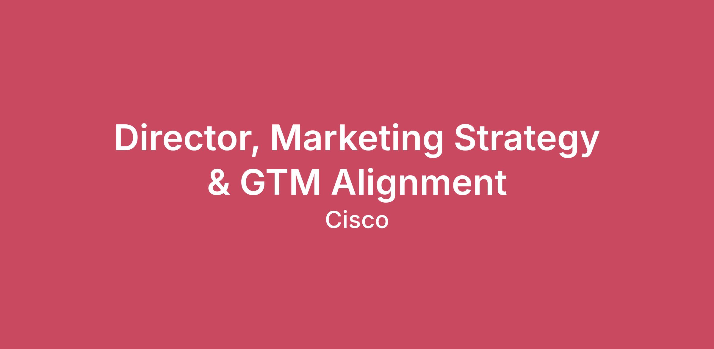 The application window is expected to close on: 03/26/2026Job posting may be removed earlier if the position is filled or if a sufficient number of applications are received.Remote United StatesThis role will lead the strategic development and execution of cross-functional go-to-market (GTM) operating models, ensuring seamless alignment across the Cisco Marketing organization. As a senior leader, this Director will serve as a critical connective force — building and nurturing executive-level partnerships, fostering a culture of collaboration and shared accountability, and driving business outcomes through effective stakeholder engagement, governance, and coordinated execution across operating models. This role requires a leader who can operate with influence and authority in a highly matrixed environment, balancing strategic vision with operational rigor.Your ImpactCross-Functional Team Alignment & Strategic CollaborationChampion and lead cross-functional collaboration at scale to simplify marketing processes, eliminate silos, and create consistent, unified customer experiences across the organization.Define and drive strategic alignment across operating models and workflows spanning Marketing, Sales, Portfolio Strategy, Product Marketing, CX, and other key functions — ensuring cohesive GTM strategies, flawless execution, and measurable business impact.Architect and continuously optimize governance frameworks, communication rhythms, and feedback mechanisms that enable transparent, efficient collaboration and knowledge sharing across global teams.Lead regular cross-functional executive-level meetings, workshops, and planning sessions to align priorities, resources, KPIs, and investment decisions — driving shared ownership of outcomes.Identify and resolve cross-functional dependencies, risks, and misalignments proactively, acting as a trusted orchestrator across senior leadership.Stakeholder Nurture & Executive Relationship ManagementBuild and sustain deep, trust-based relationships with senior leaders, executives, and key stakeholders across the business — serving as a strategic advisor and partner in driving GTM excellence.Serve as the central point of accountability for stakeholder engagement, providing clarity on roles, responsibilities, expectations, and decision rights across cross-functional initiatives.Proactively engage and influence stakeholders to gather input, surface concerns, broker alignment, and ensure organizational priorities are consistently connected to business goals.Develop and implement stakeholder communication strategies that ensure visibility, transparency, and sustained executive buy-in across all GTM alignment initiatives.Navigate complex organizational dynamics with diplomacy and influence — driving alignment without direct authority across diverse, senior-level teams.Minimum Qualifications10+ years of progressive marketing experience in operations, strategy, program management, or consulting — with a strong preference for experience operating in global, matrixed enterprises.Proven track record of leading cross-functional collaboration and stakeholder management at the executive level, with demonstrated ability to drive alignment across multiple business units.Exceptional organizational, time-management, and prioritization skills; adept at managing multiple competing deadlines and complex workstreams without compromising quality or strategic focus.Strong executive presence with excellent written and verbal communications; demonstrated ability to influence without authority and drive alignment across senior and C-level leadersPreferred QualificationsExperience developing and governing GTM operating models or cross-functional frameworks within large technology organizations.Familiarity with Cisco's marketing ecosystem, portfolio strategy, and customer lifecycle engagement.Experience with change management methodologies and driving organizational transformation.MBA or advanced degree in Marketing, Business Strategy, or relateAbility to support both Pacific and Central time zones.Why Cisco? At Cisco, we’re revolutionizing how data and infrastructure connect and protect organizations in the AI era – and beyond. We’ve been innovating fearlessly for 40 years to create solutions that power how humans and technology work together across the physical and digital worlds. These solutions provide customers with unparalleled security, visibility, and insights across the entire digital footprint.Fueled by the depth and breadth of our technology, we experiment and create meaningful solutions. Add to that our worldwide network of doers and experts, and you’ll see that the opportunities to grow and build are limitless. We work as a team, collaborating with empathy to make really big things happen on a global scale. Because our solutions are everywhere, our impact is everywhere. We are Cisco, and our power starts with you. Message to applicants applying to work in the U.S. and/or Canada:The starting salary range posted for this position is $230,000.00 to $289,800.00 and reflects the projected salary range for new hires in this position in U.S. and/or Canada locations, not including incentive compensation*, equity, or benefits.Individual pay is determined by the candidate's hiring location, market conditions, job-related skillset, experience, qualifications, education, certifications, and/or training. The full salary range for certain locations is listed below. For locations not listed below, the recruiter can share more details about compensation for the role in your location during the hiring process.U.S. employees are offered benefits, subject to Cisco’s plan eligibility rules, which include medical, dental and vision insurance, a 401(k) plan with a Cisco matching contribution, paid parental leave, short and long-term disability coverage, and basic life insurance. Please see the Cisco careers site to discover more benefits and perks. Employees may be eligi