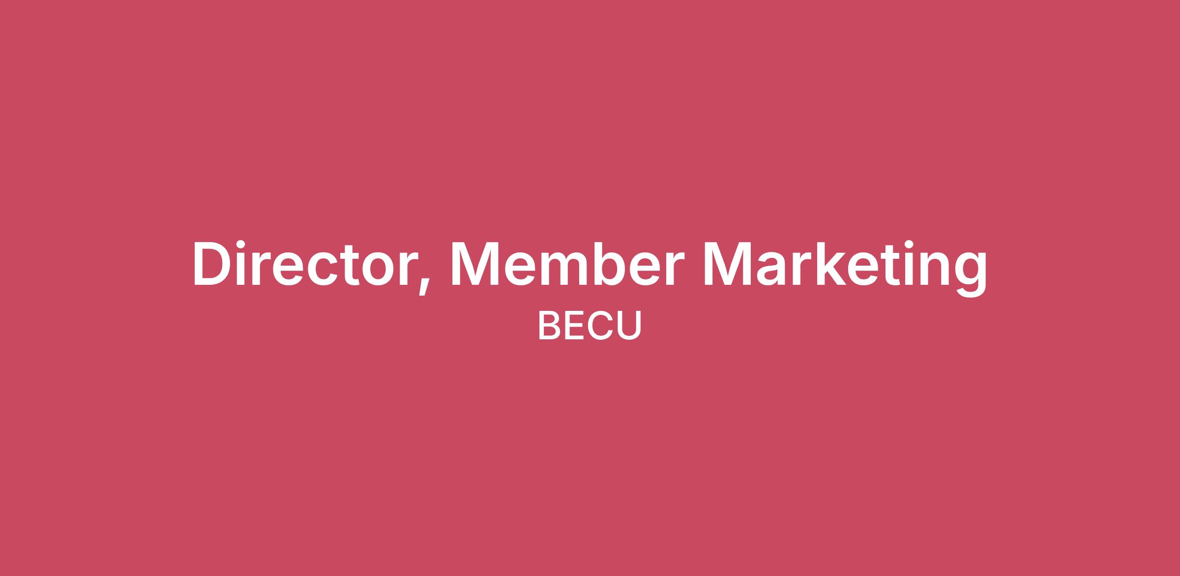 Is it surprising to hear that a financial institution of 1.5 million members and over $30 billion in managed assets say that success comes from focusing on people, not profits?Our “people helping people” philosophy has guided us since 1935, driving our deep commitment to serving our members, communities, and each other. When you join our team, you become part of a purpose-driven organization where your work makes a real difference.While we’re proud of our history, we’re even more excited about our future. With business and technology transformation on the horizon, there’s never been a better time to be part of BECU.PAY RANGEThe Target Pay Range for this position is $173,500.00-$211,900.00 annually. The full Pay Range is $131,800.00 - $244,400.00 annually. At BECU, compensation decisions are determined using factors such as relevant job-related skills, experience, and education or training. Should an offer for employment be made, we will consider individual qualifications. In addition to your salary, compensation incentives are available for the hired applicant. Incentives are performance based and targets vary by role.BENEFITS – because people helping people starts with supporting you401(k) Company Match (up to 3%)4% annual contribution to your 401(k) by BECUMedical, Dental and Vision (family contributions as well)PTO Program + Exchange ProgramTuition Reimbursement ProgramBECU Cares volunteer time off + donation matchIMPACT YOU’LL MAKE:As Director of Member Marketing, you’ll shape strategies that deepen member relationships and drive long-term value. Your leadership will influence personalized engagement, cross-sell initiatives, and loyalty programs that enhance financial well-being for our members. You’ll partner across teams to create seamless experiences and ensure every campaign reflects BECU’s member-first philosophy. This is your opportunity to lead innovation and make a measurable impact on how members connect with us.WHAT YOU’LL DO:Lead and Inspire: Coach, mentor, and develop a high-performing team, fostering a culture of trust, accountability, and innovation.Drive Strategy: Design and execute cross-sell and engagement programs that increase product adoption and deepen member relationships.Shape Lifecycle Journeys: Build marketing journeys that support cross-sell, utilization, and retention across key member segments.Leverage Data: Apply your analytical expertise to transform segmentation, predictive modeling, and machine learning into personalized member experiences that drive meaningful engagement.Collaborate Across Teams: Work closely with product, digital, and channel partners to deliver integrated campaigns across owned and paid channels.Champion Financial Health: Oversee initiatives that educate and empower members to achieve long-term financial well-being.Optimize Performance: Define KPIs, monitor results, and use insights to refine strategies and maximize impact.Channel Orchestration: Develop the strategy and execution in owned channels.Manage Resources: Lead annual planning and budgeting, ensuring efficient allocation aligned with strategic priorities.Represent and Influence: Serve as a key voice for Member Marketing in enterprise initiatives and external events.This isn’t just about ticking off tasks on a list. It's about making a significant, positive change in BECU’s journey, where your contributions are valued, and your growth is continually fostered.WHAT YOU’LL GAIN:Opportunity to shape the future of member product conversion, engagement and loyalty at a leading financial institution.The ability to make a measurable impact on member financial health and organizational growth.A supportive environment that values diversity, inclusion, and continuous learning.QUALIFICATIONS:Minimum Qualifications:Typically requires a Bachelor’s degree in Marketing, Business Administration, Communications, or related field.Typically requires a minimum 8 years of experience in marketing strategy, lifecycle marketing, or customer engagement roles.Typically requires a minimum of 5 years of leadership experience with a proven track record of building and managing high-performing teams.Desired Qualifications:Advanced degree preferred.Related experience in banking/financial services.Experience leading direct mail marketing campaigns.Analytical skills with experience using data to drive decisions.Understanding of member lifecycle, segmentation, and cross-sell strategies in financial services or similar industries.Communication, collaboration, and project management skills.Experience with marketing automation platforms and CRM systems.JOIN THE JOURNEYReady to make an indelible impact? Eager to be a part of a collaborative and innovative team where your ideas and contributions don’t just fill a role, but fuel the growth and success of BECU? This is more than a job – it’s a chance to elevate your career, skills, and future, all while contributing to the robust technological landscape of BECU. EEO Statement:BECU is an equal opportunity employer. All qualified applicants will receive consideration for employment without regard to race, color, religion, sex, national origin, veteran status, disability, sexual orientation, gender identity, or any other protected status.