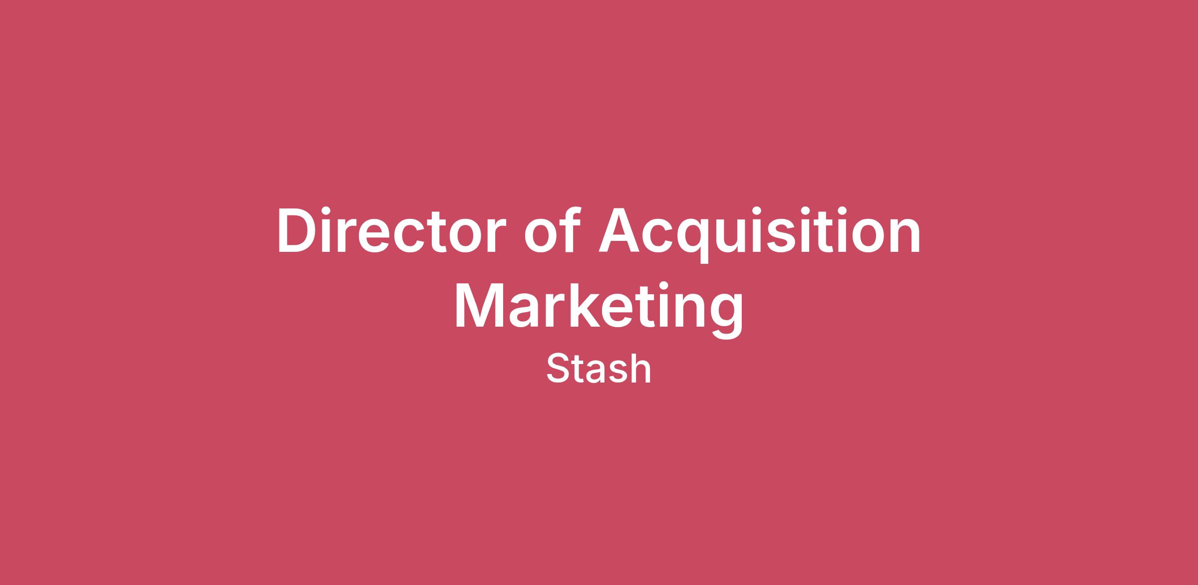 Want to help everyday Americans invest and build wealth? Financial inequality is increasing, and too many people are getting left behind. At Stash, we are passionate about democratizing wealth creation through education, advice, and products that help customers achieve greater financial freedom. We’re looking for a Director of Acquisition Marketing to lead the next chapter of Stash’s customer growth. This leader will own the strategy, performance, and optimization of our acquisition engine, defining how millions of potential customers discover Stash and begin their investing journey. You’ll lead performance marketing across channels including paid social, search, affiliate, mobile app platforms, and offline media such as TV and podcasts, while building a disciplined experimentation engine that improves CAC and drives sustainable depositor growth. This is both a strategic and hands-on leadership role. You’ll set the direction for growth, partner with senior leadership on acquisition strategy, and work closely with cross-functional teams across Product, Creative, Data, and Martech to turn insights into measurable impact. You’ll report to the VP of Growth, manage internal team members and agency partners, and play a critical role in shaping how Stash reaches and converts the next generation of investors. What you'll do: Own and scale customer acquisition Lead Stash’s end-to-end acquisition strategy across paid social, search, affiliate, app install campaigns, offline media (TV, audio, podcasts), and emerging channels Optimize channel mix and performance to drive efficient CAC and long-term customer value Identify new growth opportunities across emerging channels and platforms Lead mobile-first growth Drive mobile app acquisition strategy, including app install campaigns and app store optimization Improve conversion and activation across the mobile acquisition funnel Partner closely with Product and lifecycle teams to optimize onboarding and early customer engagement Build a high-performance experimentation engine Establish scalable testing frameworks across media, creative, and messaging Run disciplined experiments across targeting, bidding, and creative formats Continuously iterate to improve performance and unlock new growth levers Strengthen measurement and attribution Partner with Data and Martech to evolve attribution, incrementality testing, and media mix modeling Ensure measurement frameworks enable smarter budget allocation and clear performance accountability Translate insights into actionable strategy for leadership Apply AI to modern growth marketing Identify and implement AI-driven tools and workflows that accelerate campaign development, reporting, and optimization Leverage emerging technologies for creative generation, analytics automation, and marketing operations Lead teams and agency partnerships Manage internal growth team members and collaborate closely with external agency partners across multiple channels Develop the roadmap to build and scale more in-house acquisition capabilities over time Foster a culture of accountability, experimentation, and measurable outcomes What we're looking for: 8+ years of experience in performance marketing or growth marketing Proven experience owning multi-channel acquisition strategy (paid social, search, affiliate, mobile, and offline media) Strong expertise in mobile app marketing, including app install campaigns and performance optimization Demonstrated experience improving CAC efficiency and acquisition scalability Experience leading cross-functional growth initiatives with Product, Data, and Creative teams Experience managing agency relationships and internal performance marketing teams Gold Stars AI and modern marketing Actively leveraging AI tools in day-to-day marketing workflows Experience using AI for campaign optimization, reporting, creative development, or automation Curiosity and experimentation with emerging marketing technologies #LI-HYBRID Our Commitment to Diversity, Equity, and Inclusion We proudly celebrate the unique qualities that make you you, 365 days a year, and not just because it’s the right thing to do or good for business. We embed the principles and practices of diversity, equity, and inclusion (DEI) into all that we do to prioritize people, a Stash core value, and to ensure Stashers of all backgrounds and experiences can be their authentic selves. We are also proud to be the first and only venture-backed fintech to join the CEO Action for Diversity & Inclusion™, and as an Equal Opportunity Employer, Stash is committed to building an inclusive environment for people of all backgrounds. If you require any reasonable accommodations to make your application process more accessible, please reach out to recruiting@Stash.com. Helping You Invest in Yourself Comprehensive total rewards package, comprising compensation (salary and equity) and health care benefits Complimentary subscription to Stash+ account Remote-first work policy – Live and work where you feel the most productive, whether that is in your home, in an office. Flexible PTO Work-from-home equipment stipends; home internet subsidy Paid Parental Leave (offerings for birth giving and non-birth giving parents) Primary & Secondary Enhanced health and wellness benefits through One Medical, Gympass, and Maven Health External Recognition for Stash Benzinga’s 2023 Best Brokerage for Beginners and Best Robo-Advisor Awards Qorus-Accenture’s 2023 Banking Innovation Awards USA Today and Statista’s 2023 Top 500 Best Financial Advisory Firms Comparably's Best Company Awards: Best Places to Work, Best Company Outlook, and Best Engineering Team for Diversity, Women, Culture, and more! (2023) Fintech Breakthrough Award: Best Personal Finance App (2023) BuiltIn’s Best Places to Work (2022, 2021, 2020, 2019) Forbes Fintech 50 (2021, 2020, 2019) Best Digital Bank, Finovate Awards (2020) Tearsheet Challenge Awards, Best Banking Card Product - Stock