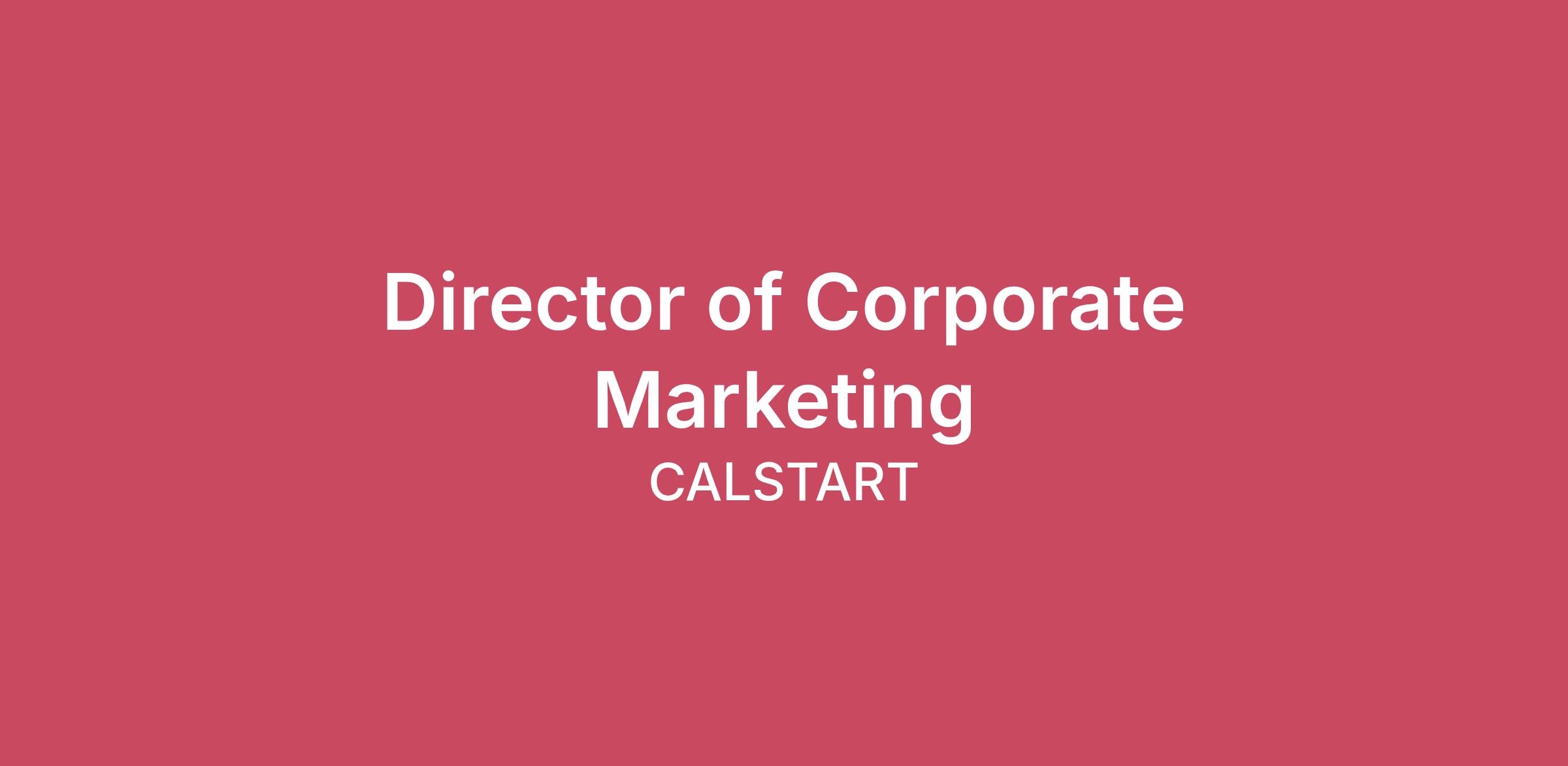 Please be aware of recruiting scams! All legitimate communication from our recruitment team will come from an official calstart.org email address via email, we will not text you about a role you have not applied to or shown interest in. We will not perform any interviews via text or Zoom chat.CALSTART does not ask for any fees or personal information such as social security numbers or bank details during the recruitment process.About Us:CALSTART is a mission-driven industry organization focused on transportation decarbonization and clean air for all.For over 30 years, it’s been CALSTART’s mission to develop, assess, and implement large-scale, zero-emission transportation solutions to mitigate climate change and support economic growth. CALSTART works with businesses, organizations, governments, and communities to create real-life impact toward clean air and equitable access to clean transportation for all. CALSTART provides scientific, technical and policy support for regulatory development and clean technology and infrastructure acceleration. About the Role: We are seeking a strategic, hands-on Director of Corporate Marketing who can shape and tell our story with impact, translating complex concepts into clear value propositions for diverse audiences. The ideal candidate will have strong messaging and product marketing experience, experience leading agencies and internal teams, and a solid understanding of the electric vehicle space and fleet applications. In this role, you will own CALSTART's external brand marketing narrative, ensuring consistent, differentiated messaging across all channels, while leading development of value propositions, audience personas, and positioning that resonate with executives, fleets, policymakers, vendors, and partners. You will direct and coordinate integrated marketing programs spanning content strategy, demand generation, digital, events, PR, and brand management, and collaborate with senior leadership to translate complex technical concepts into clear, executive-ready communications. Success in this role requires the ability to manage and influence external agencies and internal cross-functional teams while operating effectively with limited staff, all while ensuring consistency with CALSTART's mission, impact metrics, and policy and advocacy initiatives. \nWhat You'll Do: Messaging and Positioning: Develop and maintain clear, differentiated messaging for CALSTART's brand, programs, and solutions. Create compelling value propositions for multiple audience segments (fleets, OEMs/technology providers, policymakers, funders, researchers, and media). Translate complex technical and policy concepts into concise, accessible language suitable for executives and broad audiences. Product and Solutions Marketing: Lead corporate marketing efforts, including brand features and potential brand relaunch effort featuring storytelling, competitive analysis, and market requirements. Collaborate with program leaders to define go-to-market plans for key initiatives and partnerships that enhance the CALSTART brand. Audience Research and Personas: Develop and continuously refine audience personas, mapping user journeys across digital, events, and PR channels. Use qualitative and quantitative insights to inform messaging and channel strategy. Website and Content Strategic Collaboration: Collaborate with web, content, initiatives, and policy teams to develop messaging architecture that maximizes brand impact and storytelling. Partner with the Head of Web Marketing to showcase brand value, solutions, and outcomes, ensuring clear differentiation and compelling product and solution storytelling. Brand and Corporate Communications: Maintain brand standards across all touchpoints; oversee external communications, press materials, executive briefs, and speaking roles. Partner with PR to secure media coverage and thought leadership opportunities for CALSTART's leadership and programs. Agency and Vendor Management: Participate in selecting, managing, and briefing marketing agencies and consultants; ensure deliverables meet quality, scope, and budget requirements. Build internal processes to track progress, approvals, and outcomes; maintain an efficient, collaborative operating rhythm. Measurement and Governance: Define and track brand marketing metrics, dashboards, and reporting; tie marketing results to organizational outcomes and policy impact. Ensure compliance with branding, data privacy, and accessibility standards. What You'll Bring to the Table: Bachelor's degree required; MBA or master's degree in marketing, communications, or a related field a plus. 12 to 15+ years in marketing leadership roles with strong emphasis on messaging, product/solutions marketing, and storytelling. Experience in B2B, B2B2C, or mission-driven organizations is a plus. Working knowledge of the electric vehicle space is required. Familiarity with the fleet industry is a plus. Exceptional written and verbal communication; ability to translate complex concepts into clear, executive-ready language Proven ability to develop and manage brand messaging, value propositions, and multiple audience personas Strong project management and process orientation \n$117,260 - $140,712 a yearCALSTART values transparency and strives to provide as much information regarding compensation as possible. The salary range for this role is $117,260 - $140,712. We determine pay based on several factors, including but not limited to job-related skills, qualifications, experience, education, internal equity and other factors relevant to the job. \nWe understand that not everyone will match the above qualifications 100%. If your background isn't perfectly aligned but you feel you would be a great addition to the team, we'd love to hear from you.We're a tight-knit team of world-class innovators, business minds, and change agents who believe passionately in our mission and put our team ahead of self. We are committed to the cont