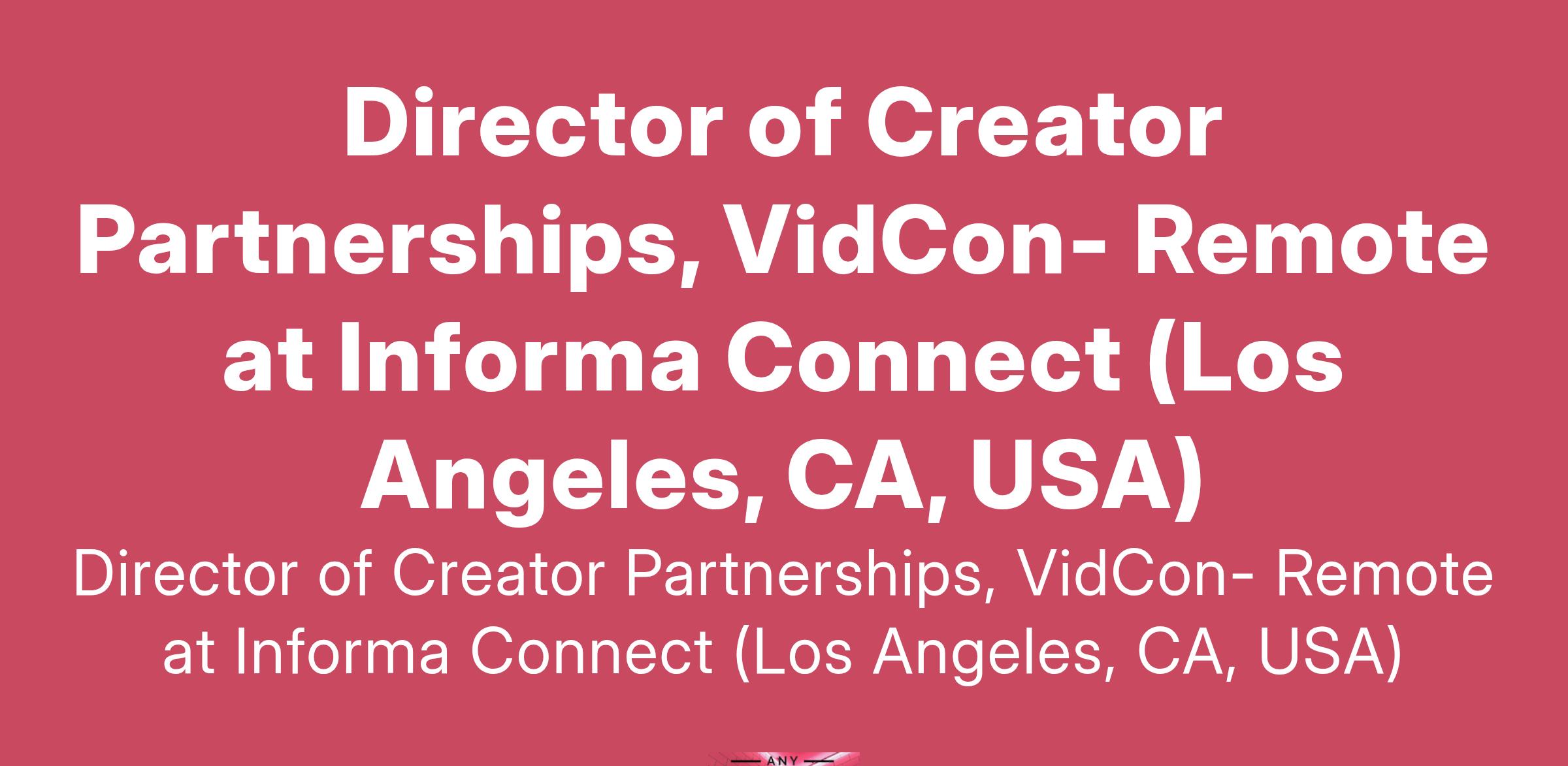 Director of Creator Partnerships, VidCon- Remote at Informa Connect (Los Angeles, CA, USA)