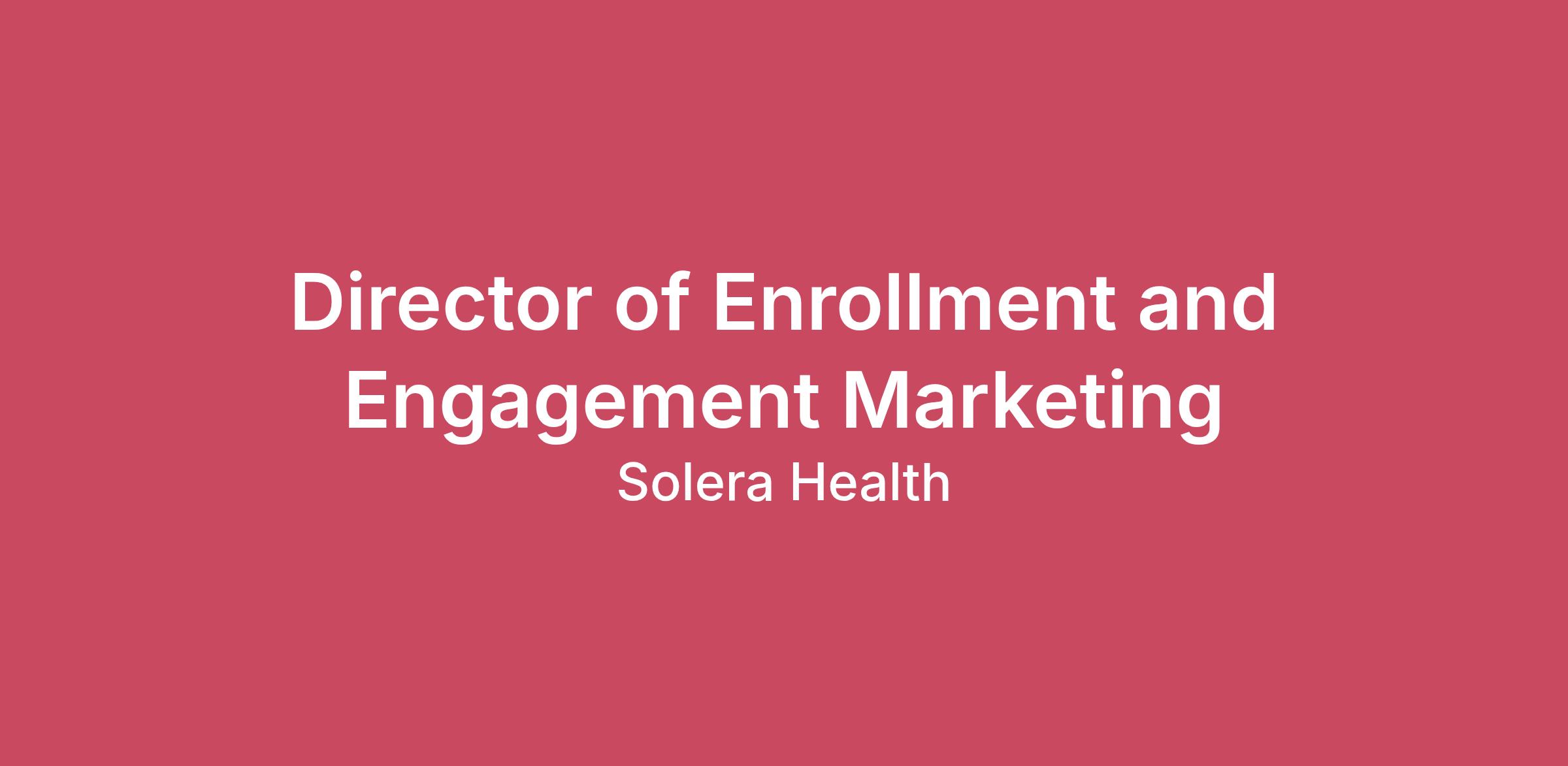 About Us At Solera Health, we’re on a mission to change lives by guiding people seamlessly to better health solutions. We empower health plans and employers with tools to manage providers and outcomes across chronic conditions. Our innovative platform curates a marketplace of digital and community-based solutions, strategically matching individuals to their best-fit care while driving successful health outcomes. About the Role We’re seeking a Director of Enrollment and Engagement Marketing to lead strategy and performance across Solera’s health plan and employer client portfolio. This role is responsible for driving measurable enrollment into chronic condition and wellness programs through data-driven, multi-channel campaigns. You’ll operate at the intersection of consumer marketing, client partnership, and analytics—owning end-to-end engagement strategy while serving as a trusted advisor to clients. This is a high-impact role for a marketer who thrives in complex, multi-stakeholder environments and is motivated by delivering measurable outcomes at scale. What You’ll Do Engagement Strategy & Client Partnership Design and optimize member engagement strategies across Solera’s client portfolio Serve as a strategic advisor to clients, shaping enrollment strategy and sharing performance insights Translate client goals, member populations, and program offerings into targeted marketing plans Present strategies and results to senior stakeholders; build trust and influence decision-making Campaign Execution & Optimization Lead end-to-end campaign strategy across email, SMS, direct mail, and phone channels Partner with Marketing Operations to execute campaigns with high quality and compliance Own enrollment forecasting and performance metrics (conversion, cost-per-enrollment, ROI) Drive continuous testing across messaging, targeting, and channel mix to improve performance Data & Insights Define KPIs and translate campaign data into actionable insights Apply segmentation and behavioral insights to improve targeting and engagement Identify trends and optimization opportunities; foster a test-and-learn culture What You’ll Bring 8–12 years of experience in B2C or B2B2C marketing, with deep expertise in multi-channel campaign strategy Proven success driving measurable acquisition or enrollment outcomes Strong experience with email, SMS, and direct mail Exceptional client-facing skills; able to influence health plan or employer stakeholders Highly analytical; comfortable owning performance metrics and translating data into action Experience operating in complex, multi-client environments with regulatory constraints Healthcare experience preferred; familiarity with HIPAA/TCPA a plus Travel This is a remote position based in the U.S. Occasional domestic travel required for client meetings and team events (up to 10%) What We Offer Competitive salary, bonus and equity opportunity Comprehensive medical, dental, and vision coverage starting Day One Flexible time off beyond standard company holidays 401(k) with company match and financial wellness resources Generous parental leave and adoption assistance Remote-first work culture with team events and community building Phone stipend and wellness perks (Fitbit, fitness/mental health app access) Disclaimer: The information contained herein is not intended to be an all-inclusive list of the duties and responsibilities of the job, nor are they intended to be an all-inclusive list of the skills and abilities required to do the job. Management may, at its discretion, assign or reassign duties and responsibilities to this job at any time. Solera Health provides equal employment opportunities (EEO) to all employees and applicants for employment without regard to race, color, religion, sex, national origin, age, disability, or genetics. In addition to federal law requirements, Solera Health complies with applicable state and local laws governing nondiscrimination in employment in every location in which the company has facilities. This policy applies to all terms and conditions of employment, including recruiting, hiring, placement, promotion, termination, layoff, recall, transfer, leaves of absence, compensation, and training.