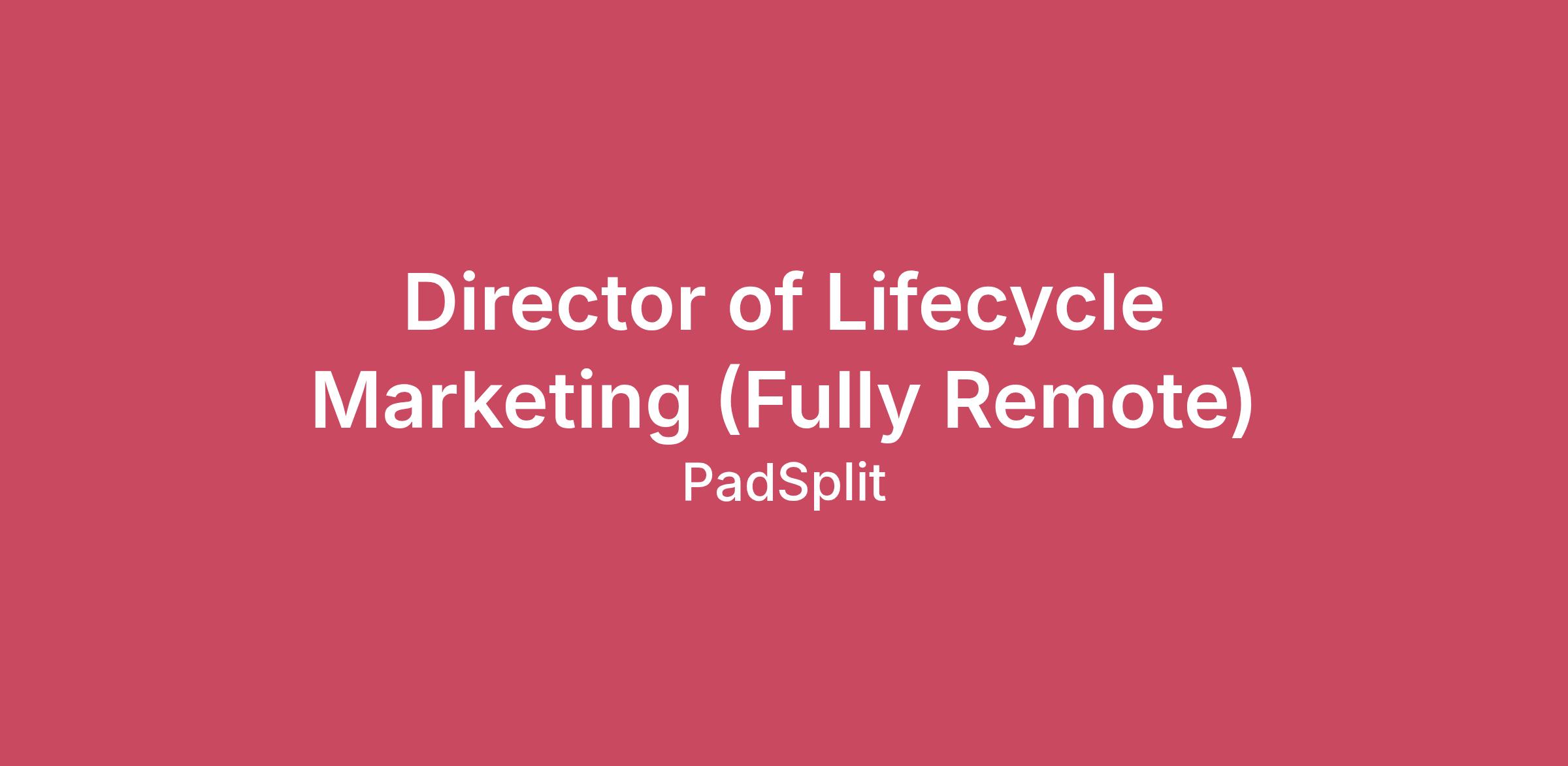 The Role We Need:PadSplit is looking for a Director of Lifecycle Marketing to create data-driven strategies that enhance member and host engagement, improve retention, and optimize the customer journey. This role is critical to scaling our lifecycle marketing efforts, refining personalized communications, and driving meaningful impact through promotions, referral programs, and notification initiatives.The Person We Are Looking For:The ideal candidate is a seasoned lifecycle marketer with expertise in designing automated, personalized campaigns across multiple channels. They must have a strong analytical mindset, a passion for understanding customer behavior, and a track record of using data to drive innovative strategies. The right candidate thrives in a collaborative, cross-functional environment and is motivated to lead initiatives that transform user engagement and retention at PadSplit.\nHere’s What You’ll Do Day-To-Day:Lifecycle Strategy Development: Create and execute lifecycle marketing strategies to optimize engagement and retention.Campaign Management: Design and launch integrated marketing campaigns across email, SMS, push, and in-app channels.Promotions Oversight: Manage promotions and referral programs to drive sustainable growth and engagement.Lifecycle Mapping: Identify key moments in the member and host lifecycle to enhance onboarding, activation, and advocacy.Data Analysis: Analyze performance metrics and extract insights to optimize marketing strategies.Cross-Functional Collaboration: Work closely with product, engineering, and data teams to refine automation and personalization.Experimentation Leadership: Lead A/B testing to optimize engagement and retention strategies.Notification Strategy: Manage notification channels to ensure timely and personalized communication.Content Personalization: Build segmentation and behavioral triggers for tailored marketing messages.Trend Monitoring: Stay updated on industry trends to incorporate best practices into marketing efforts.Here’s What You’ll Need To Be Successful:Marketing Expertise: 8+ years of experience in lifecycle or retention marketing.Strategic Thinker: Proven ability to create and execute customer engagement strategies.Data-Driven Approach: Strong analytical skills to interpret data and drive decision-making.Technical Proficiency: Experience with marketing automation tools, CRM platforms, and analytics software - we use Braze, Iterable, and Hubspot.Channel Knowledge: Expertise in email, SMS, push notifications, and in-app messaging.Collaboration Skills: Experience working with cross-functional teams, including product and engineering.Industry background: Familiarity with marketplace, fintech, or real estate sectors.Innovation Mindset: Passion for testing, learning, and implementing new marketing approaches.Customer Behavior Insight: Deep understanding of segmentation and personalized communication strategies.Results-Oriented: Track record of improving engagement, retention, and monetization metrics.Leadership Abilities: Strong communication and leadership skills to drive projects and inspire teams.The Interview Process:Your application will be reviewed for possible next steps by the Hiring Manager.If you meet eligibility requirements, the next step would be a phone screen with a member of the PeopleOps team for about thirty (30) minutes.If warranted, the next step would be a video interview with our Head of Marketing for forty-five (45) minutes.If warranted, the next step would be a video interview with a panel of key stakeholders for two (2) hours. For this interview, a candidate would execute a live assessment to the panel for discussion.If warranted, then we move to offer!Compensation, Benefits, and Perks:Fully remote position - we swear!Competitive compensation package including an equity incentive planNational medical, dental, and vision healthcare plansCompany provided life insurance policyOptional accidental insurances, FSA, and DCFSA benefitsUnlimited paid-time (PTO) policy with eleven (11) company-observed holidays401(k) plan Twelve (12) weeks of paid time off for both birth and non-birth parentsThe opportunity to do what you love at a company that is at the forefront of solving the affordable housing crisis\n$115,000 - $135,000 a yearCompensation is based on the role's scope, national market benchmarks, the person's expertise and experience, and the impact of their contributions to our business goals.\nPlease note: Although the job posting says it's in Atlanta, Georgia, this is a fully remote position. This is a result of our Applicant Tracking System requiring a location to post the role on LinkedIn.Notice to Applicants:PadSplit participates in E-Verify. All new employees are required to complete an I-9 form and be authorized to work in the United States. Employment is contingent upon successful completion of the E-Verify process.PadSplit is an Equal Opportunity Employer. All qualified applicants will receive consideration for employment without regard to race, color, religion, sex, sexual orientation, gender identity, national origin, disability, or status as a protected veteran.