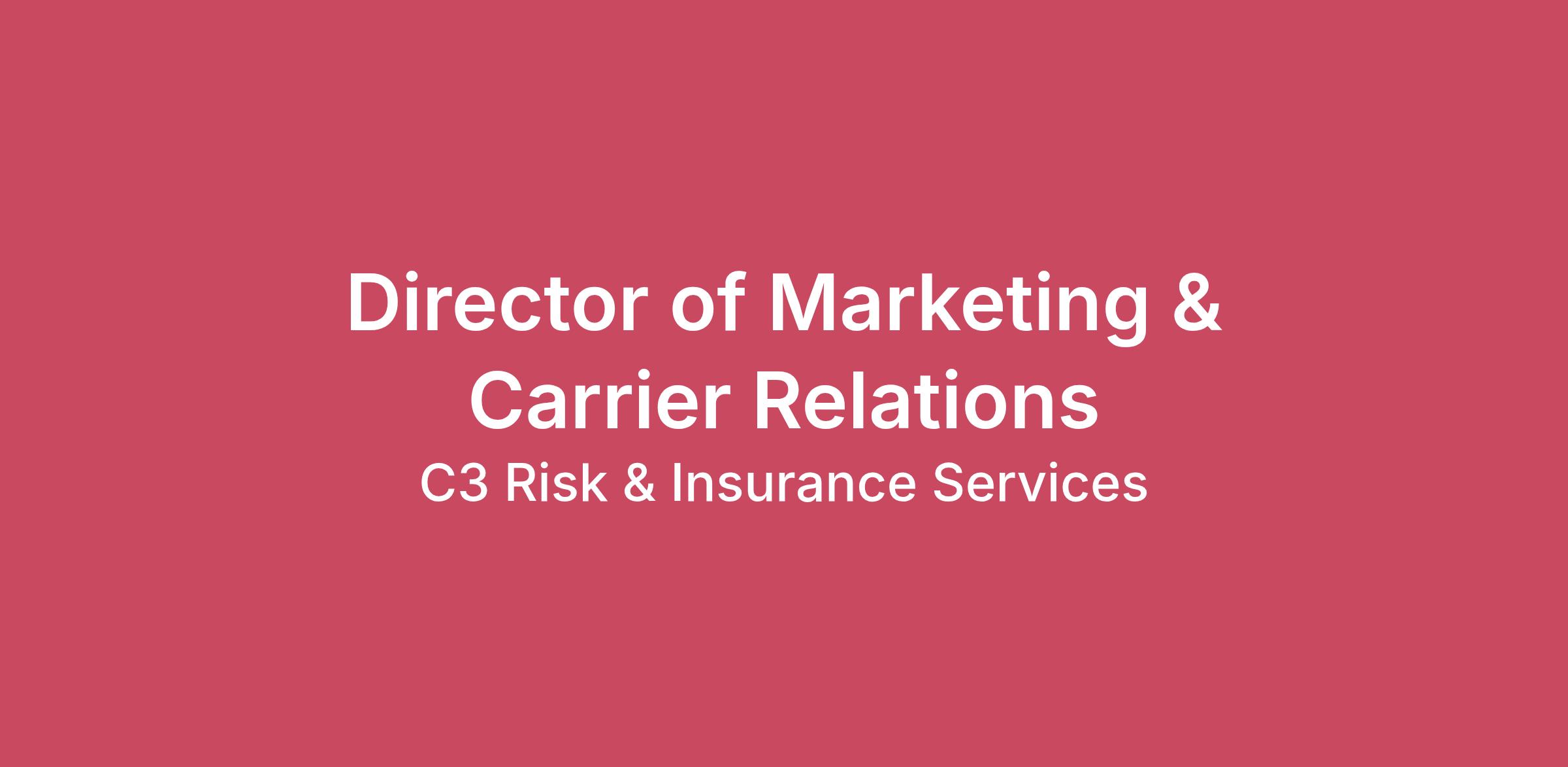 Description WHO WE ARE C3 is different and we like it that way. Our mission is to bring color and a fresh perspective. Our vision is to create peace of mind. The Director of Marketing & Carrier Relations is responsible for shaping, strengthening, and maximizing the agency’s strategic relationships with insurance carrier partners across all lines of business. This role leads carrier engagement strategy, oversees marketing placement strategy, enhances producer and client onboarding, and leverages financial, loss, and operational data to optimize market performance and carrier partnership value. This leader serves as the agency’s primary liaison to the broader insurance marketplace—driving carrier strategy, ensuring alignment with organizational goals, and elevating C3 Workspace’s presence and influence across the industry. WHO YOU NEED TO BE Bachelor’s degree required; advanced degree or industry certification preferred. 5–7+ years of relevant experience in carrier relations, marketing, underwriting, or brokerage leadership. Property & Casualty Insurance License required (or ability to obtain). Proven success managing carrier relationships in a regional or national brokerage environment. Deep understanding of commercial insurance carrier appetites, underwriting philosophies, and market dynamics. Strong negotiation skills with proven ability to resolve complex underwriting and contractual issues. Proficiency in Microsoft Office Suite and insurance technology platforms. Demonstrated ability to lead strategic initiatives, influence executive stakeholders, and drive measurable results. An excellent communicator with strong interpersonal skills, capable of training and engaging employees at all levels. Skilled at managing multiple projects and priorities in a dynamic, fast-paced environment. Detail-oriented, proactive, and committed to fostering an aligned sales culture with C3 Risk & Insurance Services. Ability to interpret financial reports, loss data, carrier contract requirements, and performance scorecards. THE JOB The Director of Marketing and Carrier Relationships contributes to C3’s success by performing the following tasks: Strategic Carrier Partnership Leadership Lead and manage strategic carrier relationships with key carrier partners across all departments, ensuring strong alignment with agency goals. Establish quarterly/monthly meetings with our top strategic partners both carrier and wholesaler to track results. Stay current on industry, market, and carrier trends to ensure continuous improvement and strategic advantage. Leverage financial, premium, and loss data to strengthen carrier performance, optimize contingency outcomes, and enhance partnership value. Review all carrier contracts to identify opportunities for consolidation across lines of business and ensure the agency maintains a focused, strategically aligned carrier portfolio. Identify underperforming or duplicative carrier relationships using comparative analytics, book performance, and coverage competitiveness. Recommend rationalization strategies to prevent unnecessary proliferation of carrier appointments—strengthening leverage, maximizing partnership depth, and enhancing client value. Support development of dashboards, metrics, and reporting tools that enhance market transparency and strategic decision-making. Use contract data, performance metrics, and placement trends to evaluate which carriers deliver the strongest outcomes for clients and the agency. Marketing Strategy & Placement Support Collaborate with Claims, P&C, Employee Benefits, Risk, and Client Services leadership to drive enterprise-level carrier strategies. Providing guidance to ensure optimal alignment with carrier appetites and agency strategy. Partner with internal teams to execute strategic market consolidation initiatives. Serve as the highest-level escalation point for complex carrier negotiations, underwriting obstacles, and market challenges. Maintain and continuously enhance internal carrier resources, including carrier appetite guides and underwriter directories. Author high-value marketing content, including newsletters, market insights, carrier updates, and strategic communications. Partner with internal stakeholders to implement marketing strategies that enhance placement efficiency and drive growth. Oversee marketing deliverables associated with carrier meetings, ensuring clear follow-up, accountability, and execution. Serve as a strategic resource to Client Executives on key accounts by participating in upcoming renewals, acting as an additional advocate for best-in-class marketing strategy, appropriate client touchpoints, and consistent execution while owning and enforcing the agency’s proven process for priority clients. Producer & Client Onboarding Support Support new producer onboarding by ensuring timely access to necessary carrier appointments, tools, and resources. Assist with new client onboarding by aligning carrier strategy, market support, and placement planning with agency standards. Partner with operational leaders to ensure smooth transitions during producer onboarding, book rolls, and market migrations. THE FINE PRINT Work Environment & Physical Demands The ability to operate standard office equipment, such as keyboards, is required. Occasional in and out of state travel to carrier events, appointments, and conferences required. C3 is an equal-opportunity employer that values diversity and welcomes applicants from all backgrounds. At C3 Risk & Insurance Services, we offer:Competitive salary100% employer-paid benefits401K matchOpportunities for growthFlexible working schedulesUnlimited PTO to support work/life balance (with a two-week minimum)Fun atmosphereNo micromanagementOpportunity to work from home/remoteThe applicable base salary range for this role is $120,000 to $160,000. The base pay offered will be determined on factors such as experience, skills, training, location, certifications, and educatio