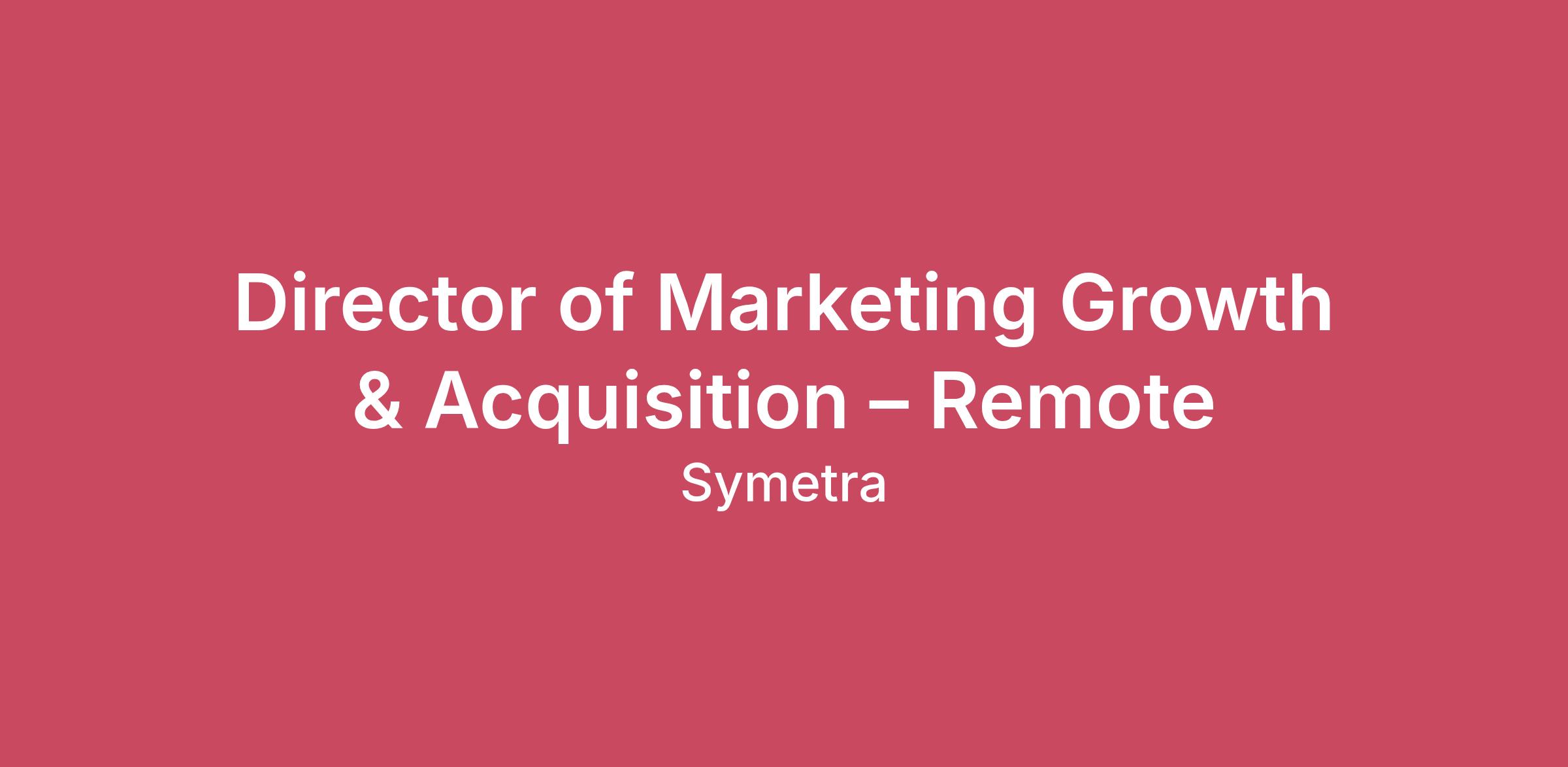 Symetra is seeking a Director of Marketing Growth & Acquisition to lead our digital growth and demand generation strategy across channels and business divisions. About the role This role owns measurable growth outcomes—acquisition, engagement, and conversion—while connecting enterprise brand efforts to divisional priorities through data-driven, scalable marketing programs. This is a senior, hands-on leadership role for someone who thrives on accountability, collaboration, and delivering results in a complex enterprise environment. What you will do Lead Digital Growth & Acquisition Strategy Own and drive an integrated digital growth strategy aligned to enterprise and divisional goals, balancing brand impact with measurable acquisition and engagement outcomes. Optimize performance across channels using data, AI, and audience insights to continuously improve efficiency, reach, and conversion. Partner with Divisional Marketing & Sales Serve as a trusted enterprise partner to divisional marketing teams, helping identify, prioritize, and advance growth opportunities aligned to business needs. Use data insights to advise recommendations, support enablement efforts, and improve divisional marketing effectiveness over time. Plan, Implement, and Optimize Campaigns Lead multi-channel campaign planning and execution with clear performance goals, metrics, and accountability for outcomes. Foster a test-and-learn approach that uses experimentation, personalization, and optimization to improve results and decision-making. Lead Cross-Functional Collaboration Partner across Corporate Marketing (creative, enablement, analytics) and with teams across the enterprise (technology, UX, division marketing, product) to deliver cohesive, scalable growth initiatives. Represent Growth & Acquisition in planning and governance forums, aligning priorities and dependencies across teams. Measurement, Reporting & Executive Influence Translate performance data into clear insights and growth recommendations for senior leadership, tying marketing activity to business impact where appropriate. Establish responsible measurement, reporting, and planning practices that support informed decisions, investment tradeoffs, and compliance standards. What Success Looks Like Clear ownership of growth outcomes and performance metrics Strong partnerships with divisional marketing and sales leaders Scalable, data-driven acquisition programs that improve efficiency and impact Confident use of AI and data analytics to advise decisions — without over-automation Marketing programs that visibly support sales and partner growth Why Work at Symetra Here’s what some of our employees have to say about why they work at Symetra: “We're big enough to make an impact on the country, but small enough to care and know who you are and what you're contributing to the organization. All new ideas are welcome!” - Stephanie F., VP Customer Service & Operations "Just do it! Even if you feel like you may not be 100% qualified, apply. Sometimes we see potential in others that they can not see in themselves. You may be over qualified, or you may be the "something special" we are looking for to bring a unique, fresh approach to our company." - Ruby S., Associate EDX Analyst What we offer you Benefits and Perks We don’t take a “one-size-fits-all” approach when it comes to our employees. Our programs are designed to make your life better both at work and at home. Flexible full-time or hybrid telecommuting arrangements Plan for your future with our 401(k) plan and take advantage of immediate vesting and company matching up to 6% Paid time away including vacation and sick time, flex days and ten paid holidays Give back to your community and double your impact through our company matching Want more details? Check out our Symetra Benefits Overview Compensation Salary Range: $141,600 - $236,000 plus eligibility for annual bonus program Qualifications Who You Are 12+ years of experience in digital marketing, growth, or demand generation leadership required. Proven success driving acquisition, conversion, and pipeline outcomes. Deep understanding of paid media, SEO/SEM, email, automation, and analytics. Strong data fluency and comfort owning performance metrics. Experience partnering cross-functionally with sales, product, brand, and analytics teams. Ability to balance strategic vision with hands-on execution. Executive-level communication and influence skills. Experience applying AI and advanced analytics to growth marketing. Experience in financial services, insurance, or other regulated environments preferred. Familiarity with marketing tech stacks (CRM, CMS, DAM, automation platforms) a plus. Experience working in a matrixed, enterprise organization preferred. High school diploma required. College degree preferred. Travel: Required Training & Professional Development All newly hired people leaders with direct reports are required to complete a comprehensive leadership development program within their first year. This program includes both virtual and in-person training. The in-person sessions will take place at Symetra’s corporate headquarters in Bellevue, Washington. Symetra covers all travel and accommodation expenses. Reasonable Accommodations Symetra is committed to providing equitable access to all job-related responsibilities, including required travel. If reasonable accommodations are needed for travel, Symetra’s HR department will work to provide appropriate solutions in alignment with individual needs and company policies. We empower inclusionAt Symetra, we aspire to be the most inclusive insurance company in the country. We're building a place where every employee feels valued, respected, and has opportunities to contribute. Inclusion is about recognizing our assumptions, considering multiple perspective, and removing barriers. We accept and celebrate diverse experiences, identities, and perspectives, because lifting each other up fuels th