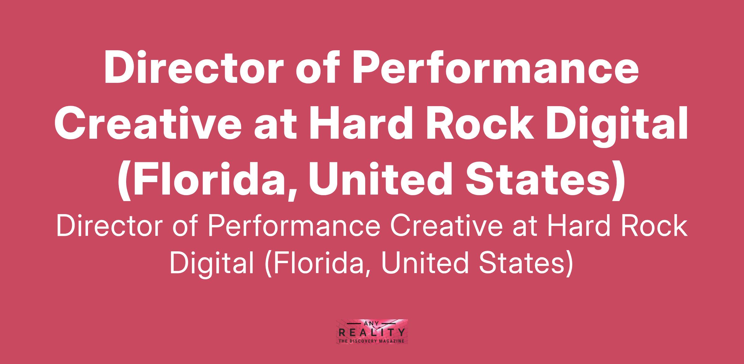 Director of Performance Creative at Hard Rock Digital (Florida, United States)