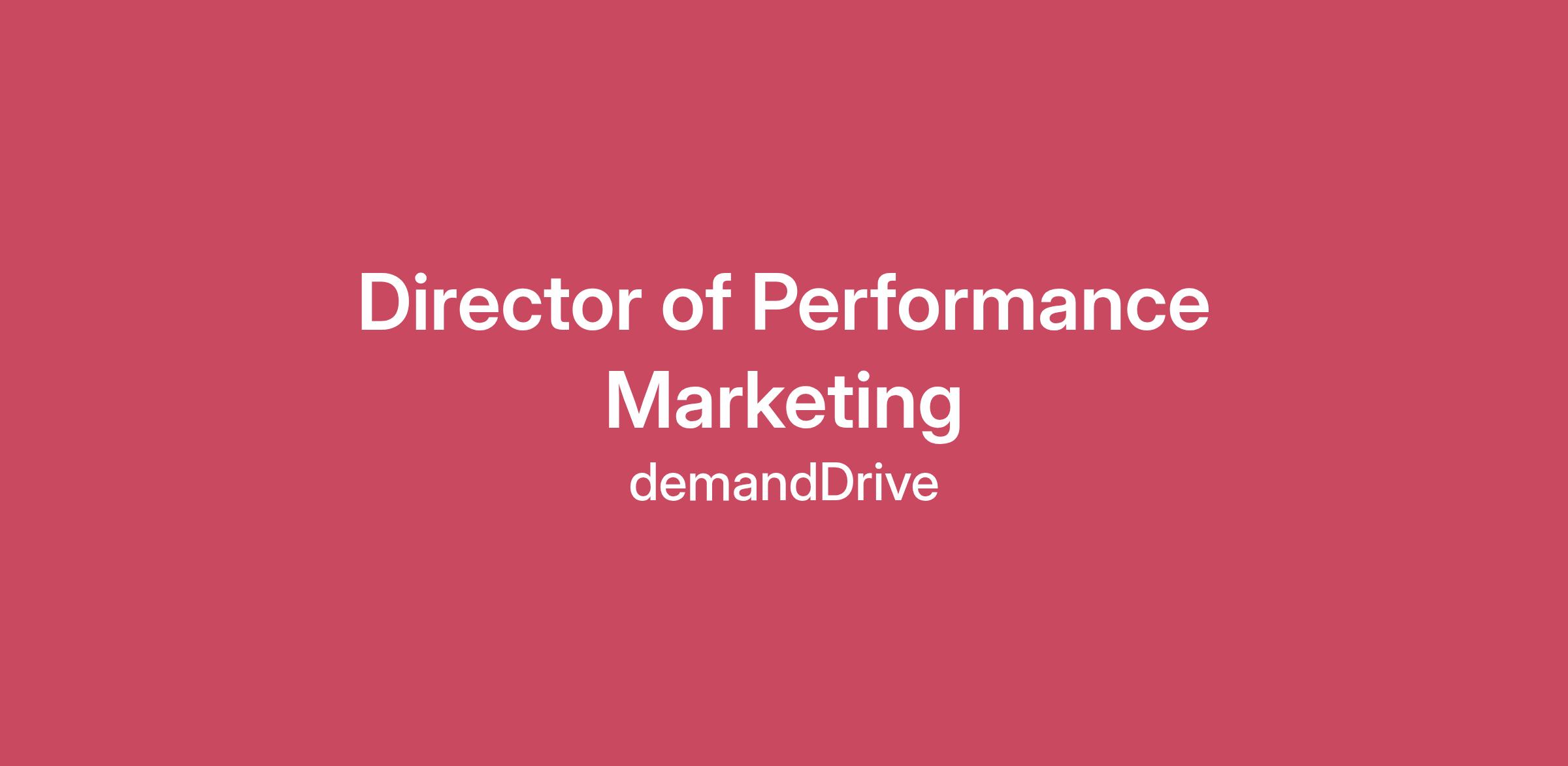 About demandDrive: demandDrive is a growth-focused B2B sales and marketing organization that integrates data, technology, and creative execution to drive measurable pipeline results. With a deep expertise in lead generation, account-based marketing, and marketing operations, demandDrive empowers businesses to align their marketing strategy with revenue goals. As we continue to scale our internal marketing engine, we're building a team dedicated exclusively to growing demandDrive's own brand, pipeline, and digital presence. Position Overview: The Director of Performance Marketing is responsible for leading demandDrive's paid media strategy across all digital channels to generate high-quality leads, accelerate pipeline growth, and improve overall marketing ROI. This role is both strategic and hands-on--owning campaign planning, budget allocation, channel optimization, and performance analytics to drive measurable business outcomes. The Director will report to the VP, Marketing, to ensure that all paid media initiatives align with our broader growth objectives. Key Responsibilities:Develop, launch, and manage paid media programs across Google Ads, LinkedIn, Meta, and other digital platforms.Own performance forecasting, budget allocation, and pacing to ensure optimal spend efficiency.Define channel mix and campaign strategy in partnership with Integrated Campaigns and Content teams.Monitor, analyze, and report on campaign performance; leverage insights to improve ROI and conversion quality.Build, test, and scale campaigns using A/B and multivariate testing frameworks.Collaborate with Operations & Analytics to refine attribution, lead scoring, and tracking infrastructure.Establish KPIs for cost per lead, MQL/SQO volume, and pipeline contribution.Continuously evaluate new paid media opportunities and technologies to drive innovation.Partner with Digital Experience to ensure ad-to-landing-page alignment and conversion optimization.Work cross-functionally with Comms and Integrated Campaigns to amplify brand and product visibility.Key Performance Indicators (KPIs):Cost per lead per channelMQL and SQO volumeMQL-to-SQO conversion ratePipeline and closed-won revenue attributed to paid mediaOverall marketing ROIQualifications & Experience:7+ years of experience in B2B digital marketing with a focus on paid media performance.Proven success managing multi-channel campaigns in-house or at a marketing agency.Strong analytical skills and familiarity with marketing analytics platforms (Google Analytics, HubSpot, Salesforce, Looker, etc.).Hands-on experience with ad platforms including Google Ads, LinkedIn Campaign Manager, and Meta Ads Manager.Understanding of full-funnel performance metrics and attribution models.Experience collaborating with cross-functional teams in Campaigns, Content, and Sales.Strong communication skills with the ability to translate data insights into actionable recommendations.Agency or SaaS background preferred.Personal Attributes:Analytical and data-driven mindsetHighly collaborative and adaptableStrong leadership and project management skillsStrategic thinker with hands-on execution abilityExcellent communicator with attention to detailCompensation & Culture:This is a full-time position with competitive compensation, performance-based incentives, and comprehensive benefits. demandDrive fosters a collaborative and growth-oriented culture where marketing, sales, and strategy intersect to drive measurable results.Benefits:Annual Salary + Bonus ($125,000 - $135,000 annual salary range + 20% bonus).Hybrid work model - or fully remote, depending on location.Health Coverage (BCBS), and other health and wellness benefits, Vision Care, Dental Coverage (Delta Dental), Paid Paternity+Maternity Leave, Life+Disability Insurance, 401(k) matching. Flexible PTO.Positive Company Culture.Company laptop, full tech stack+tools, and other resources provided by demandDrive.