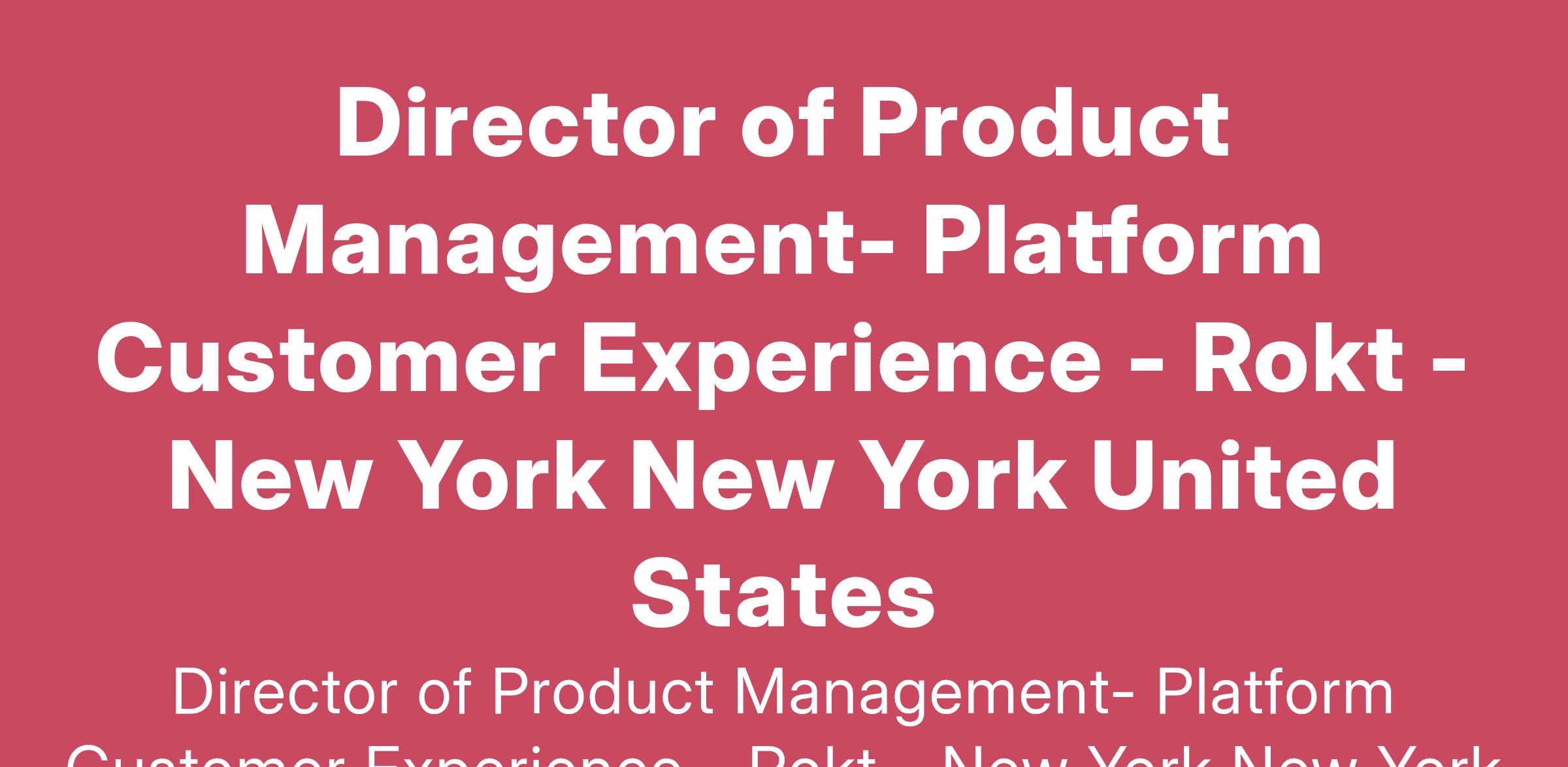 We’re looking for a Director of Product Management to champion the CX and UX strategy for our core mParticle by Rokt platform. In this role, you’ll be responsible for refining the overall customer experience, from design principles and navigation to onboarding, feature adoption, UI performance, and consistency. You’ll work closely with a talented team of product owners, designers, and engineers to craft a truly exceptional, market-leading experience. Additionally, you’ll take ownership of key platform features, guiding the product strategy and roadmap to success. We’re excited to find someone who is passionate about shaping a seamless and delightful experience for our users!