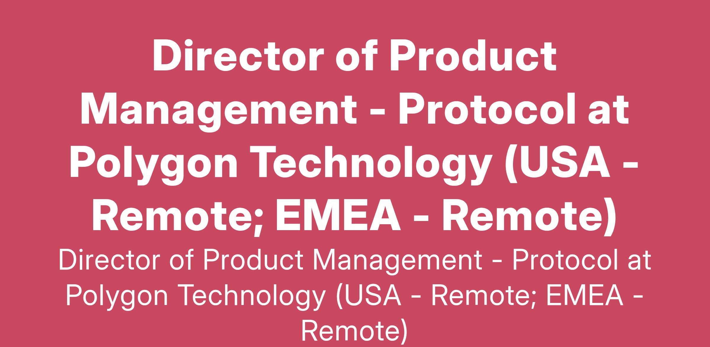 Director of Product Management - Protocol at Polygon Technology (USA - Remote; EMEA - Remote)