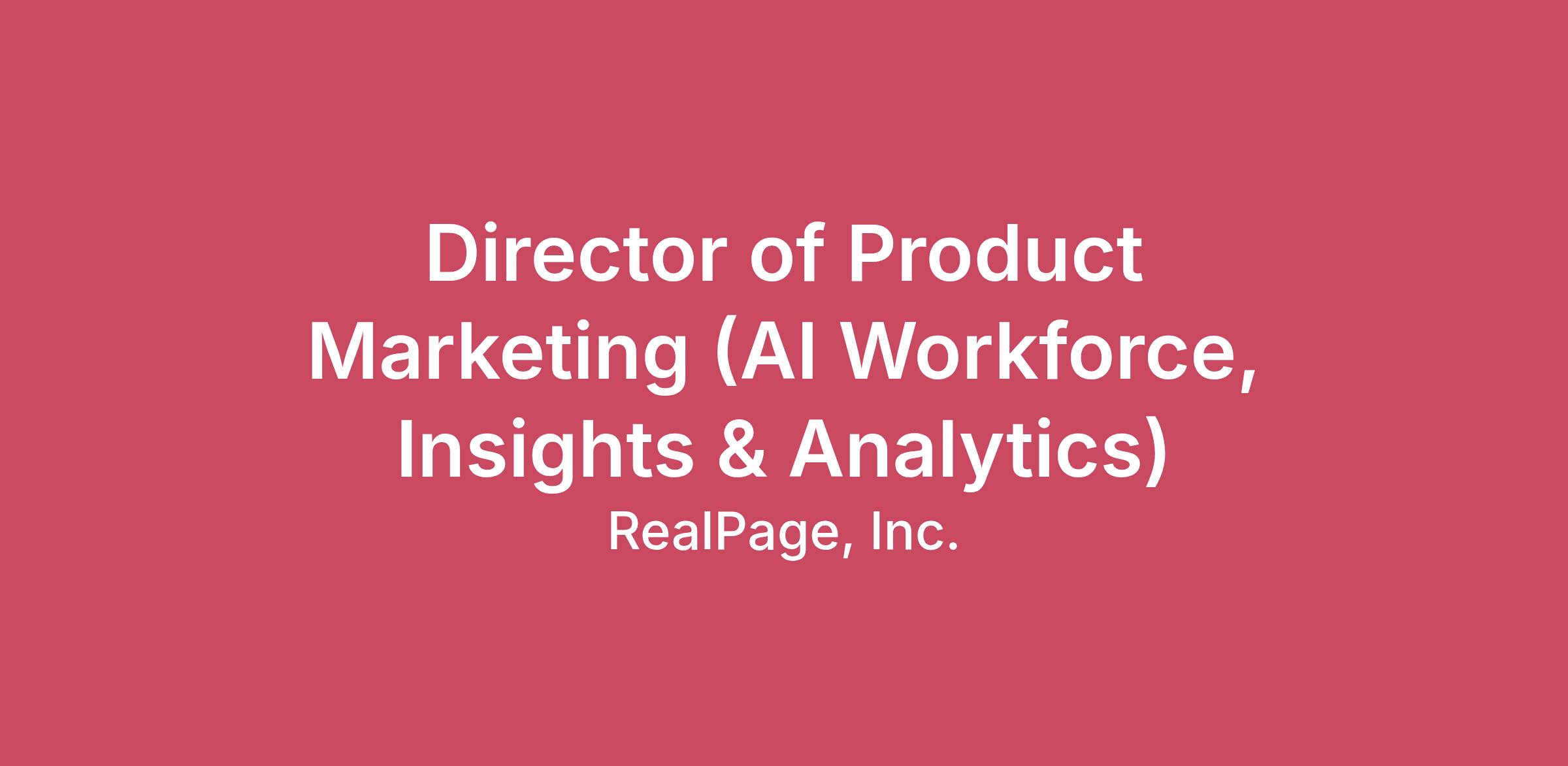 Overview Are you a seasoned product marketer with a passion for innovation and a track record of success in AI, data, and analytics? RealPage is seeking a Director of Product Marketing who will drive growth and customer adoption for our Agentic AI solutions within the Multifamily real estate industry. This is a mission-critical, high visibility and high impact role. The Lumina AI Workforce is a growing team of digital Agents built to handle routine tasks across leasing, operations, facilities, finance, and resident support. As a strategic cross-functional partner, you’ll drive alignment across our go-to-market, product, sales and operational teams, bring in the voice of the customer and market expertise into spearheading the launch of innovative products, build product marketing collateral, partner with sales enablement to ensure a strong mindshare and market share with our customers. Responsibilities Go-to-Market Programs: Define, plan, and execute go-to-market for a set of integrated products, in partnership with Product Management, Marketing and Sales/Account Management teams. Product Messaging / Positioning: Develop succinct, compelling, and differentiated product messaging, positioning in the market, supported by measurable proof points. Marketing and Sales Content: Develop and deliver high-impact assets such as presentations, case studies, battlecards, playbooks, and competitive assessments. Sales Enablement Training: Create sales and customer success training materials that cover industry trends, buyer personas, pain points, solutions, sales plays, and competitive differentiation. Voice of the Customer: Engage with customers at events and through key touch points to drive awareness to adoption. Be the champion of our customers with internal stakeholders. Marketing Strategy: Collaborate with Demand Generation, developing strategies to target accounts and segments, messaging, and promotions to generate quality leads. Competitive Intelligence: Provide an informed point of view and deliverables articulating where competition is headed or will emerge, and how to win at an individual account and competitor level. Digital Journey Design: Co-create world-class marketing websites that reflect a deep understanding of the prospect/buyer, their personas and content needs across all stages of the buying cycles. Product Strategy Support: Be a valued partner to Product Management in identifying and prioritizing product capabilities required to address customer needs. Drive clarity around market trends, customer needs, and industry best practices. Product Launch Leadership: Tier the launch of products, align resources to the opportunity, identify and analyze KPIs to measure effectiveness and identify areas to improve. Qualifications ~10 years of experience in B2B SaaS product marketing. Mastery of foundational product marketing skills including value proposition development, GTM strategy, audience segmentation, product launches, content creation, sales enablement, and market research. Track record of building strong relations with product management, sales, and cross-functional teams. Excellent communication, storytelling, and presentation skills. Strong project management skills to plan and execute multiple workstreams simultaneously. Bachelor’s degree in marketing, business, computer science, or engineering. An MBA is a plus but not required. Prior experience launching AI-based products is a plus but not required. Experience marketing software solutions in Multifamily property management is a plus but not required. ADDITIONAL SKILLS/ABILITIES Creative storyteller who can craft elegant and compelling messages for complex products and succinctly distill complex concepts. Strong analytical mind, skilled in assessing problems and making recommendations supported by data. Comfort with technology – unafraid to dig into the product and learn the UI/UX, key workflows and what value it delivers to customers. Persuasive personality that can confidently take a seat at the table and be a creative and thoughtful partner with stakeholders, regardless of their job title. Deep understanding of B2B marketing and sales processes, how best to support sales teams and equip them for success. Pragmatic self-starter that is outcomes-oriented and can juggle multiple work streams. Ability to lead and influence cross-functional teams effectively to deliver required results. Excellent collaborator that values relationships and takes pride in helping others succeed by being the lynchpin across teams. Passion for growth, excellence, and continuous improvement of the current state of the business. SALARY AND BENEFITS RealPage provides a competitive salary package along with a comprehensive benefit plan that includes: Health, dental, and vision insurance. Retirement savings plan with company match. Paid time off and holidays. Professional development opportunities. Performance-based bonus based on position. #LI-JL1 #LI-REMOTE Compensation may vary depending on your location, qualifications including job-related education, training, experience, licensure, and certification, that could result at a level outside of these ranges. Certain roles are eligible for additional rewards, including annual bonus, and sales incentives depending on the terms of the applicable plan and role as well as individual performance. Equal Opportunity Employer: RealPage Company is an equal opportunity employer and committed to creating an inclusive environment for all employees. Pay RangeUSD $121,000.00 - USD $206,000.00 /Yr.