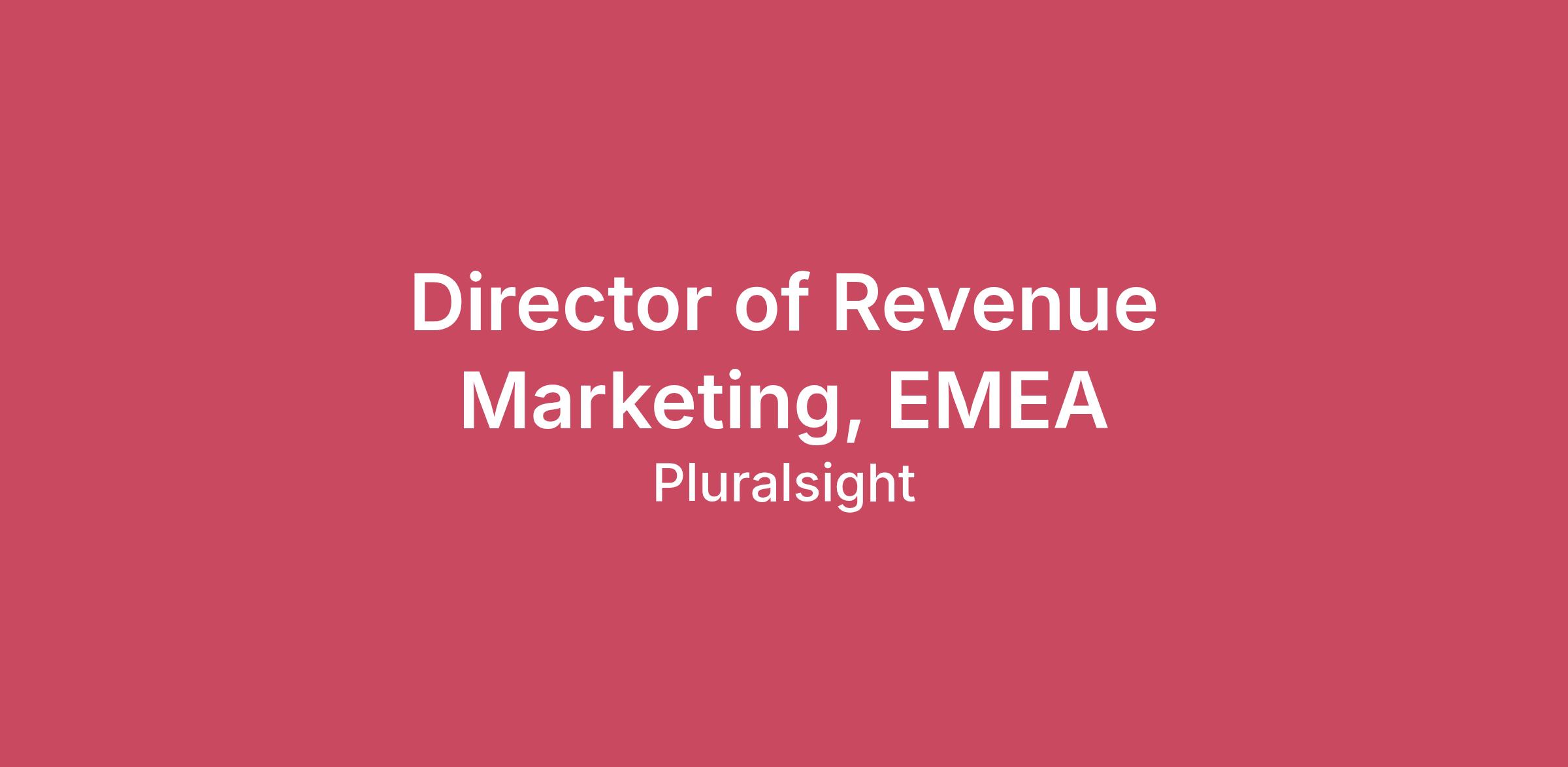 Job Description:As the Director of Revenue Marketing, EMEA at Pluralsight, you are the strategic architect of the region’s growth engine. You will integrate field marketing, event strategy, and digital demand generation into a singular, cohesive motion designed to build a predictable and scalable pipeline. Reporting to the VP of Revenue Marketing, you will serve as the primary marketing partner to the EMEA VP of Sales, ensuring all marketing capital is deployed toward the highest-value revenue opportunities. We're excited to have you join us!What you will own: Regional Revenue Strategy: Define and execute the EMEA marketing roadmap. You are accountable for marketing’s contribution to regional ARR, pipeline coverage, and deal velocity.Strategic GTM Orchestration: Partner with EMEA Sales leadership to architect high-velocity GTM motions that synchronize marketing precision with sales urgency. You will prioritize initiatives that enable Sales to win faster, ensuring every activity is a deliberate, high-quality investment in regional revenue targets.Integrated Field & Digital Strategy: Oversee a team of specialists to execute high-touch field events (VIP roundtables, executive dinners) and large-scale trade shows, ensuring they are amplified by targeted digital demand generation.Strategic ABM: Lead Account-Based Marketing (ABM) for the region’s Tier-1 accounts, utilizing intent data to orchestrate personalized journeys for the EMEA enterprise segment.Budget & ROI Accountability: Manage the EMEA marketing P&L. Shift resources dynamically between channels based on real-time performance data and regional market shifts.Localization & Market Fit: Adapt global messaging to the specific cultural and regulatory requirements of EMEA sub-regions.Who you’re committed to being:Accountable: You prefer being measured by revenue and pipeline rather than leads or impressions. You have a track record of meeting or exceeding pipeline targets.Analytical: You are fluent in the "language of the board"—CAC, LTV, Payback Period, and NRR. You use data to identify gaps in the funnel before they become revenue shortfalls.Strategic Partner: You have the executive presence to challenge and partner with senior Sales leadership. You move between high-level strategy and tactical execution with ease.Process-Oriented: You build repeatable playbooks for events and campaigns that can be scaled across different European markets.Strategic Growth Operator: A disciplined self-starter who converts ambiguity into execution. You possess the executive presence to align cross-functional peers (Sales, Product, Finance) around a unified revenue architecture while upholding rigorous operational standards.Performance Coach & Talent Magnet: A leader with a proven record of hiring and scaling multi-disciplinary teams. You foster a culture of data-driven experimentation, coaching specialists into world-class revenue marketers and actively accelerating their career growth.Experience you will need:10+ years in B2B SaaS Marketing, with at least 4 years in a regional leadership role overseeing EMEA.Technical Proficiency: Advanced experience with Salesforce, Marketo/HubSpot, and modern Revenue Intelligence/Intent platforms (e.g., DemandBase, UserGems, Gong).Leadership: Proven experience managing multi-disciplinary teams (Field + Demand Gen), external agencies, and contractors.Sales Alignment: Demonstrated success in a "pod" or "squad" model where marketing and sales share a unified quota.Education: Bachelor’s degree in Business or Marketing; MBA preferred.
