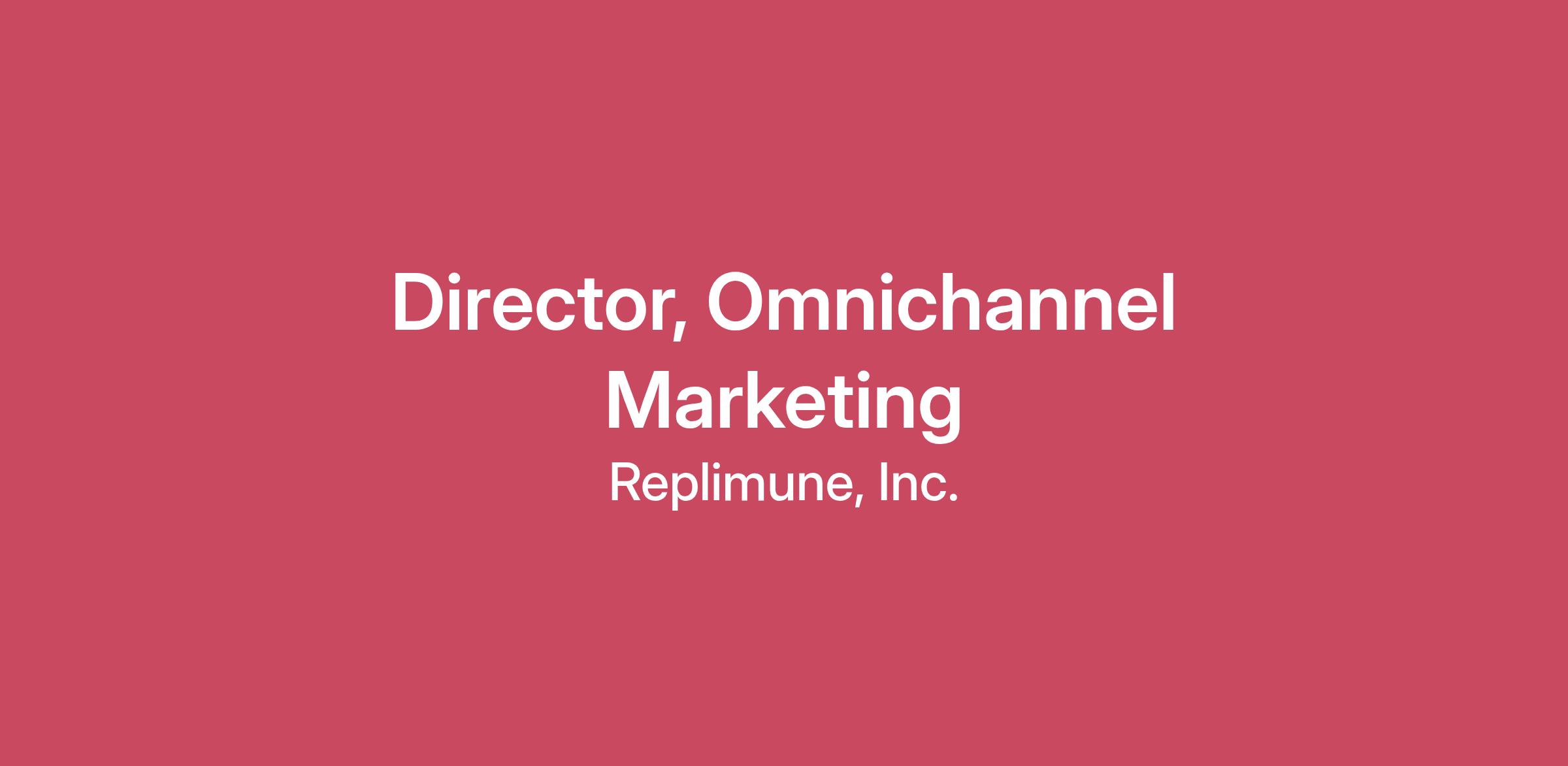 Overview Replimune’s mission is to revolutionize cancer treatment with therapies designed to activate a powerful and durable full-body anti-tumor response, boldly transforming cancer care because patient’s lives depend on it. We imagine a world where cancer is a curable disease. At Replimune, we live by our values: United: We Collaborate for a Common Goal. Audacious: We Are Bold and Innovative. Dedicated: We Give Our Full Commitment. Candid: We Are Honest With Each Other. People are at the center of everything we do, and when it comes to our employees, we make it personal. With a deep sense of purpose, an innovative and collaborative culture, a competitive and forward-looking total rewards program, everyone at Replimune has a unique opportunity to contribute to the meaningful work we do which could impact the lives of patients, caregivers and themselves. Join us, as we reshape the future. As the Director of Omnichannel Marketing, you will hold a pivotal position within the US Commercial Team, responsible for driving success with healthcare professional (HCP) and Patients. As a member of the Commercial Operations Team, you will be working closely with Brand Marketing, Market Access, Medical Affairs, and Insights and Analytics, to ensure the successful development of the Replimune Omnichannel capability, strategy, and campaign execution, for a broad range of programs both, branded and unbranded. The position is either based in Woburn Massachusetts or for the right candidate, it could be remote. The Director of Omnichannel Marketing will report to the Executive Director of Commercial Operations. Responsibilities Develop a comprehensive, organizational-wide, and best-in-industry Omnichannel strategy and capability aimed at maximizing Share of Voice (SOV) across all relevant personal and non-personal channels for key audiences Emerge as the resident expert in omnichannel healthcare marketing technology, new capabilities, and emerging & future trends for the organization. Lead the optimization of all digital channels targeting healthcare professionals (HCPs) and consumers (patients and caregivers) ensuring the delivery of impactful content and experiences Collaborate with Brand Marketing, Market Access, Medical Affairs, Clinical Development/Operations, and Data & Analytics, to understand functional business needs, identify opportunities, and support and facilitate the development and execution of campaigns. Partner with key team members in the development and execution of key marketing materials across digital and non-personal promotion channels Develop a robust set of Objectives (OKRs) and Key Performance Indicators (KPIs) across campaigns to measure the effectiveness of marketing initiatives across all channels that are agreed upon and socialized across key stakeholders. Serve as a liaison between Business Owners, Insights and Analytics and Operations to inform the development of our MarTec development, Data Strategy, Channel Strategy, and Messaging Utilize data-driven insights to continuously refine and improve results Encourage innovation and experimentation to stay ahead in a rapidly evolving market landscape Proactively collaborate with legal, regulatory, and compliance stakeholders to ensure compliant development and execution of all campaigns and tactics Effectively manage and maintain relationships with Agency Partners, external vendors and/or contractors. This leader will embody our companies culture while maintaining accountability for gathering and sharing insights, maximizing presentation opportunities, strategic planning, and flawless execution across of key tactics his or her team. Behaviors that are critical for this leader to display include an innovative mind-set, strategic and analytical thinking, strong collaboration and communication skills and relationship building. Qualifications Education: Bachelor’s degree in Marketing, Business, Healthcare, or related field; advanced degree preferred Required Experience: 10+ years of experience in pharmaceutical or healthcare marketing, healthcare consulting, or healthcare agency experience, with a focus on omnichannel strategy and digital marketing Demonstrated ability to develop and merge business, technology, marketing, scientific, and clinical acumen. Proven track record of developing and implementing successful omnichannel marketing campaigns Experience working with Key Customer / Thought Leader marketing, and KOLs to develop campaigns. Strong analytical skills with the ability to interpret data and translate insights into actionable strategies Excellent communication and collaboration skills, with the ability to work effectively across cross-functional teams Experience managing budgets and optimizing marketing spend for maximum impact Proven skills in strategic and critical thinking in dynamic and face paced environments Experience in Oncology or specialty care products preferred Excellent written and communication skills Proven ability to influence without authority and work with cross-functional teams in the development and delivery of brand strategic imperatives Proven ability in managing external agencies and vendors Proven project / program management experience About Replimune Replimune Group, Inc., headquartered in Woburn, MA, was founded in 2015 with the mission to transform cancer treatment by pioneering the development of a novel portfolio of oncolytic immunotherapies. Replimune’s proprietary RPx platform is based on a potent HSV-1 backbone intended to maximize immunogenic cell death and the induction of a systemic anti-tumor immune response. The RPx platform is designed to have a unique dual local and systemic activity consisting of direct selective virus-mediated killing of the tumor resulting in the release of tumor derived antigens and altering of the tumor microenvironment to ignite a strong and durable systemic response. The RPx product candidates are expected to be synergistic with most established and e